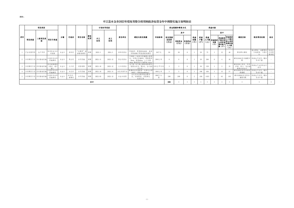 平江县木金乡2023年度统筹整合使用财政涉农资金年中调整实施方案明细表
