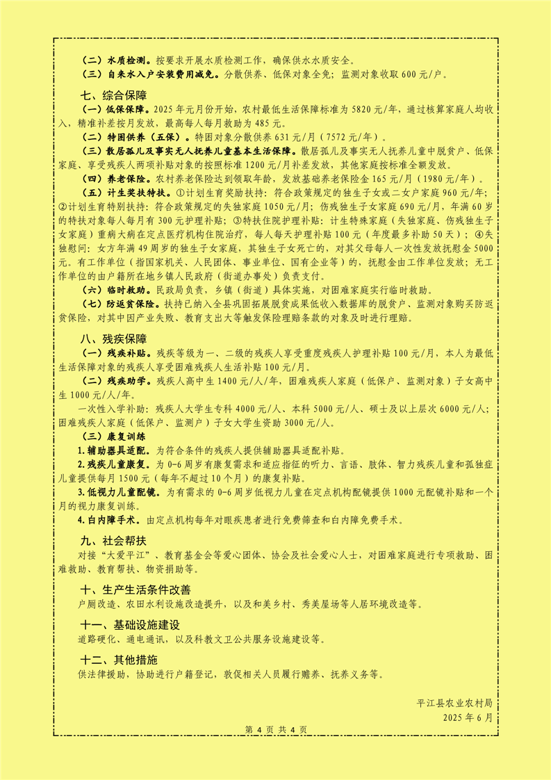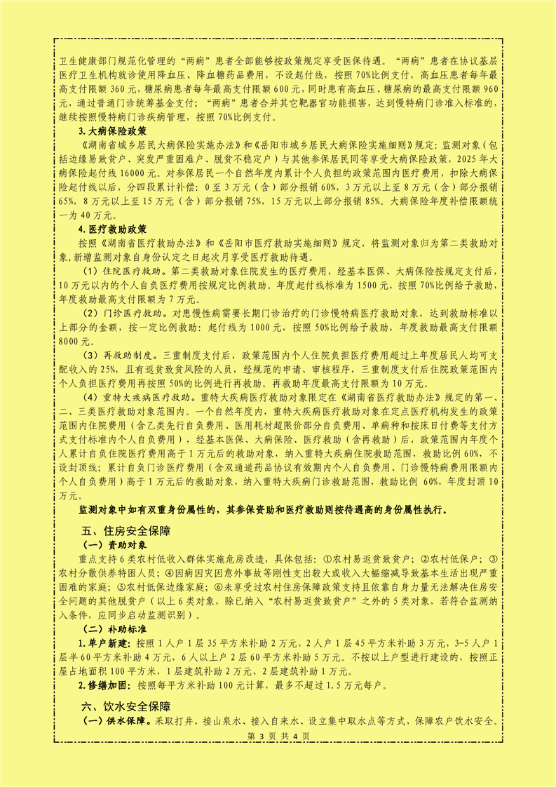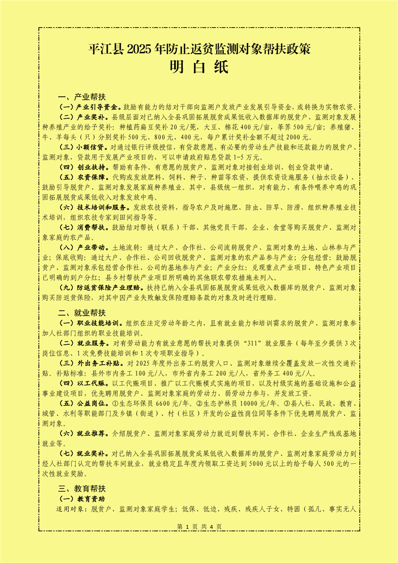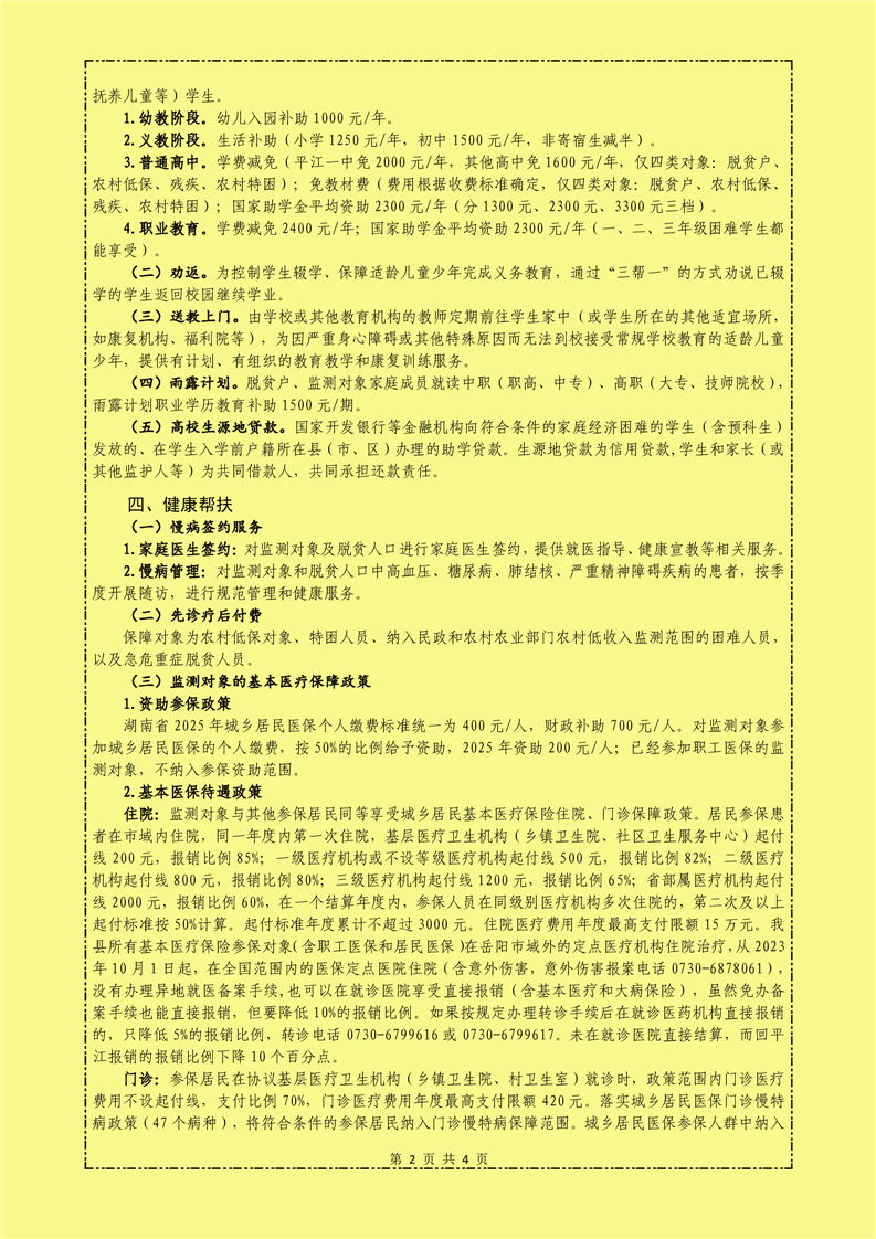 平江县2025年度防止返贫监测对象帮扶政策明白纸