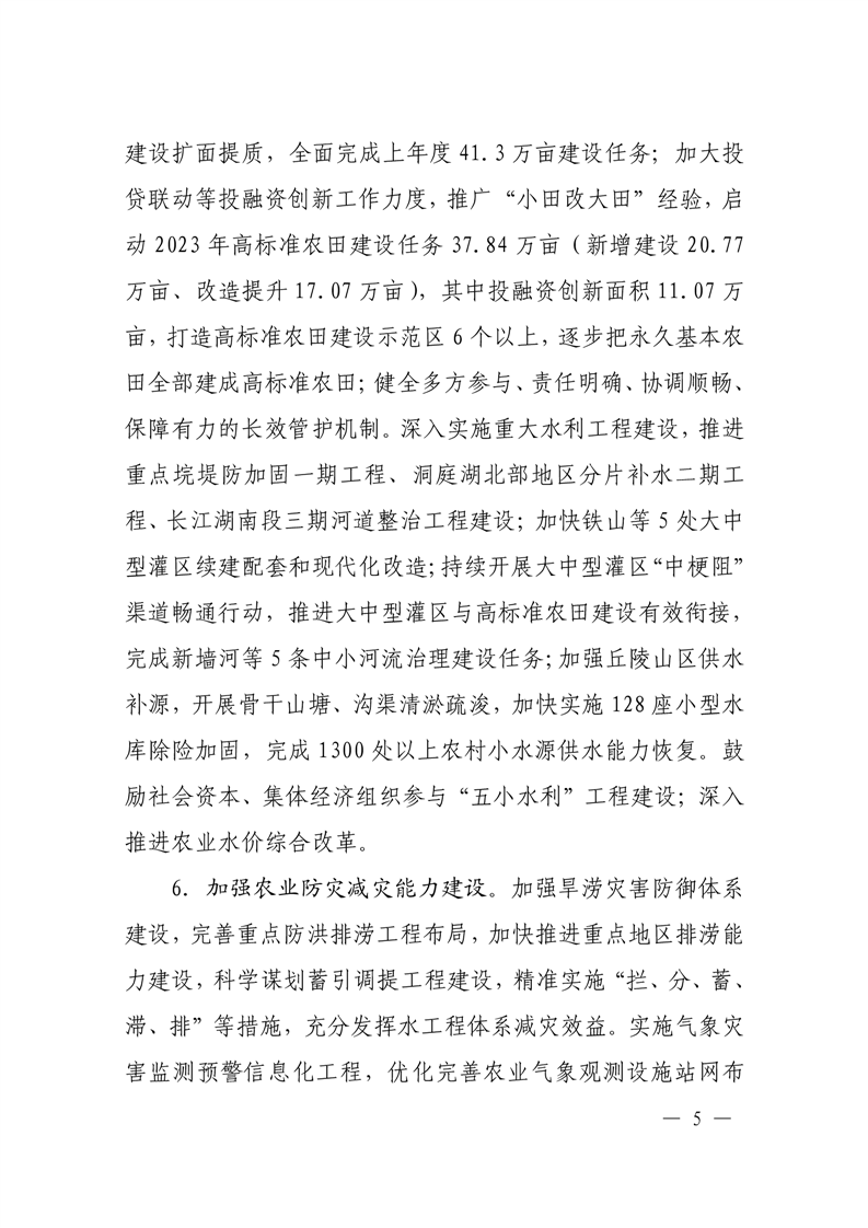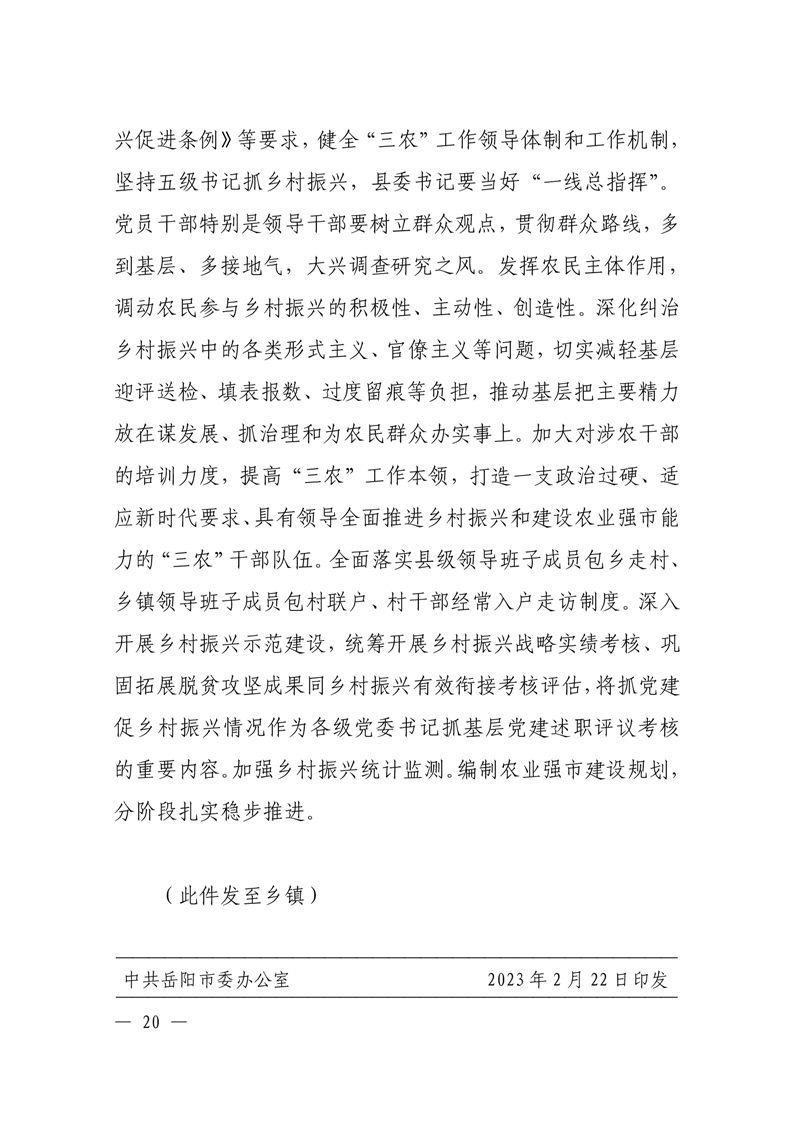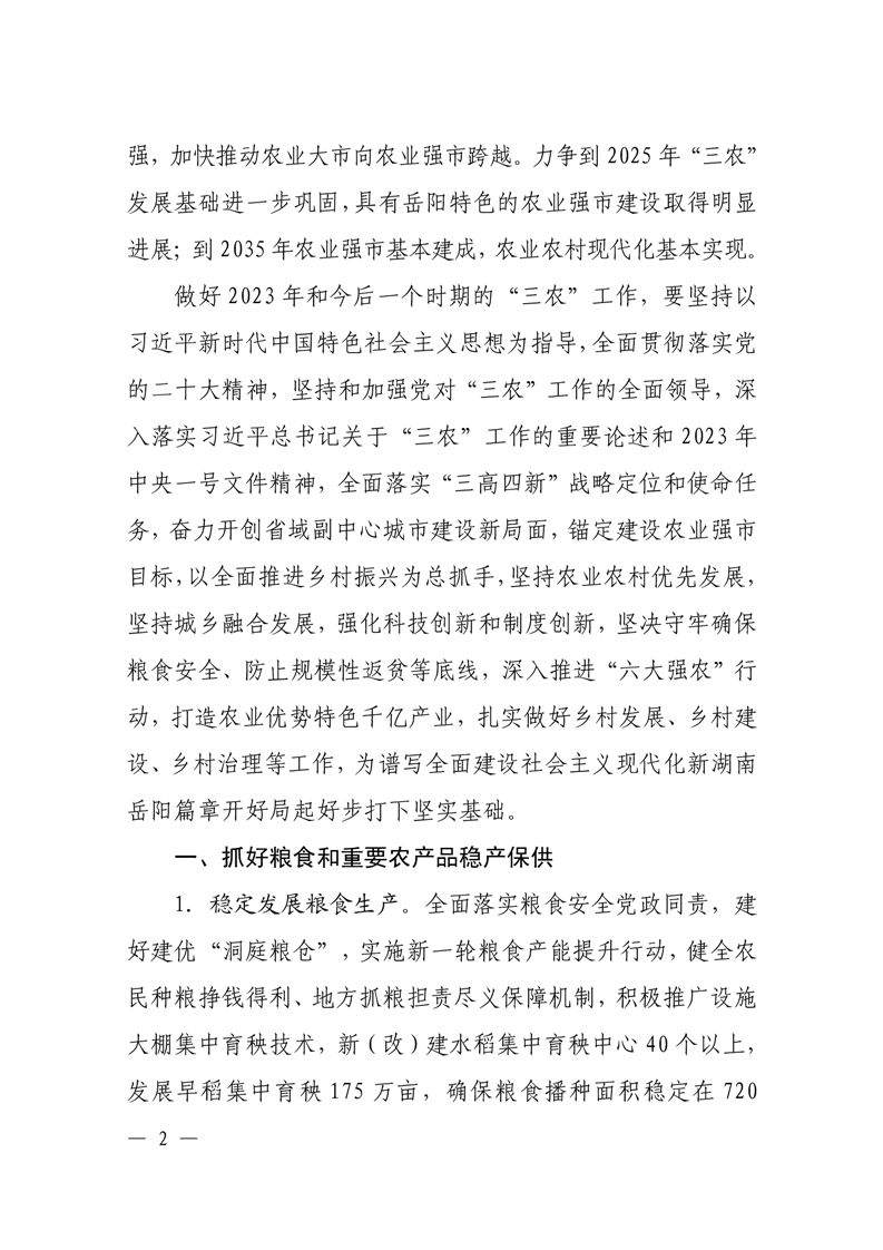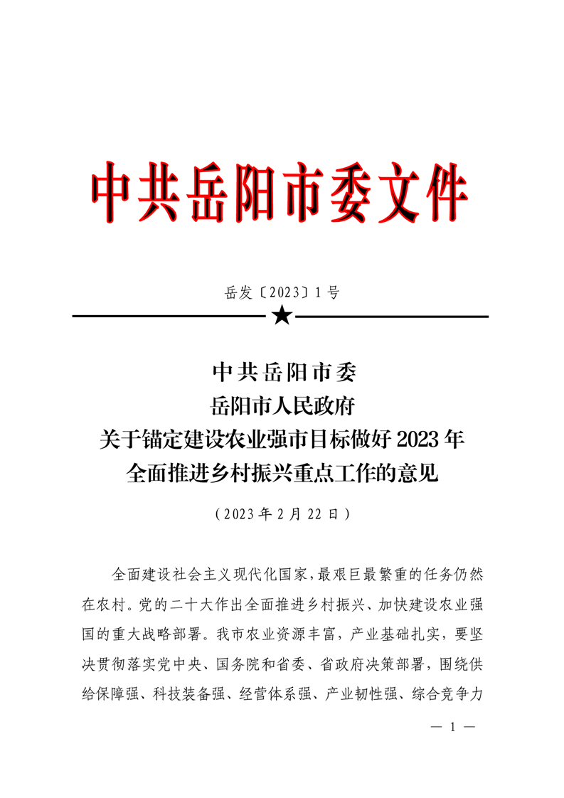 中共岳阳市委 岳阳市人民政府关于锚定建设农业强市目标做好2023年全面推进乡村振兴重点工作的意见