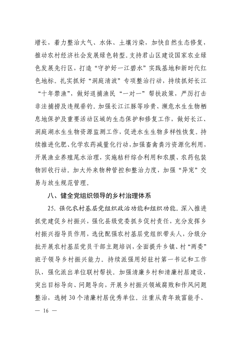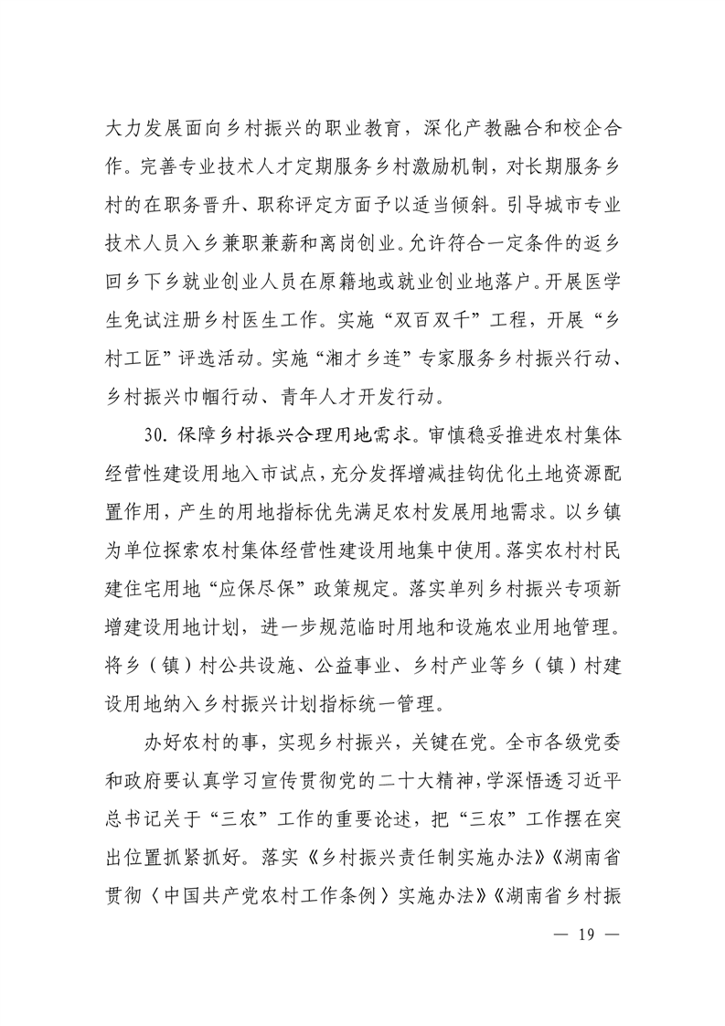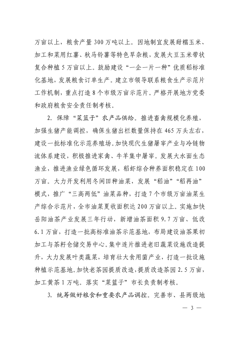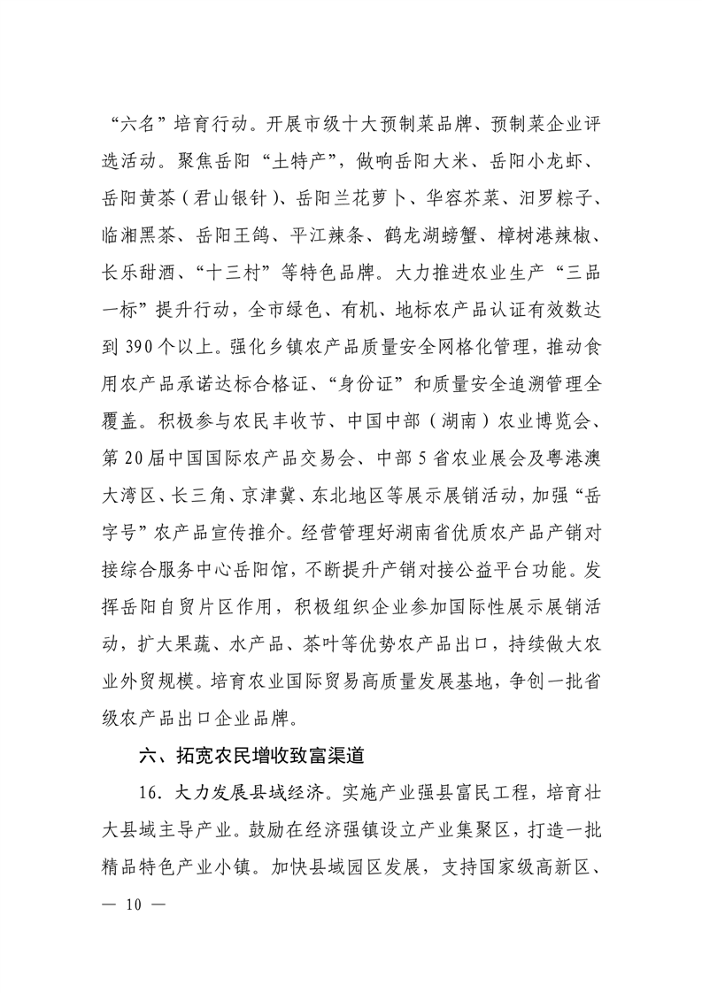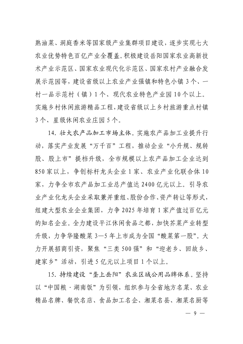 中共岳阳市委 岳阳市人民政府关于锚定建设农业强市目标做好2023年全面推进乡村振兴重点工作的意见