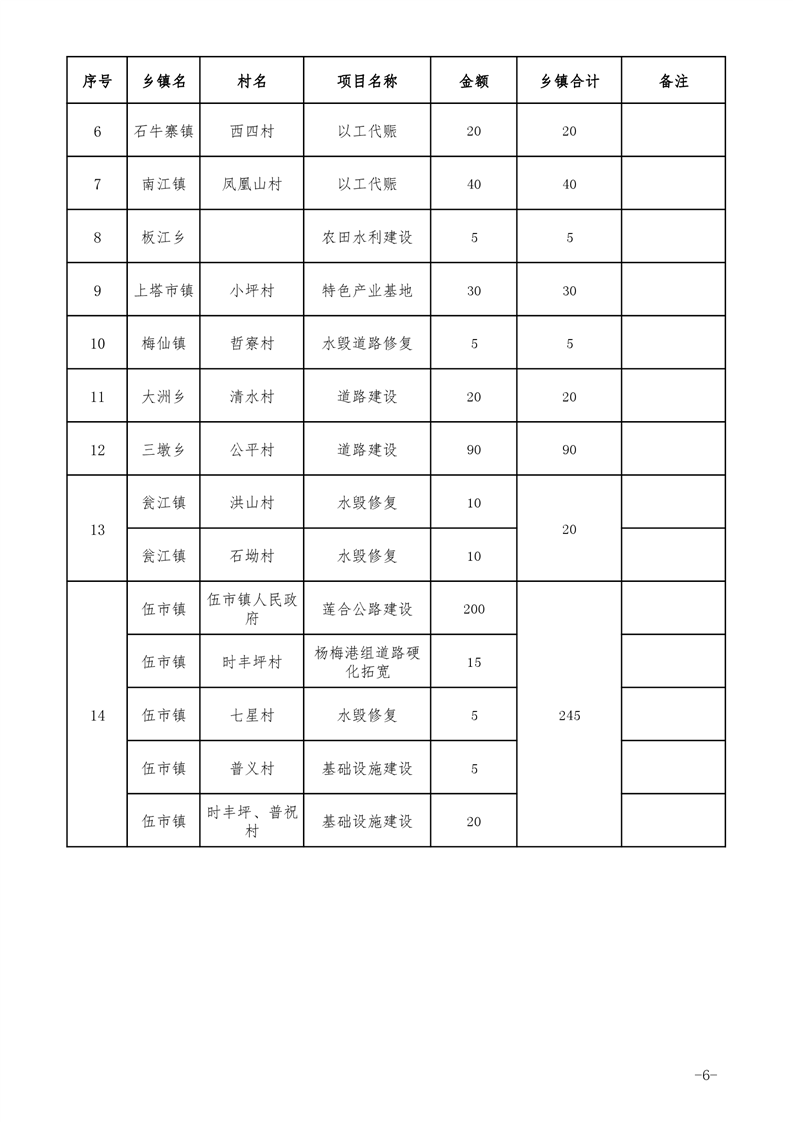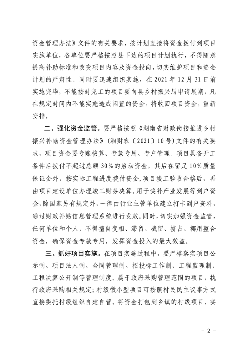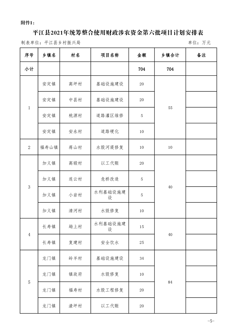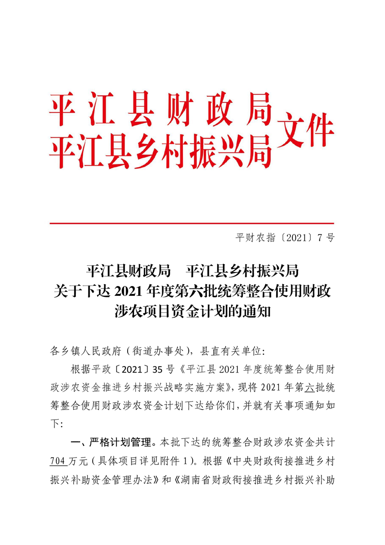 关于下达2021年第六批统筹整合使用财政涉农资金项目计划的通知