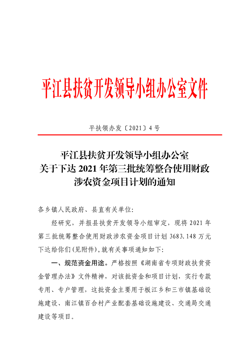 关于下达2021年第三批统筹整合使用财政涉农资金项目计划的通知