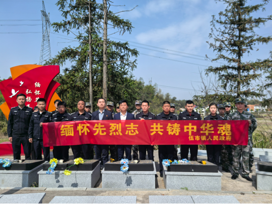 青松滴翠寄哀思,春风送花慰忠魂。4月3日上午,伍市镇武装部、退役军人服务站、党政办、社会发展办联合派出所前往伍市镇中家桥村雄狮岭革命烈士公墓,举行“缅怀先烈志·共铸中华魂”清明烈士公墓祭扫活动。