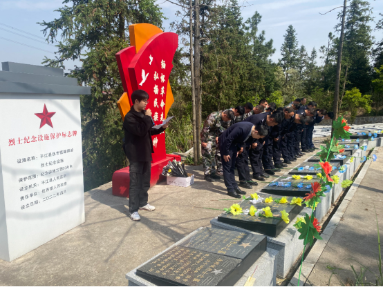 活动现场,松柏苍翠挺拔,烈士陵墓安然静卧,庄严肃穆。上午10点整,活动在激昂的中华人民共和国国歌声中启动,大家在56座烈士墓前默哀致敬、深切缅怀革命先烈;擦拭墓碑,向他们鞠躬致意、敬献鲜花,表达对先烈们的崇高敬意;机关党员代表潘佳鑫宣读祭文,追忆革命先烈的丰功伟绩,表达对他们的崇高敬意......