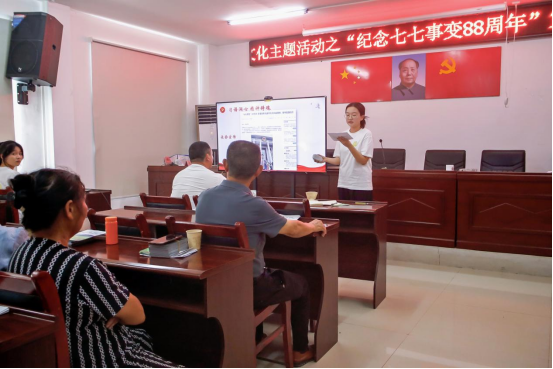 参会成员认真聆听 (通讯员 钟扬 陈佳乐 李宣萱)7月8日,湖南师范大学医学部“医心赤诚在乡野”实践团在长寿镇国富村党员活动室开展红色文化主题活动之“纪念七七事变88周年”宣讲会,长寿镇国富村党支部书记周维家、副书记熊壮志、党员、群众代表等30余人参加会议。 宣讲会上,实践团队员援引习近平总书记“让历史说话,用史实发言”的重要论述,紧扣“铭记历史,砥砺前行”为主线,通过图文展示、视频辅助等形式,以通俗语言讲好红色故事,带领参会人员共同在历史回响中感悟初心,于红色传承里汲取力量。通过红色历史读书分享,以“居安思危,未雨绸缪”为引,阐释一个民族的伟大源于对历史的铭记与传承;聚焦“七七事变”,解读背景,梳理史实,带领村民回溯历史脉络;围绕平江县爱国将领张震上将、苏振华将军等革命先烈事迹,传递“铭记来时路,初心永不褪色”的价值指引。 参会人员国富村党支部书记周维家表示:宣讲会的意义在于呼吁新时代的党员、群众重温历史、铭记使命,汲取红色力量,为家乡建设献计出力。实践团队员表示:作为新时代青年,他们将不断创新教育形式,强化红色渲染力,做到明晰传承抗战精神、永葆斗争意识。 硝烟已散,精神永存。此次宣讲会以历史为锚,将“铭记—传承—奋进”串联,既让参会人员重温“七七事变”的历史教训、感悟革命先辈精神,也彰显出实践团青年以红色教育赋能乡村文化振兴的责任担当,让红色基因在长寿镇这片革命热土上不断传承。 |