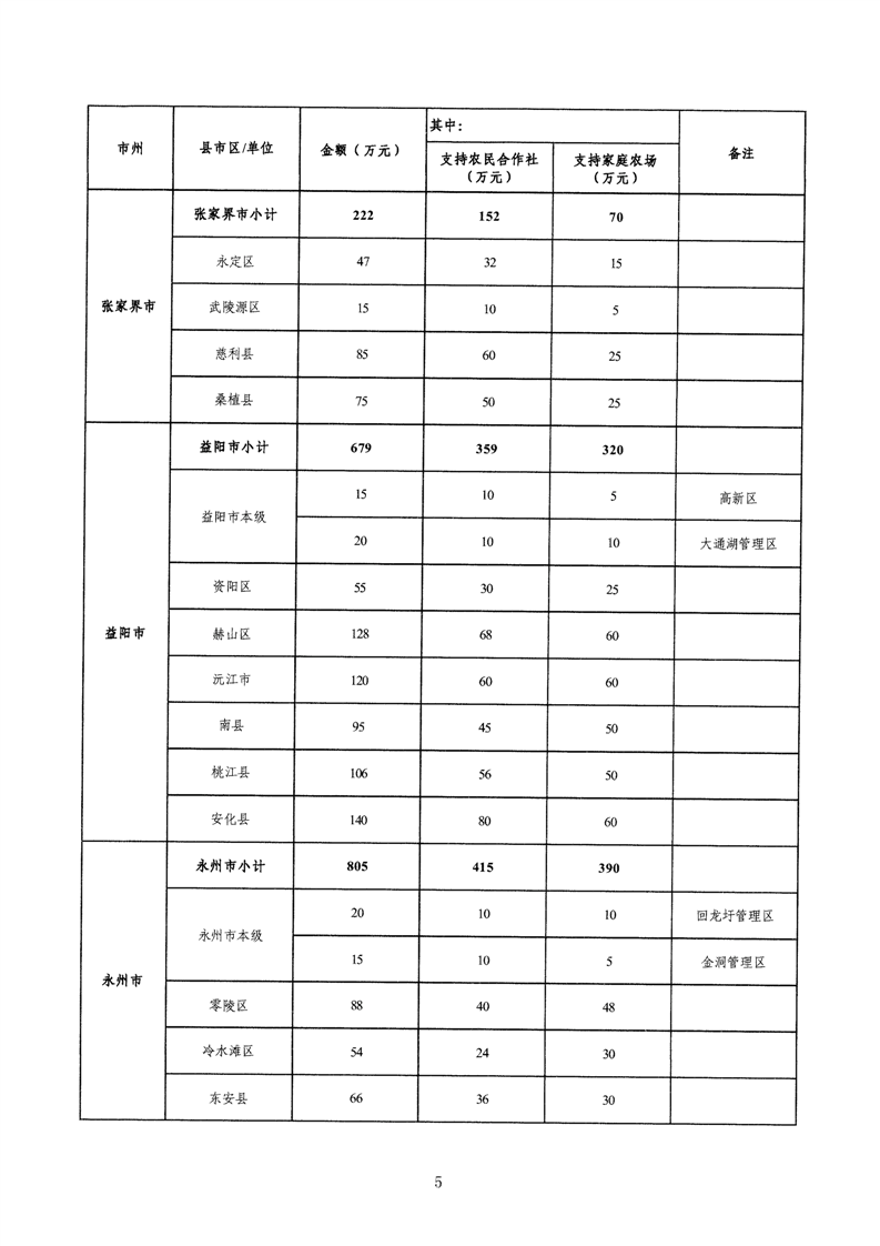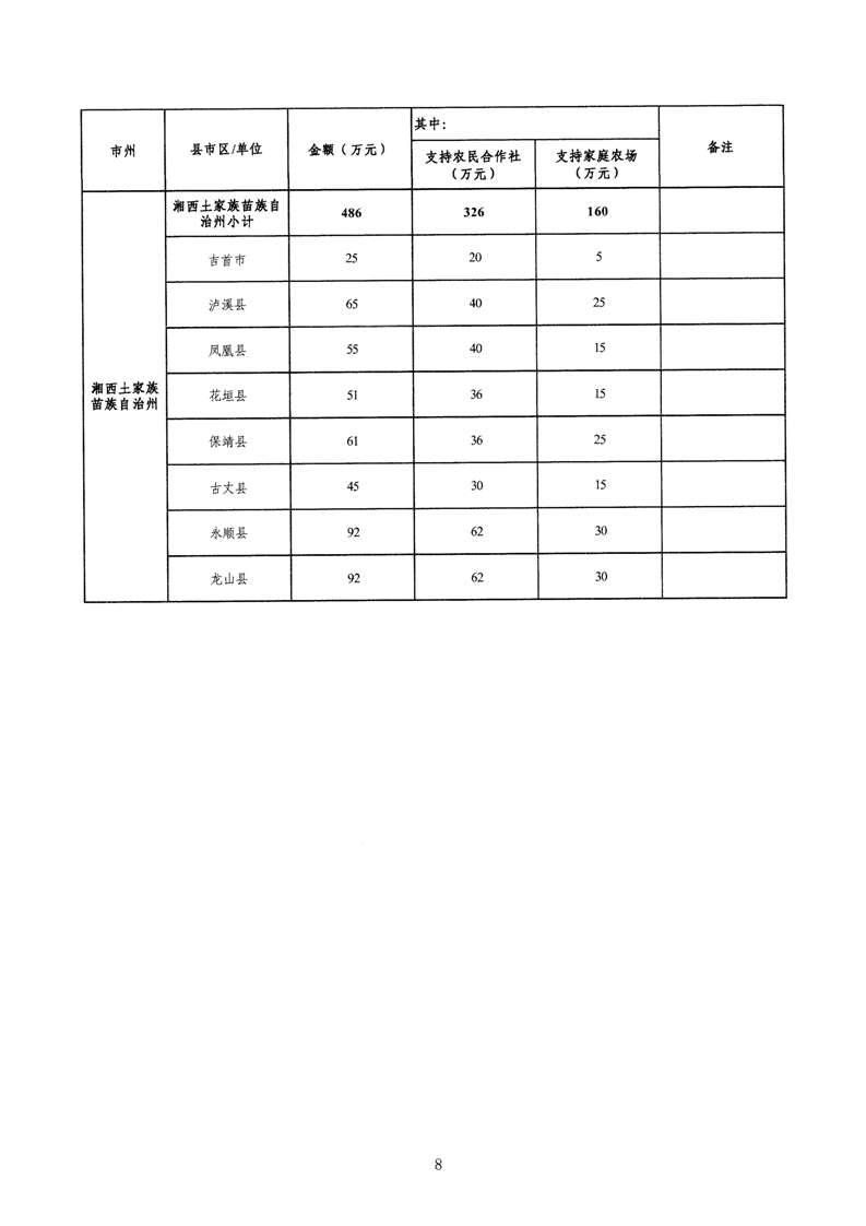 相关市州、省直管县市财政局: 根据《财政部关于提前下达2024年农业相关转移支付资金预算的通知》(财农〔2023〕87号)、《财政部关于下达2024年农业经营主体能力提升资金预算的通知》(财农〔2024〕17号)文件精神,经研究,现下达你市(州、省直管县)2024年中央农业经营主体能力提升资金 万元,中央资金收入列“1100252农林水共同财政事权转移支付收入”科目,支出功能科目列“2130122农业生产发展”,政府预算支出经济科目“509对个人和家庭的补助”。请严格按照《农业相关转移支付资金管理办法》(财农〔2023〕11号)和《湖南省财政厅农业农村厅关于印发中央农业转移支付资金管理细则的通知(湘财农〔2024〕1号)规定加强资金使用监管,提高资金支出绩效。 附件:1.2024年中央农业经营主体能力提升资金分配表 2.2024年中央农业经营主体能力提升资金绩效目标表 湖南省财政厅 2024年7月1日