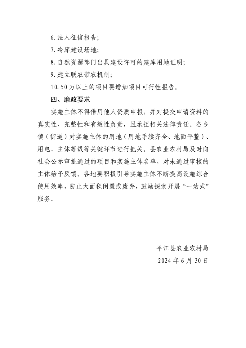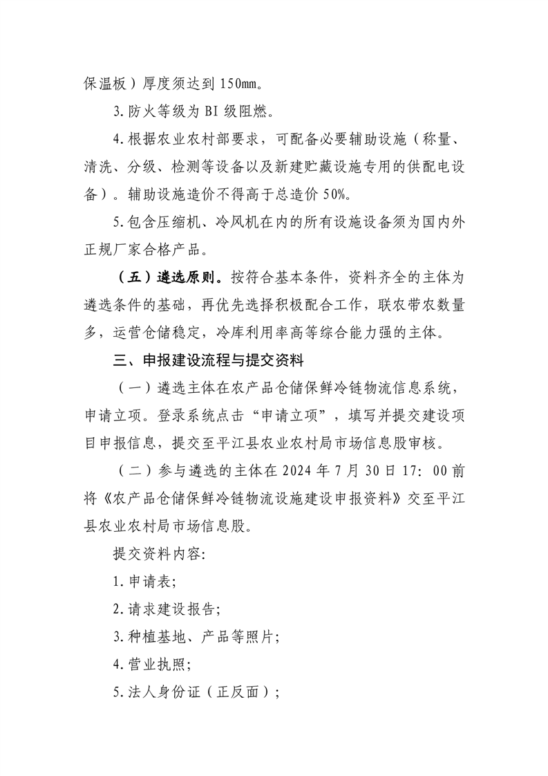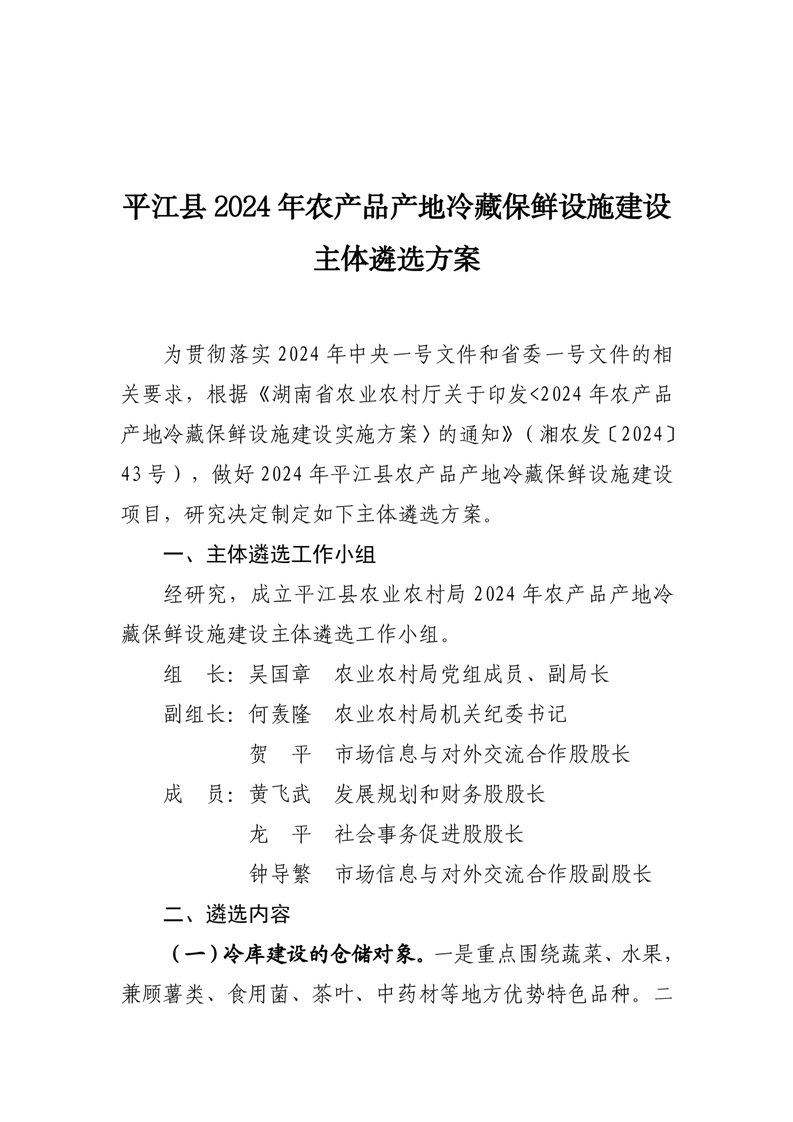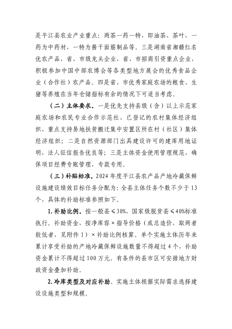 平江县2024年农产品产地冷藏保鲜设施建设主体遴选方案