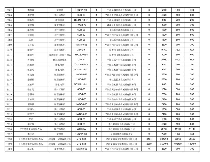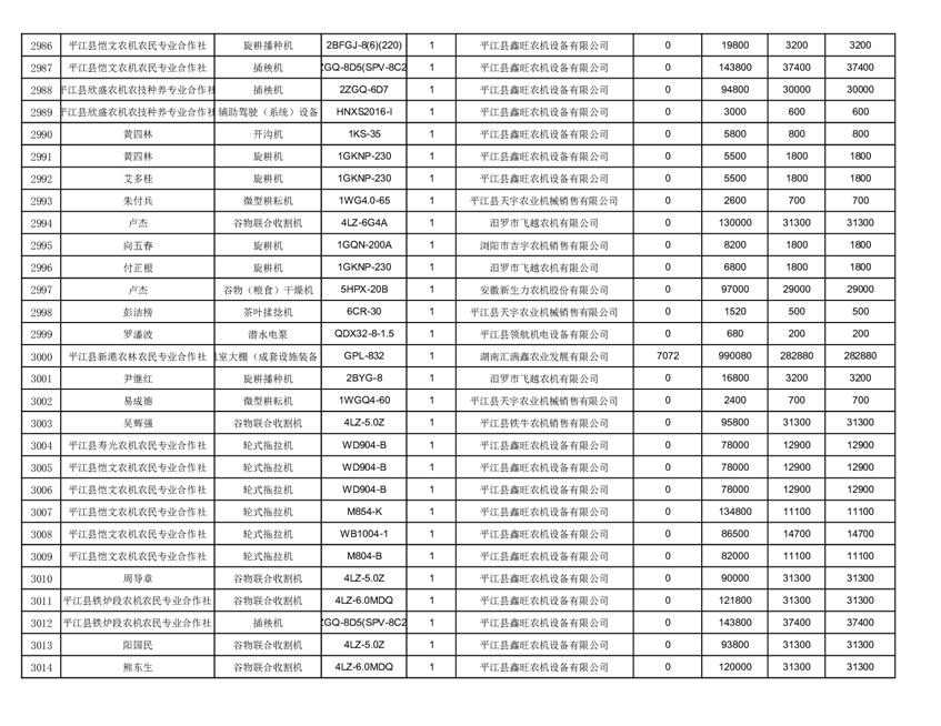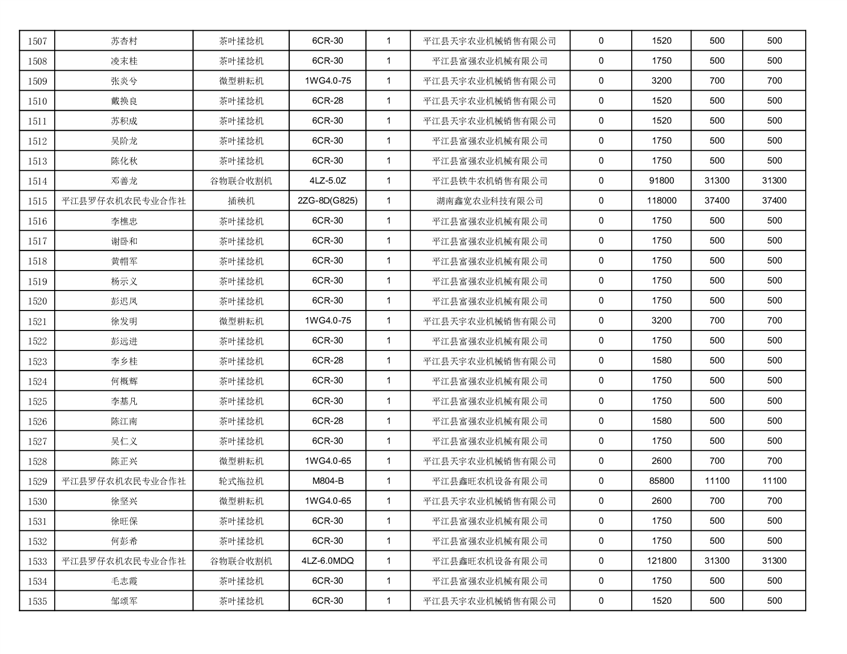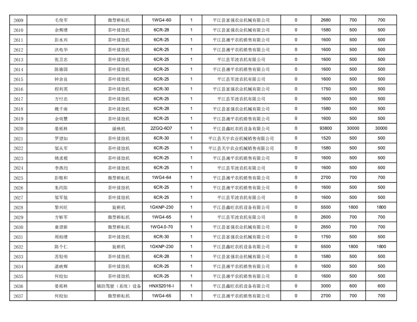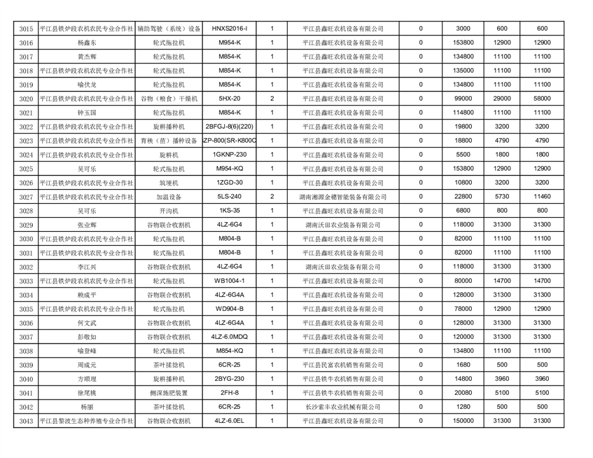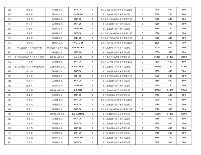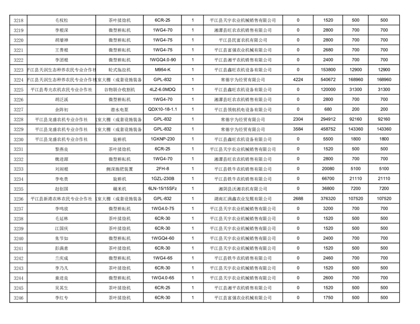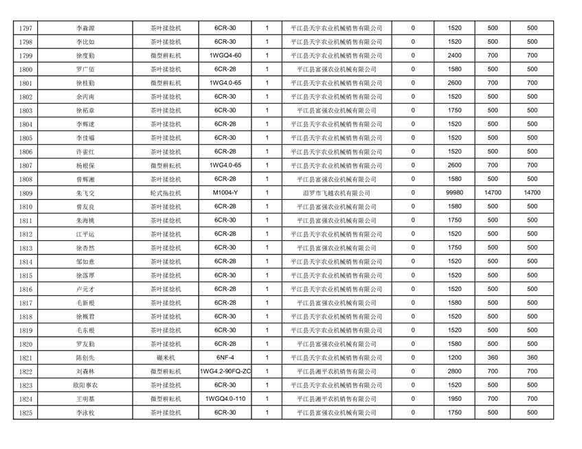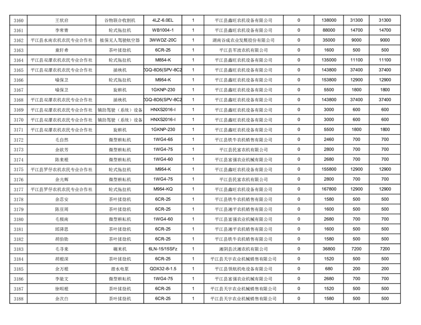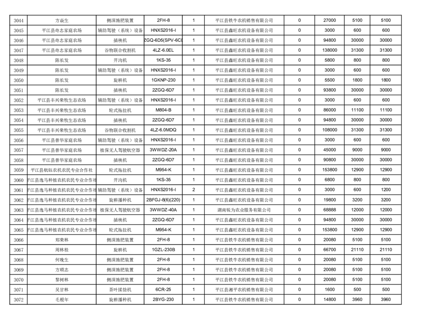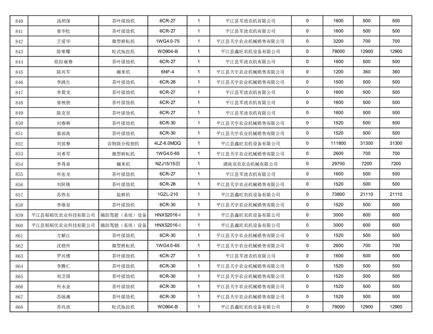 2022年平江县享受农机购置补贴的农户信息表