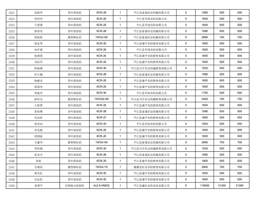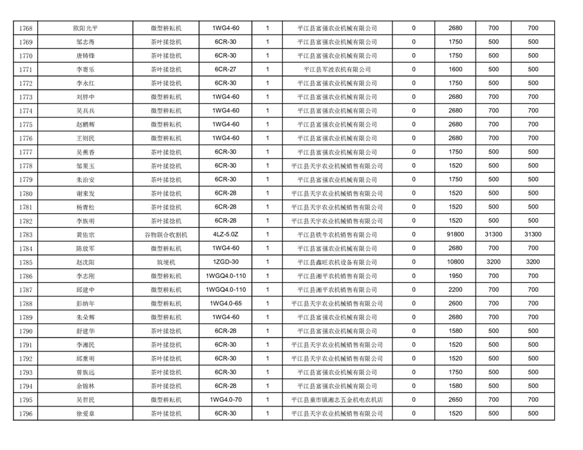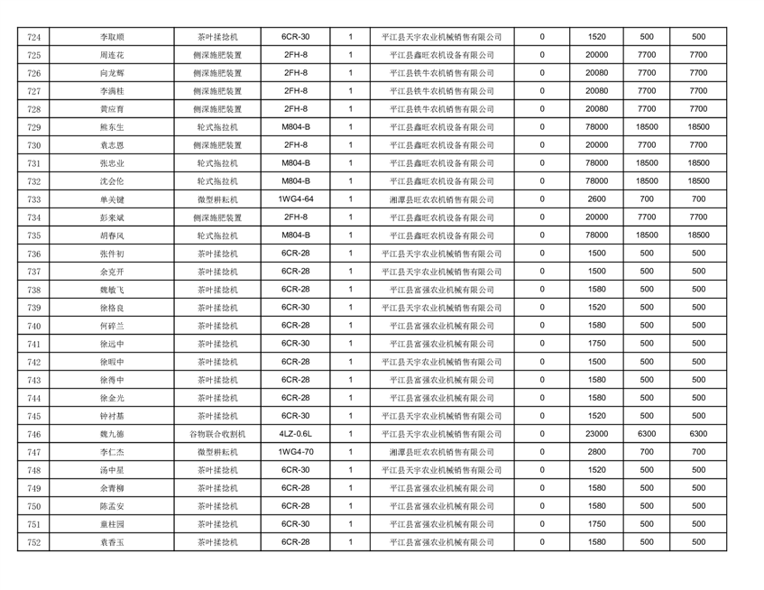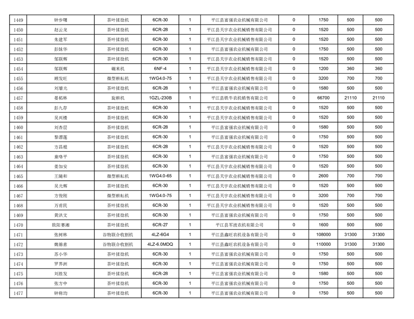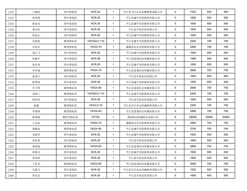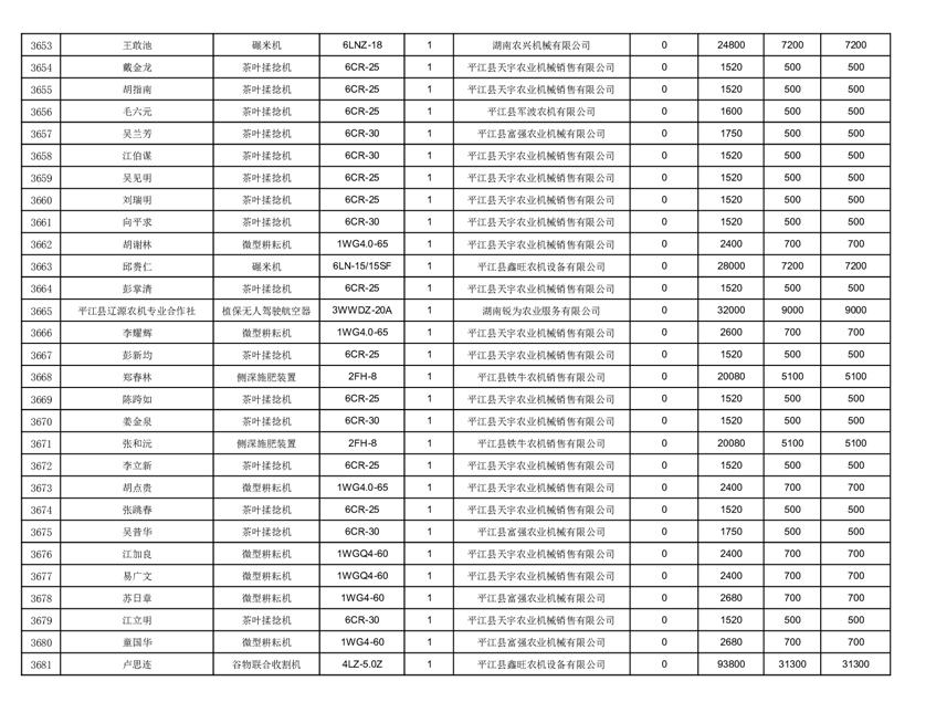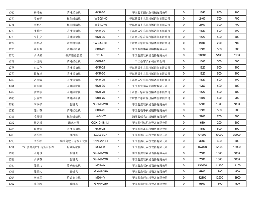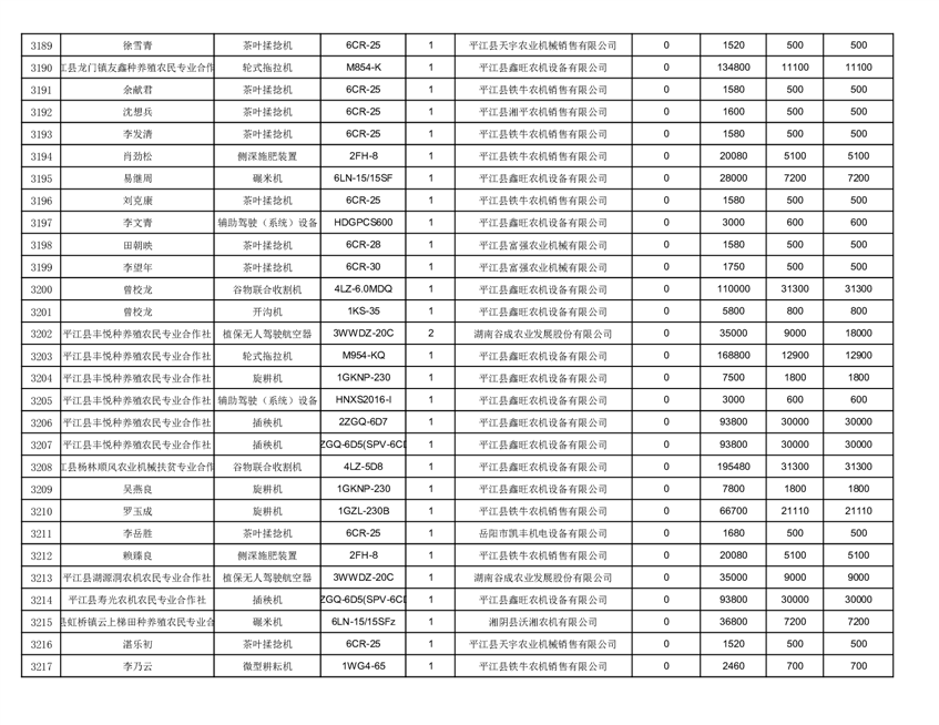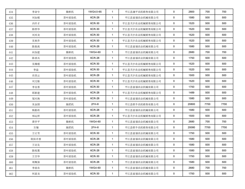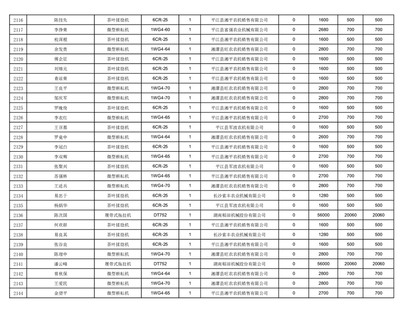 2022年平江县享受农机购置补贴的农户信息表