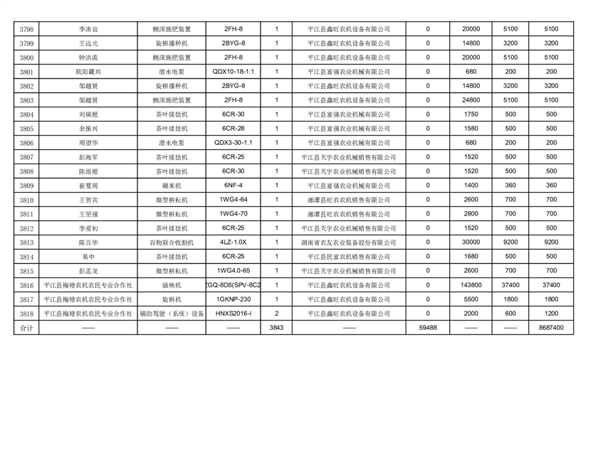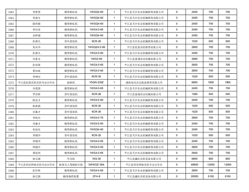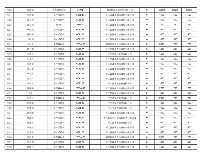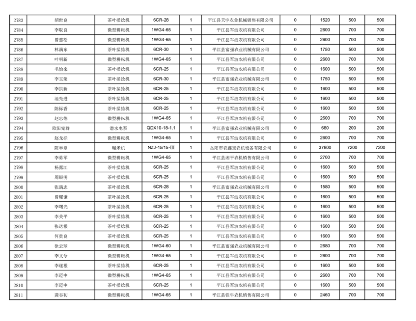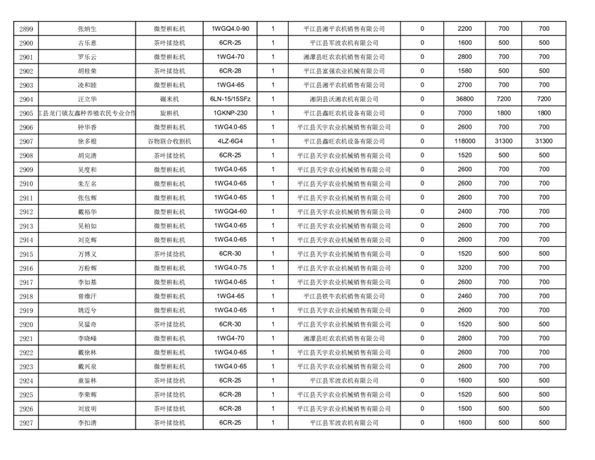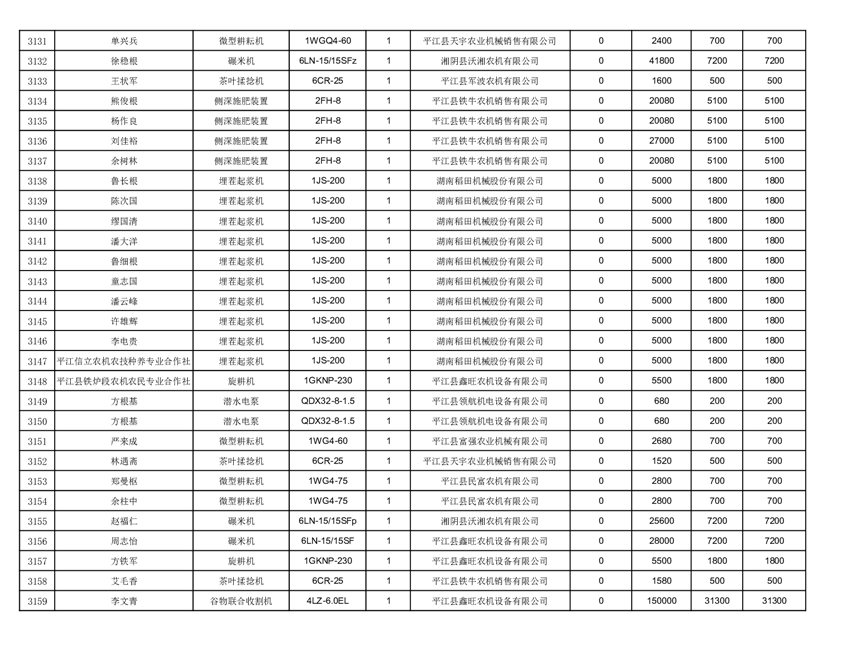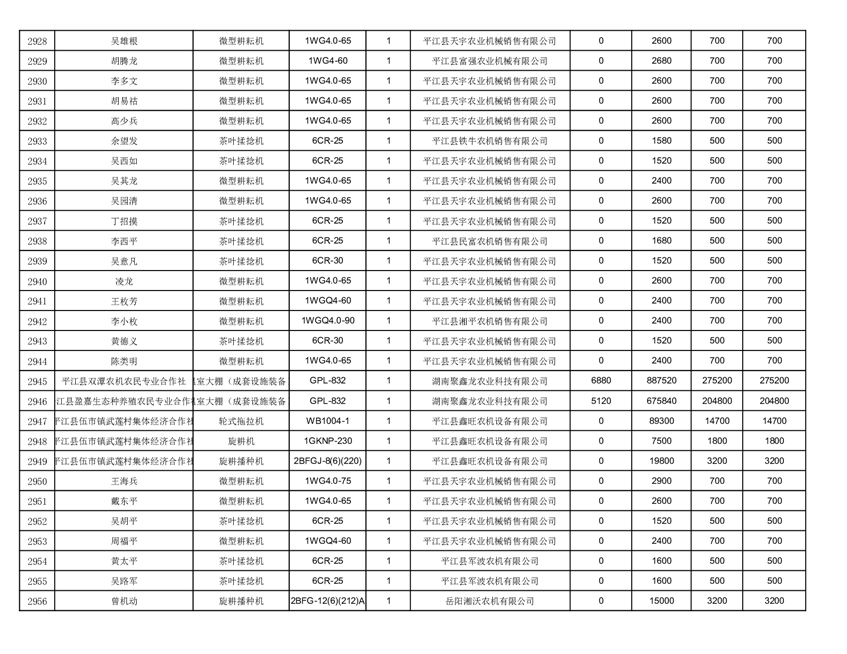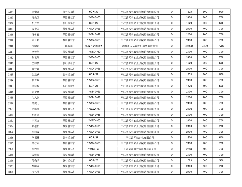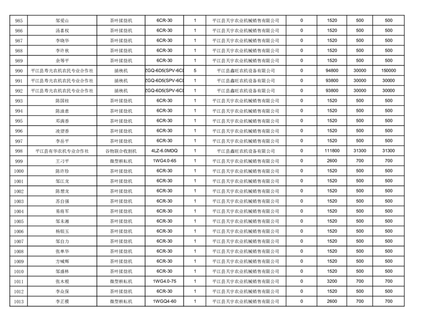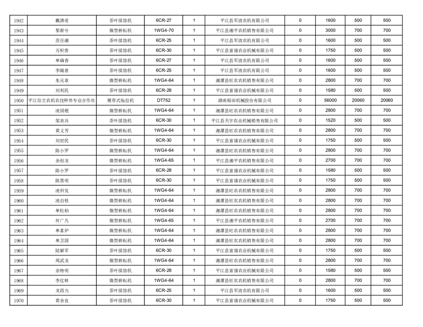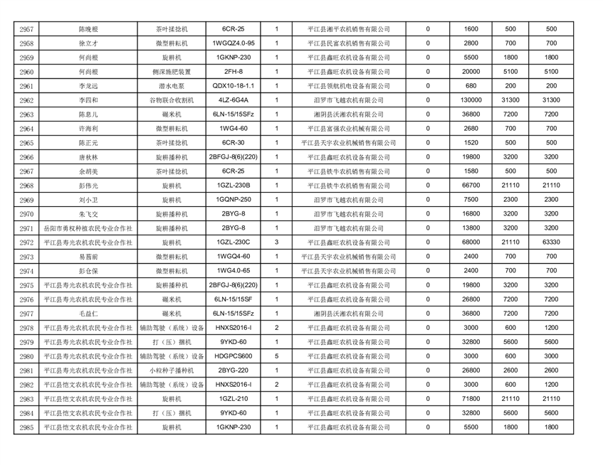 2022年平江县享受农机购置补贴的农户信息表