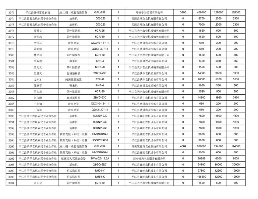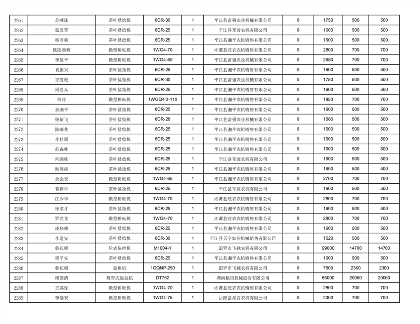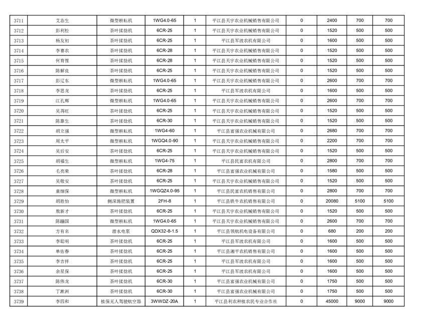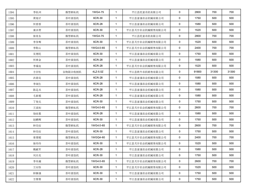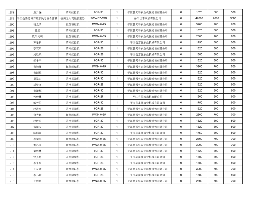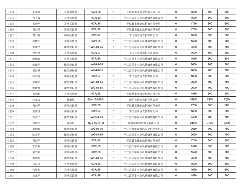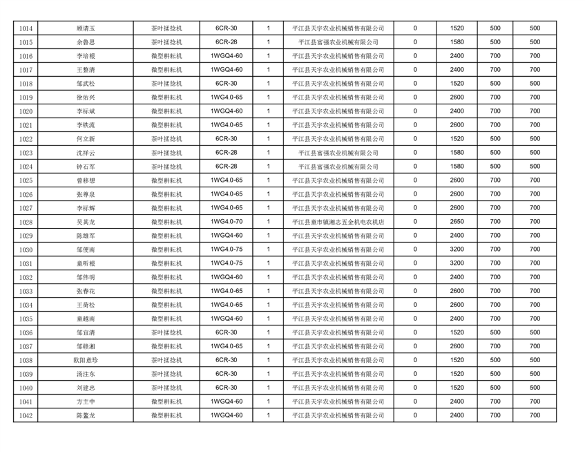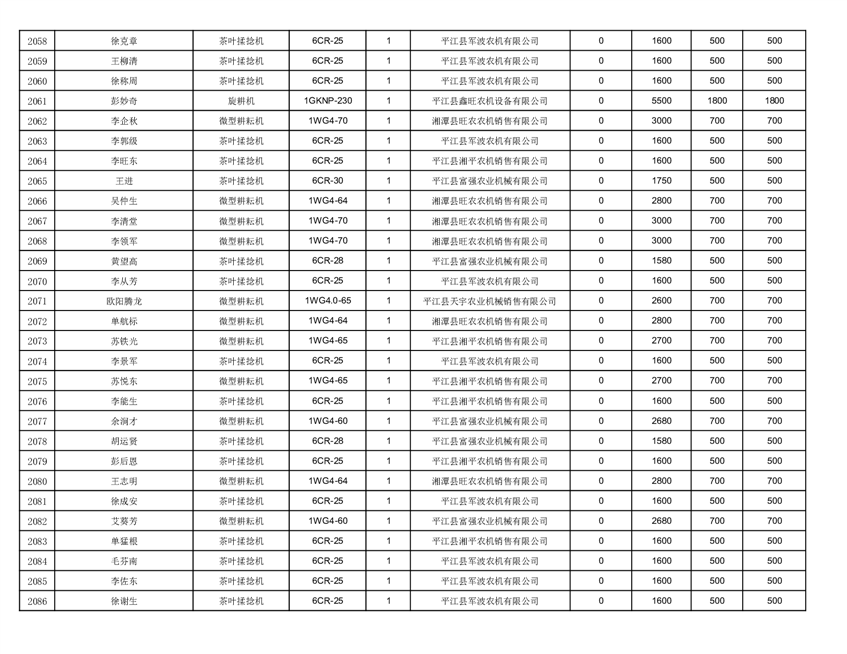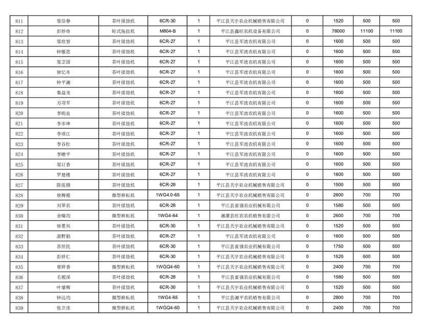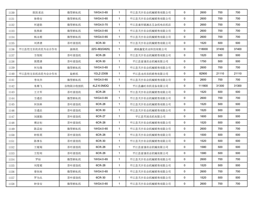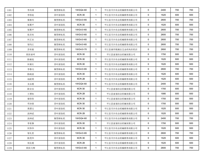 2022年平江县享受农机购置补贴的农户信息表
