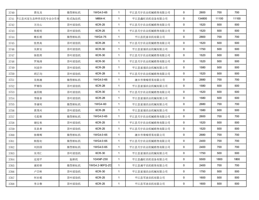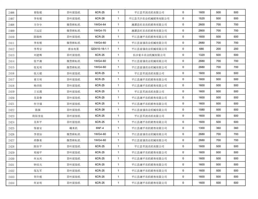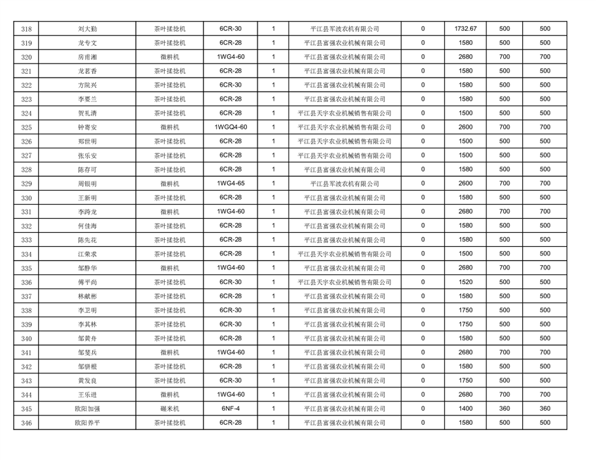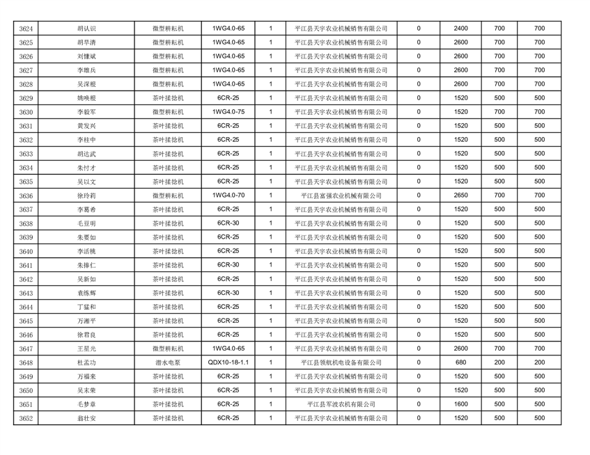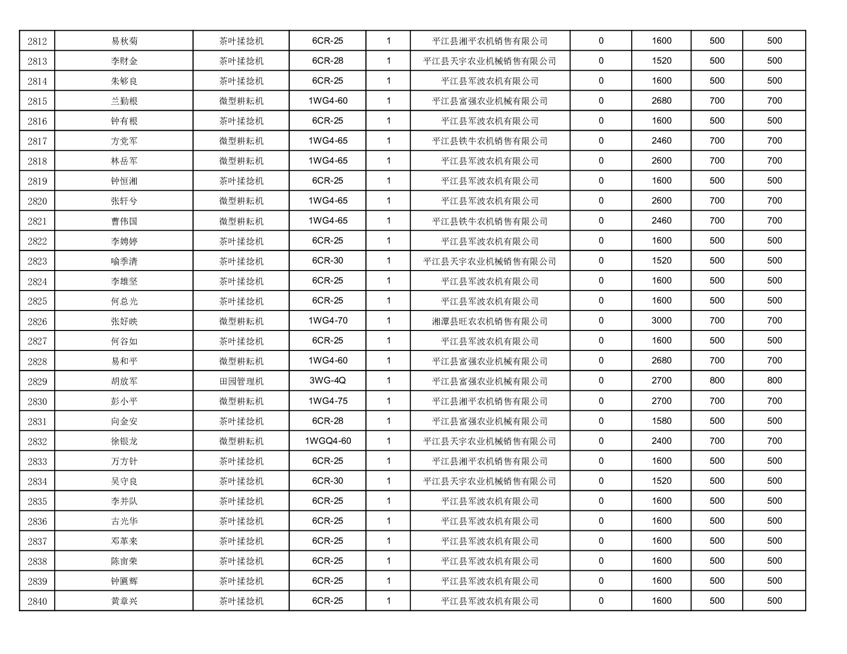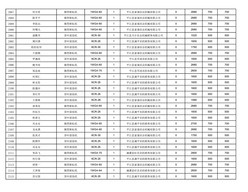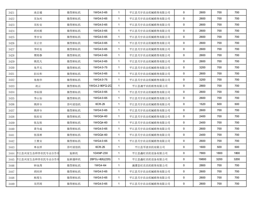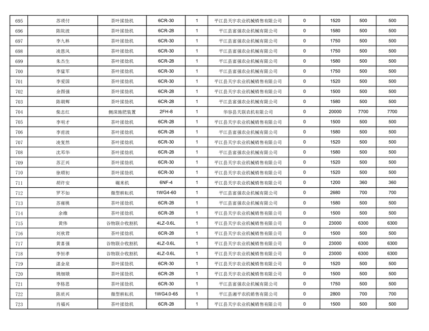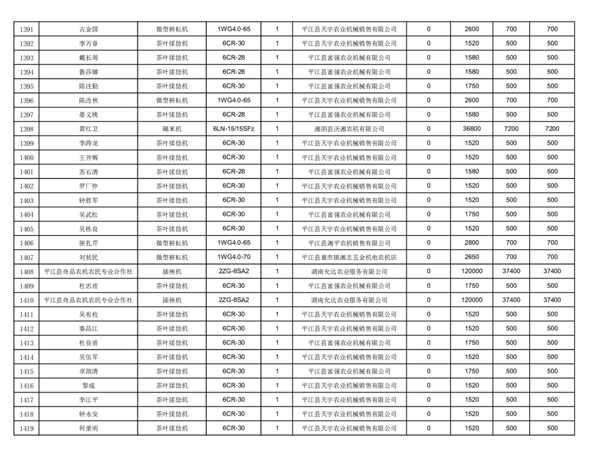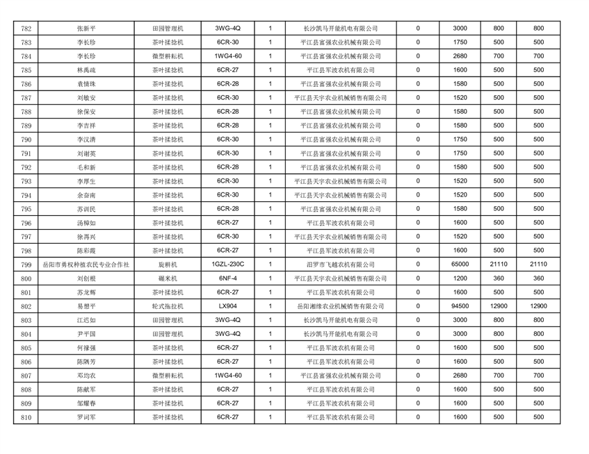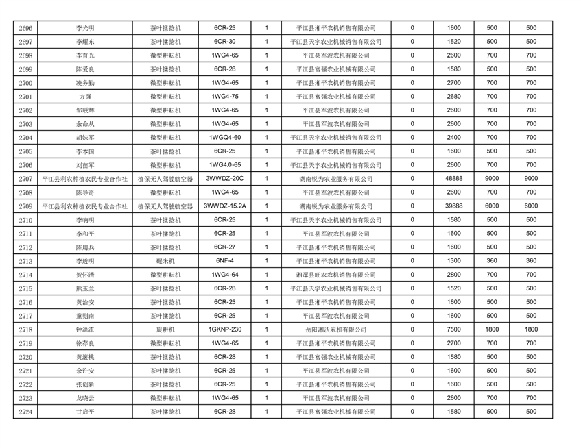 2022年平江县享受农机购置补贴的农户信息表