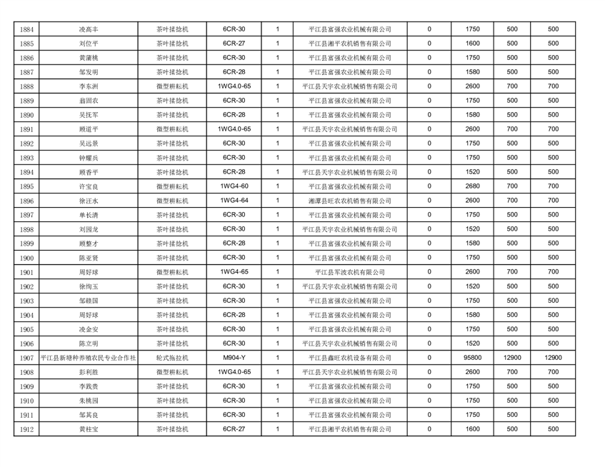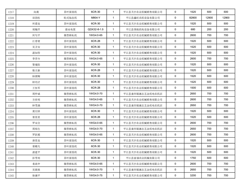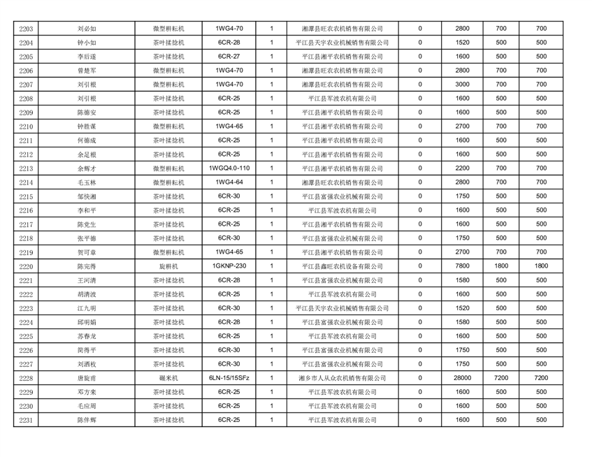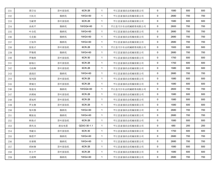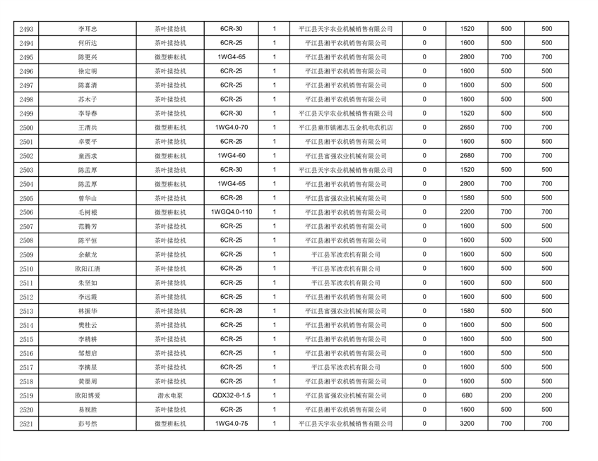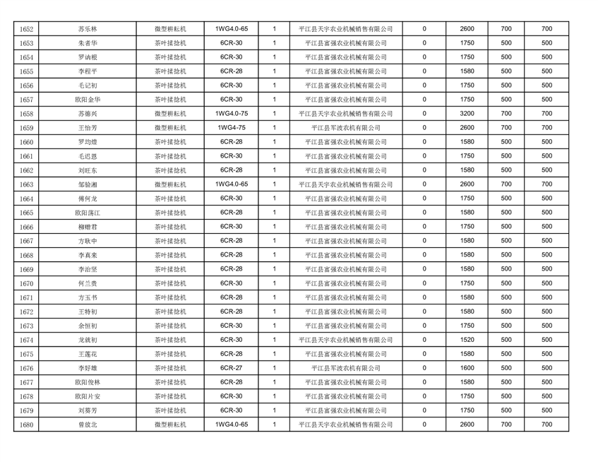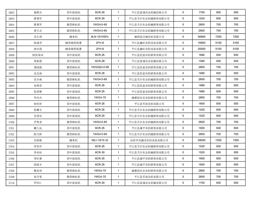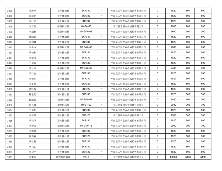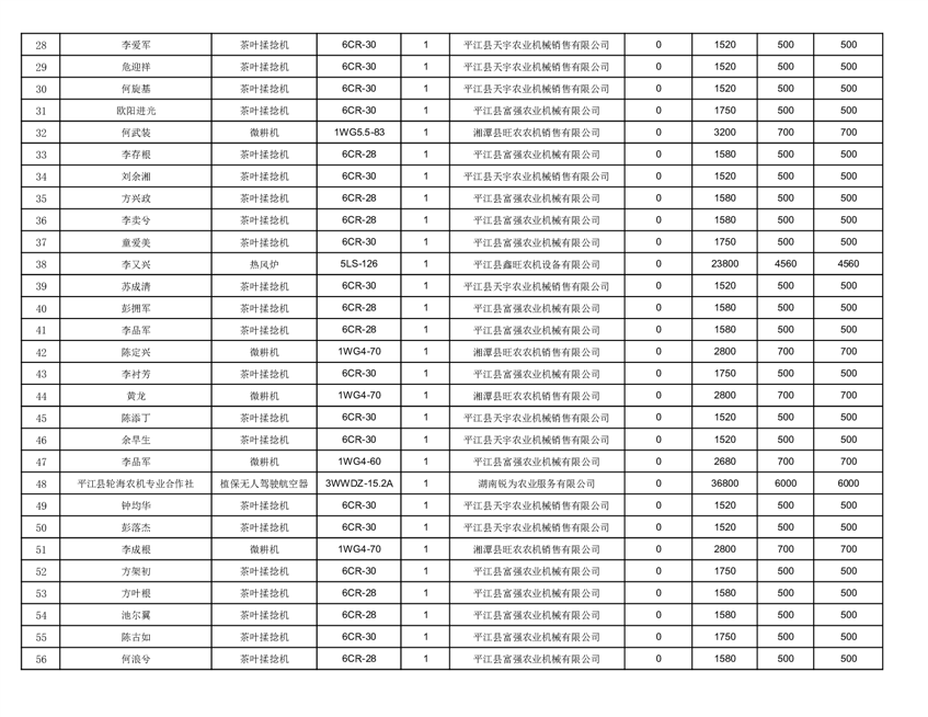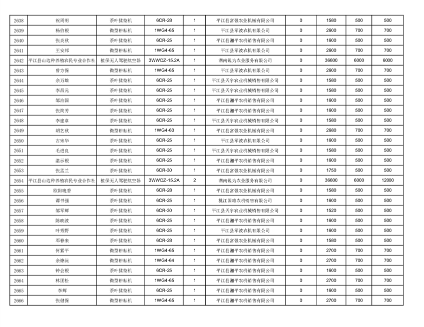 2022年平江县享受农机购置补贴的农户信息表