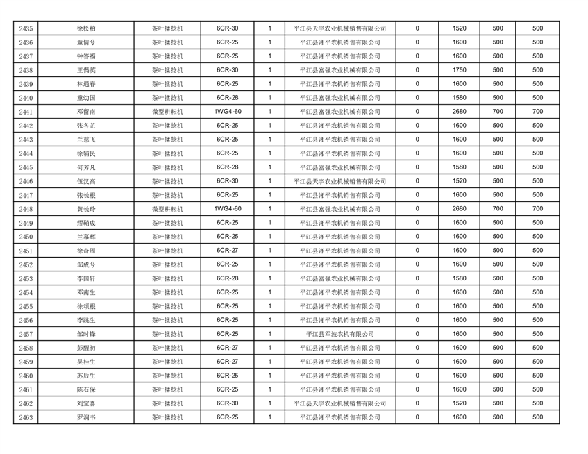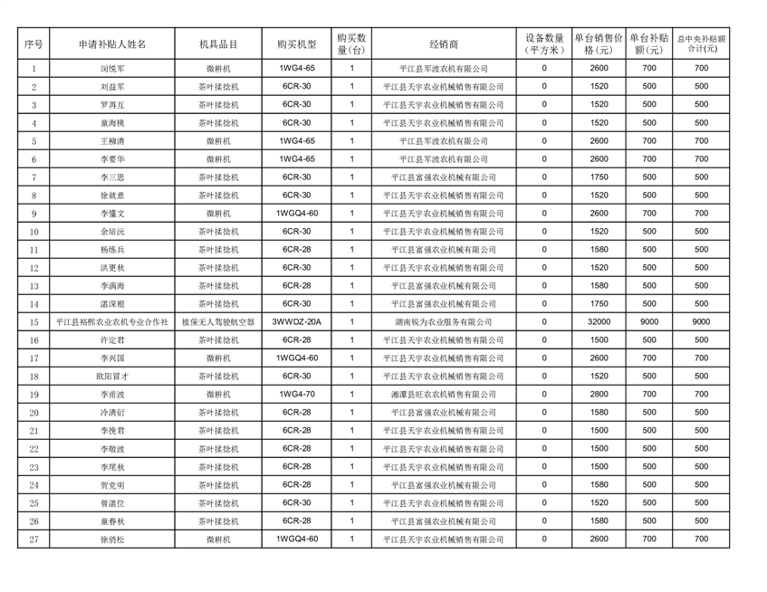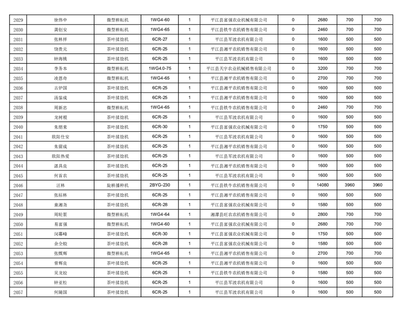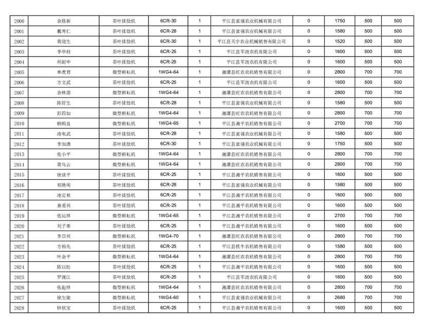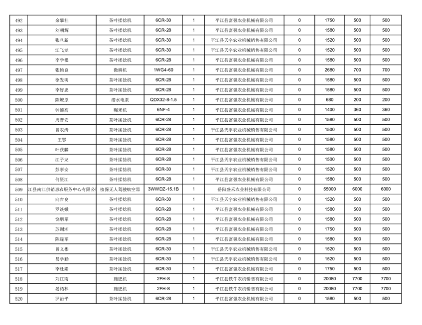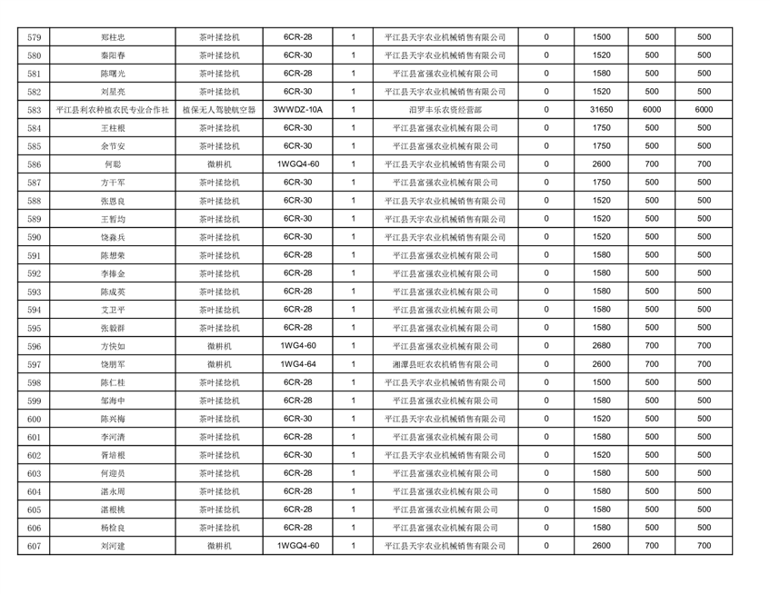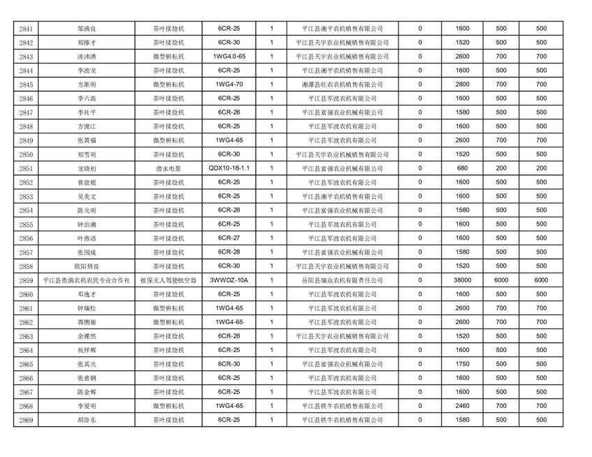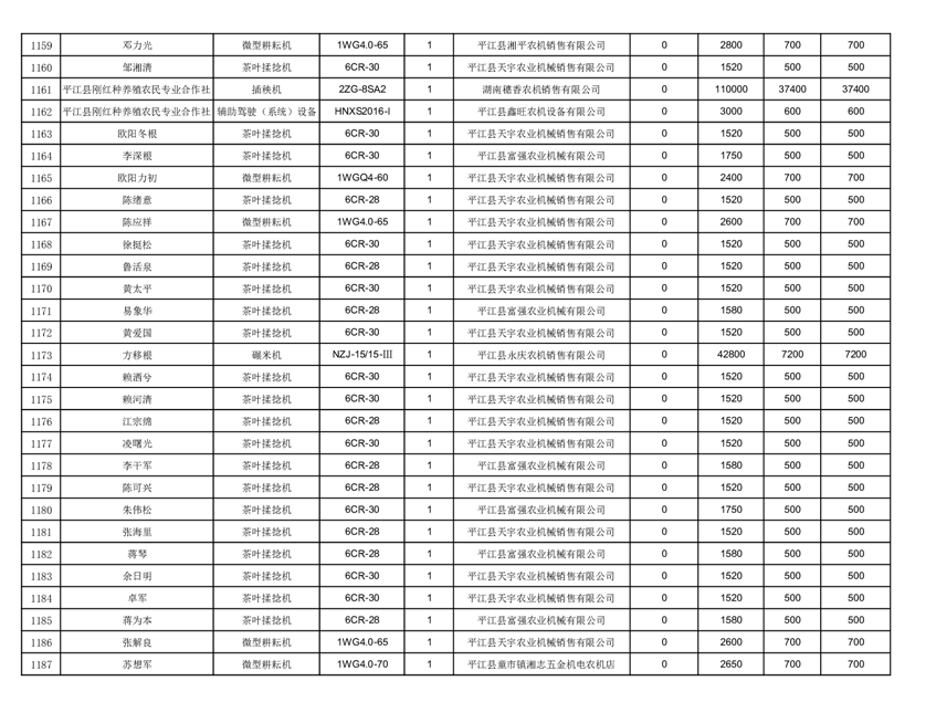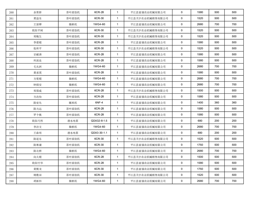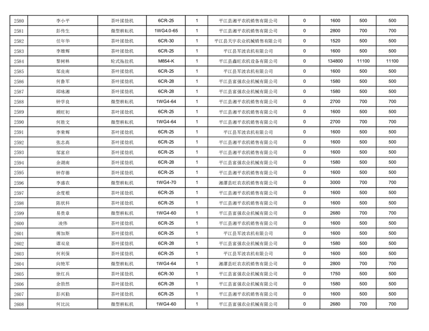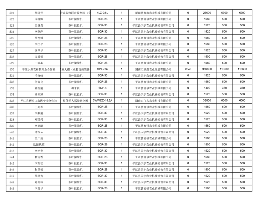 2022年平江县享受农机购置补贴的农户信息表