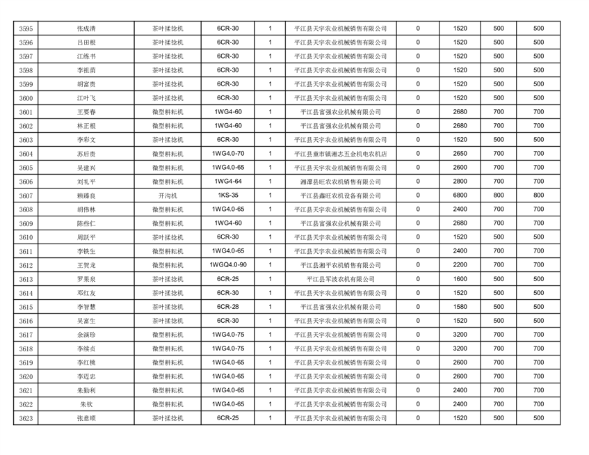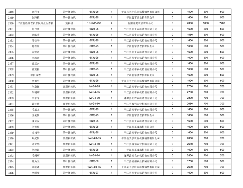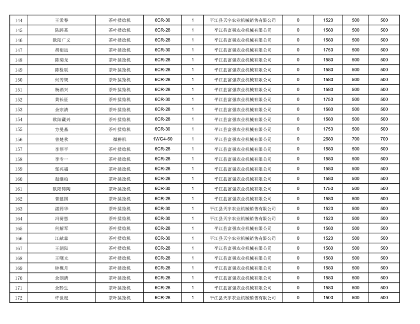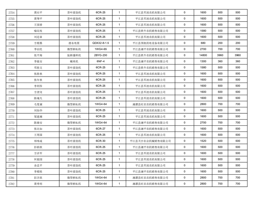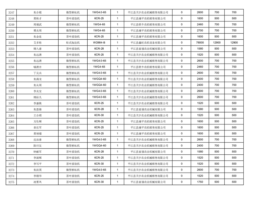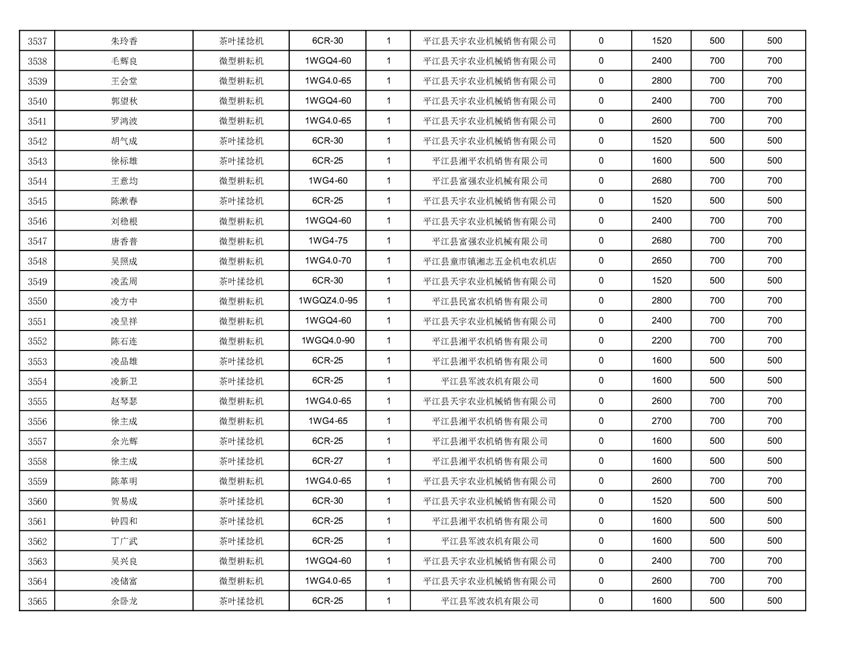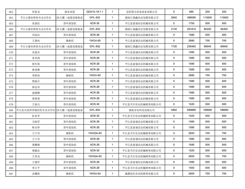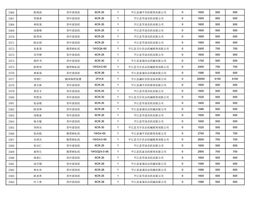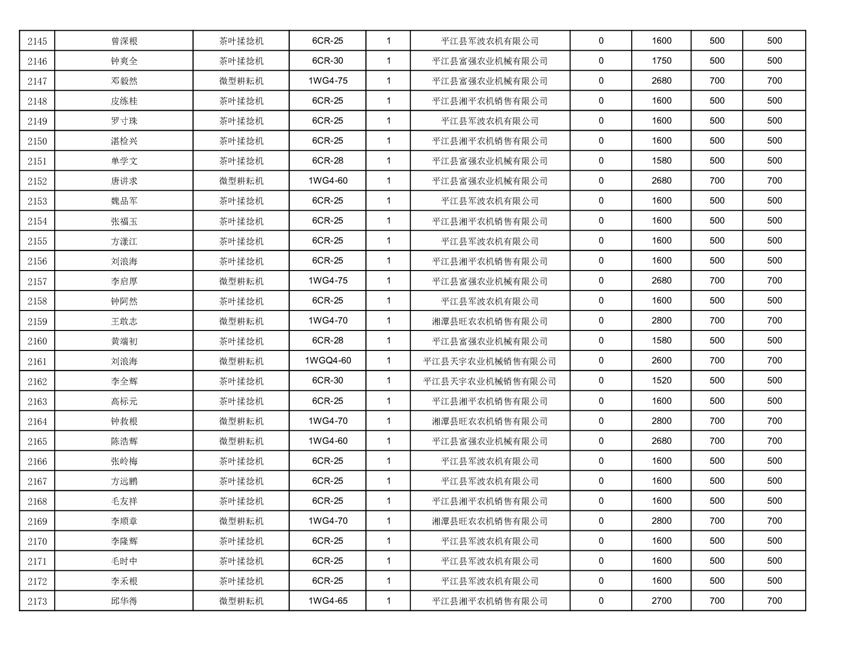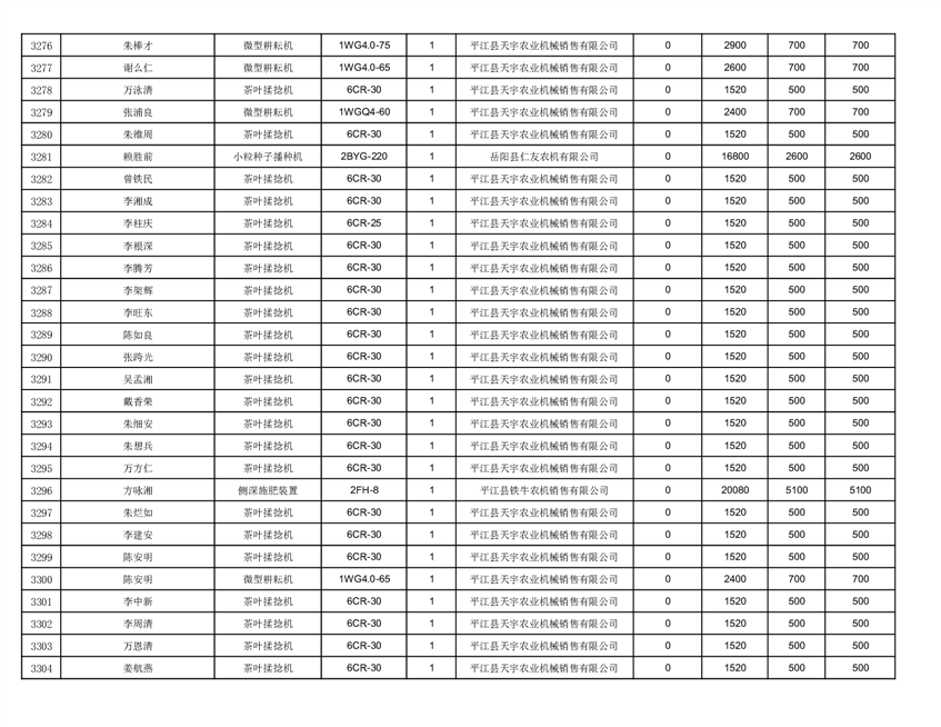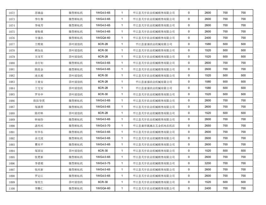 2022年平江县享受农机购置补贴的农户信息表