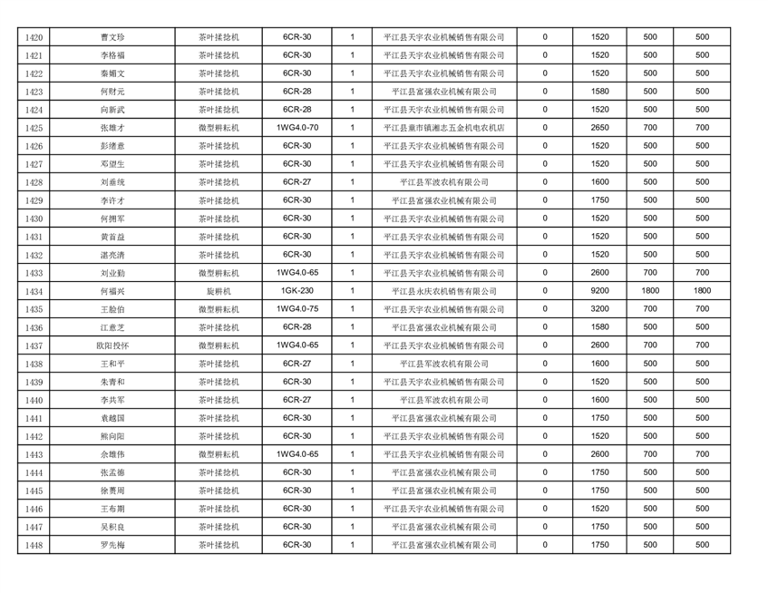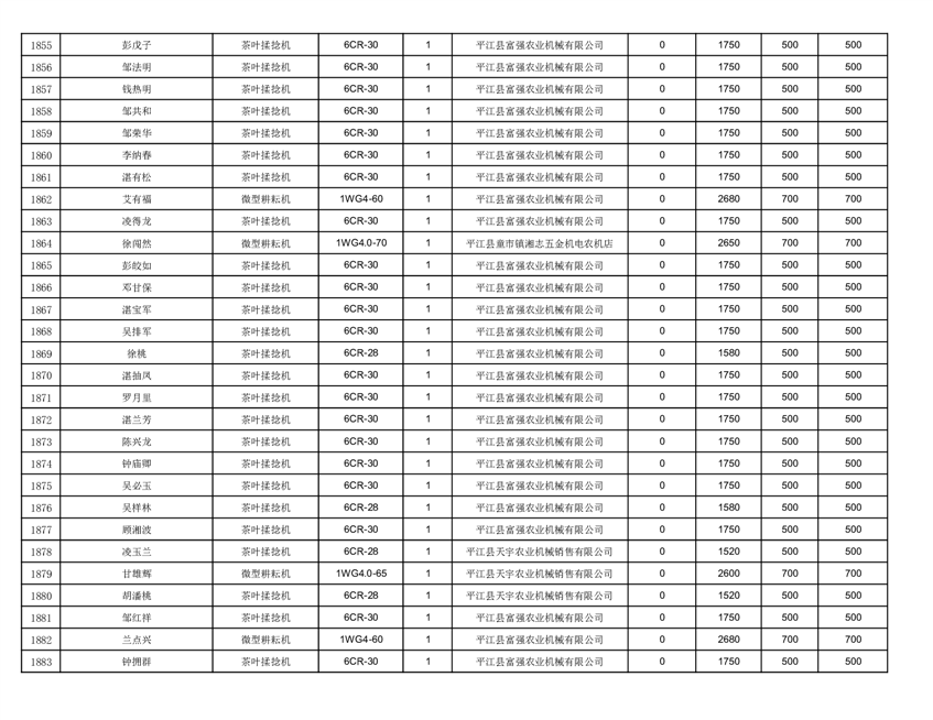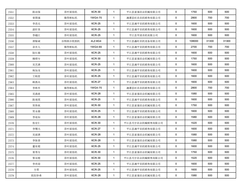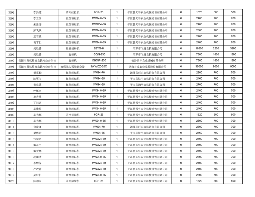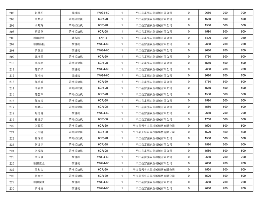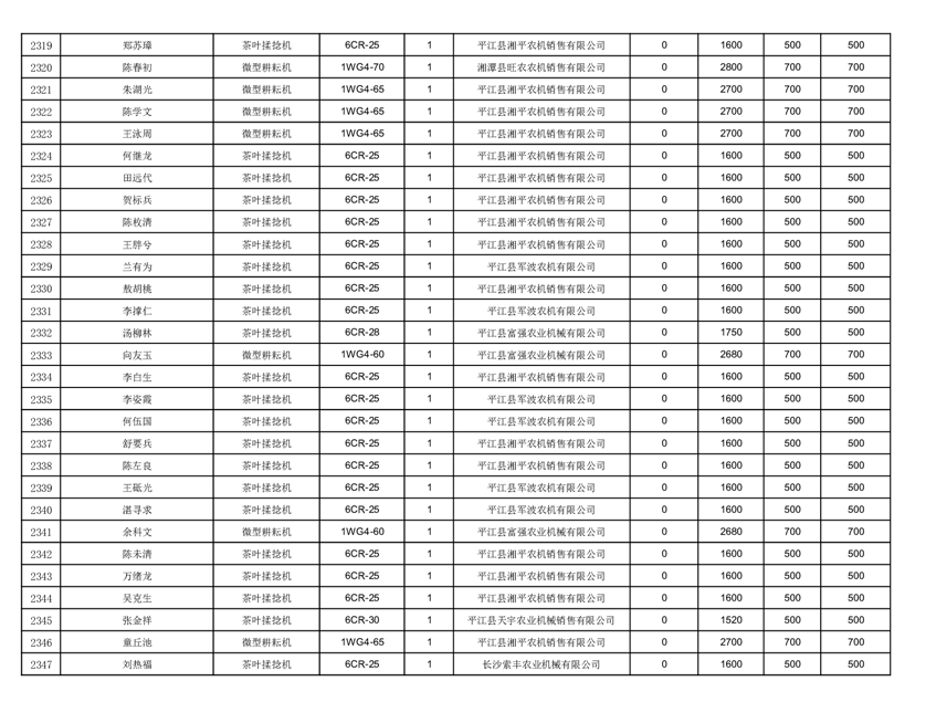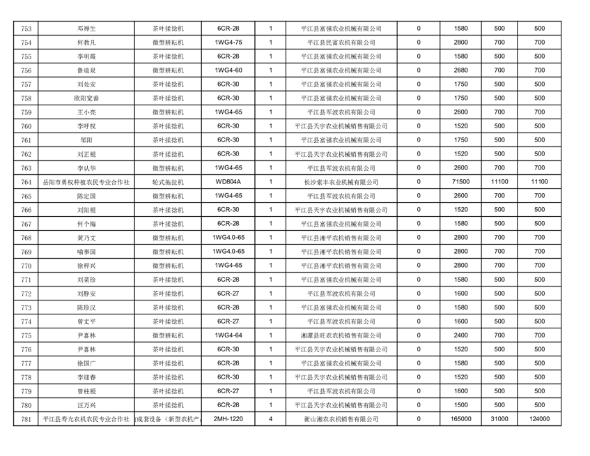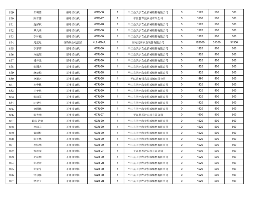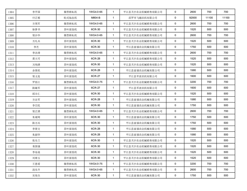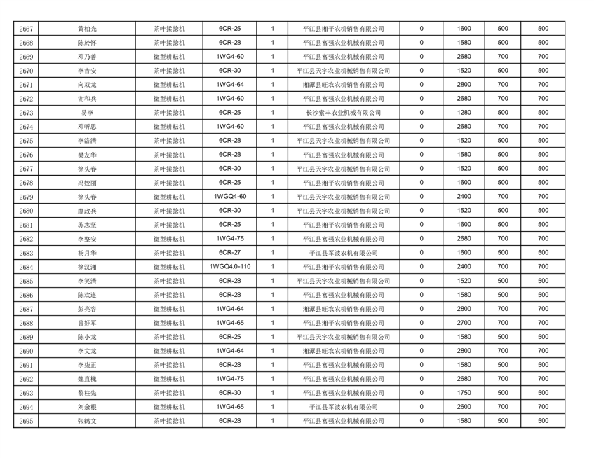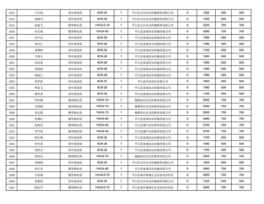 2022年平江县享受农机购置补贴的农户信息表