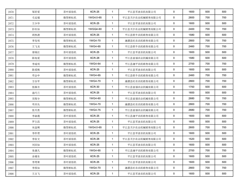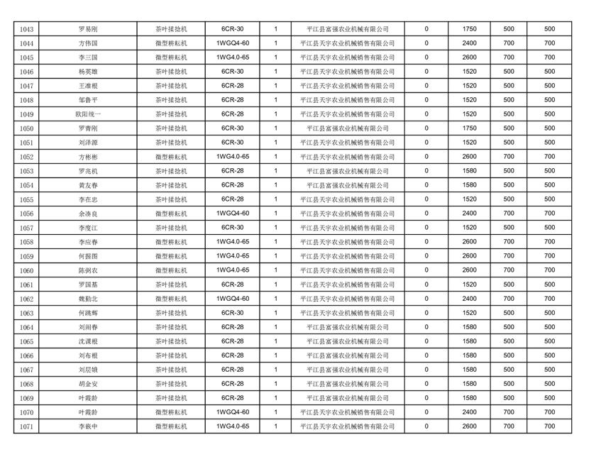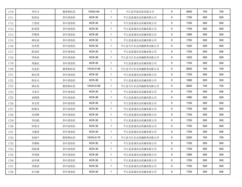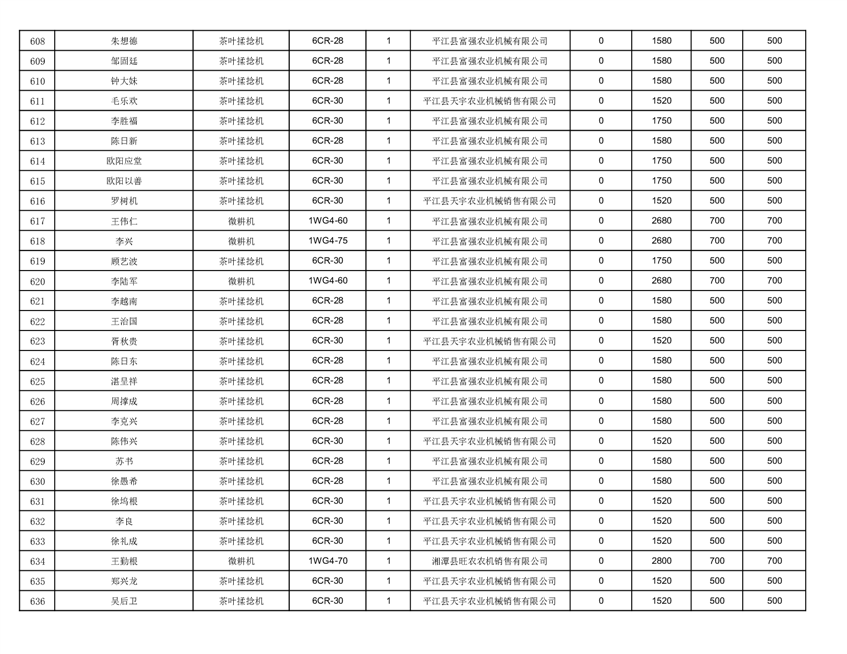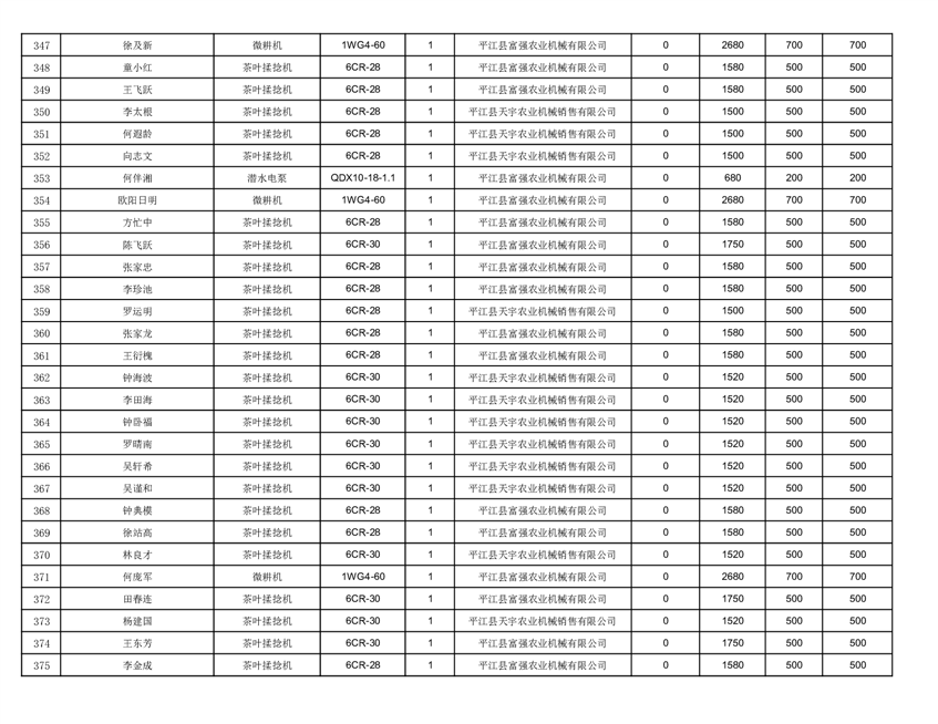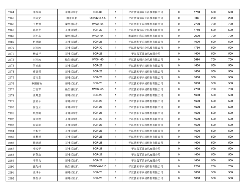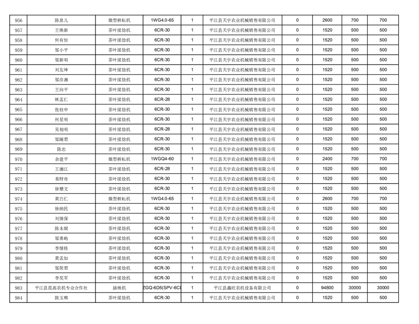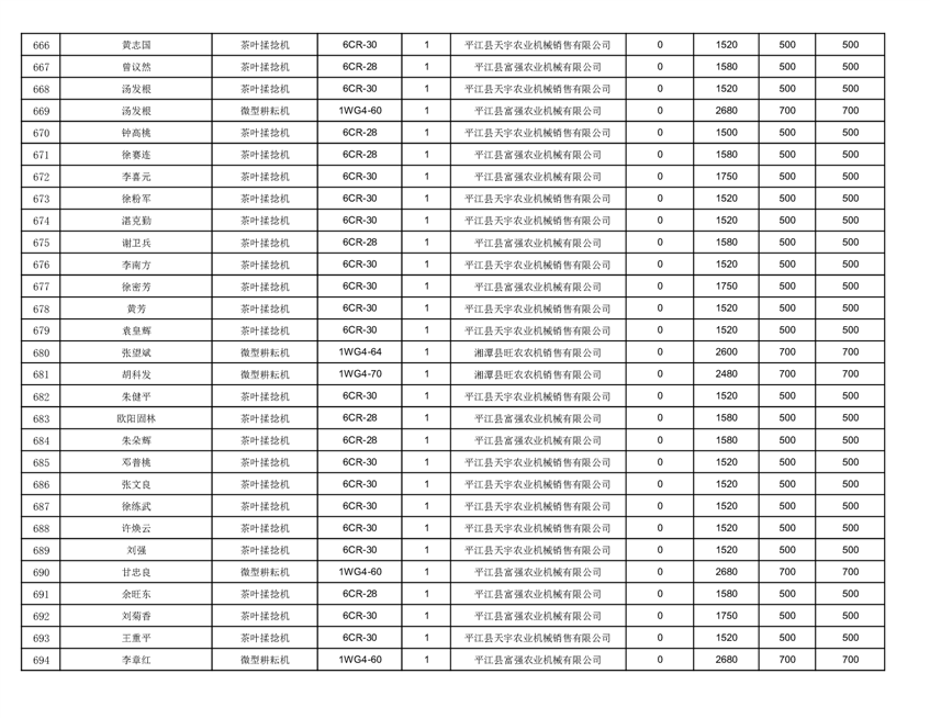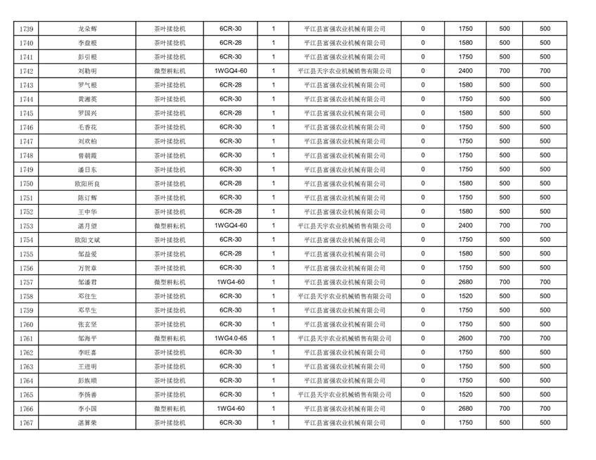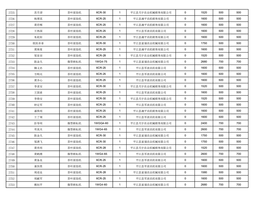 2022年平江县享受农机购置补贴的农户信息表