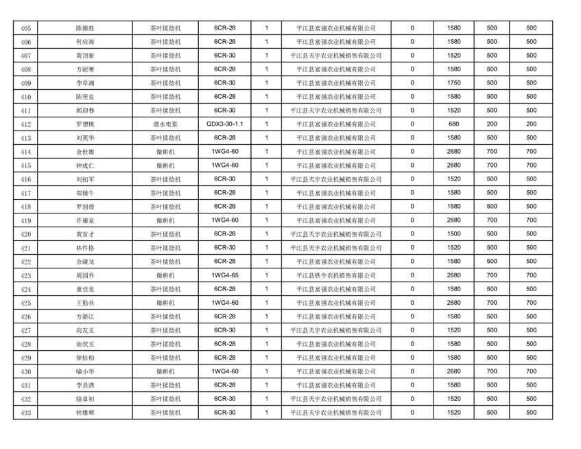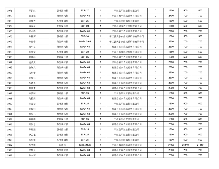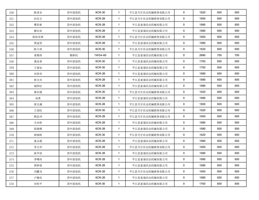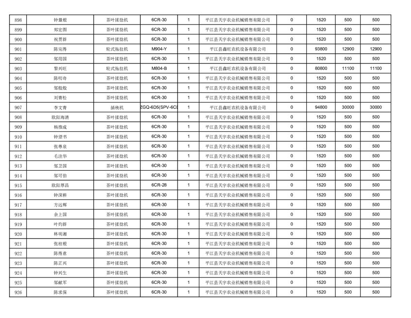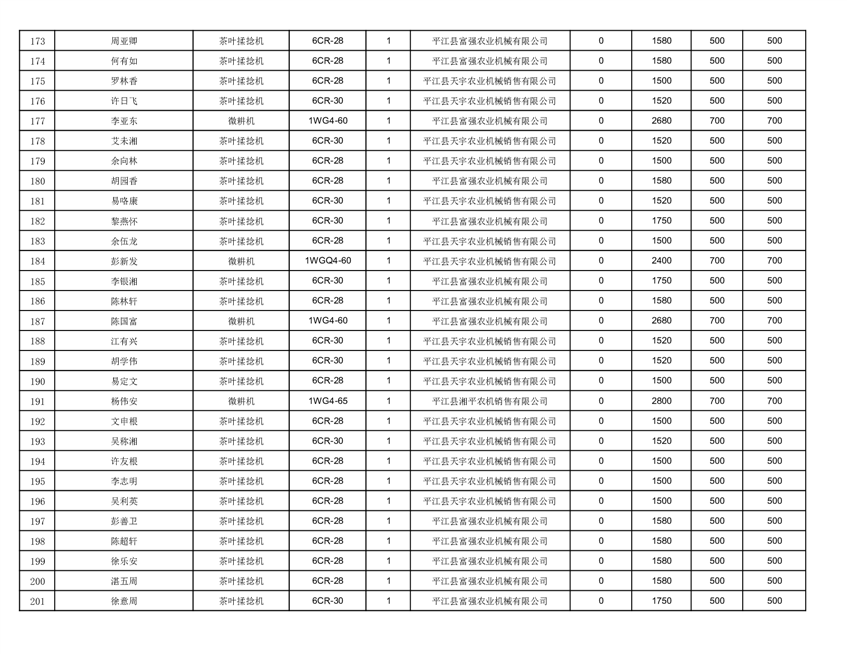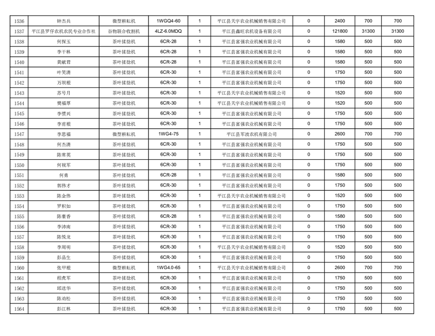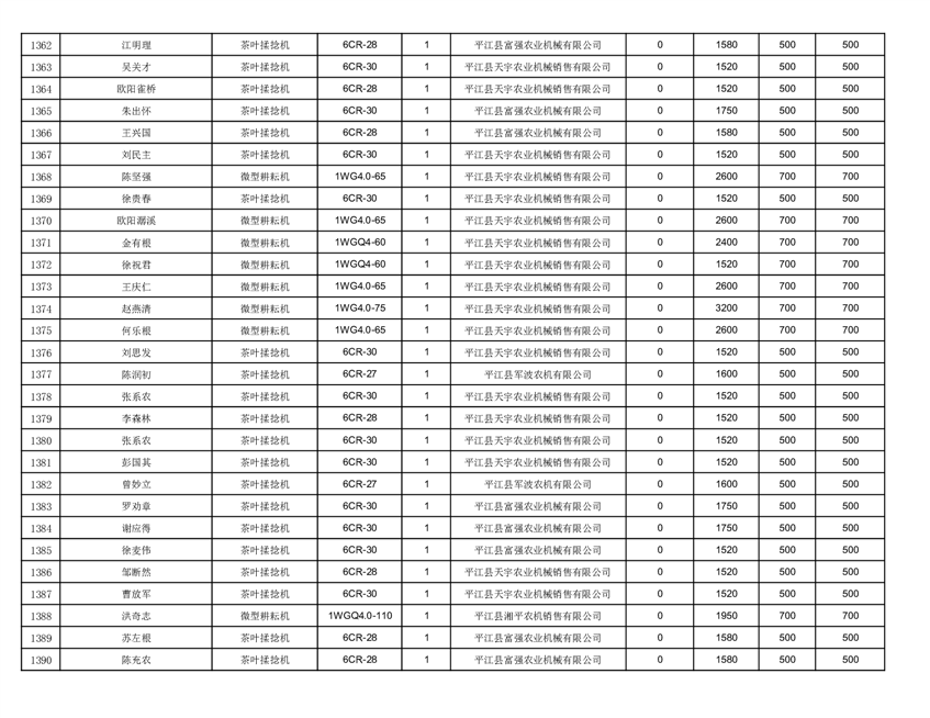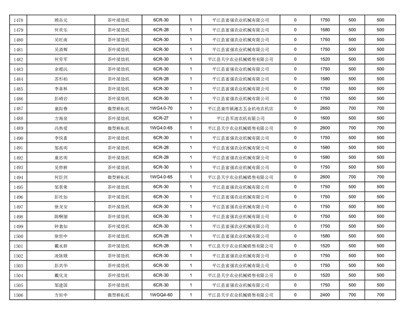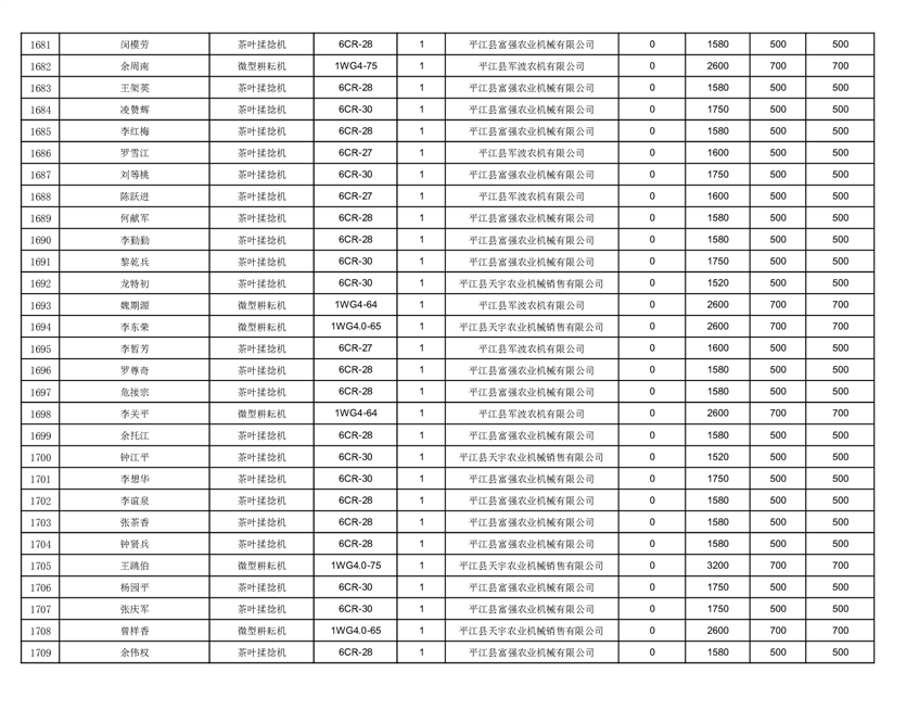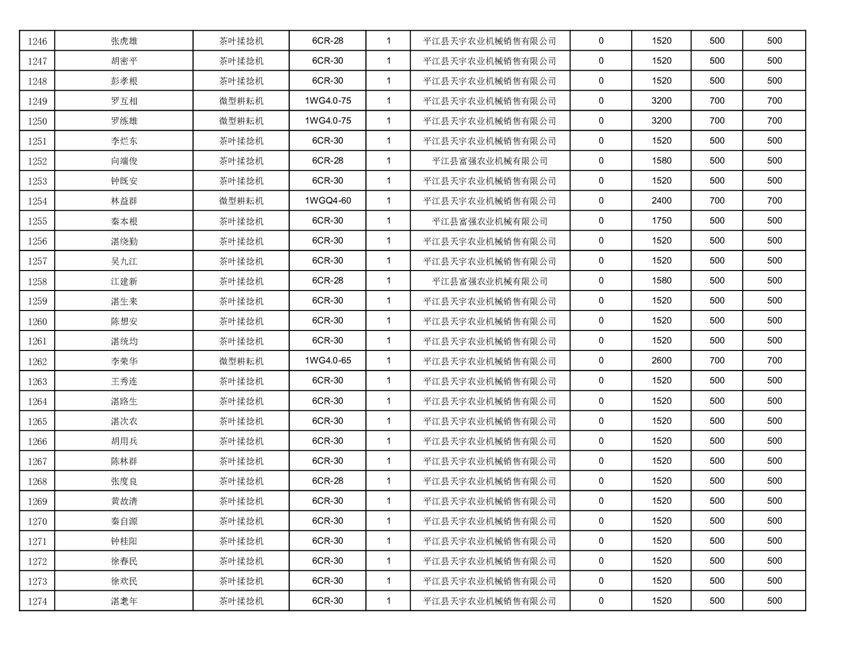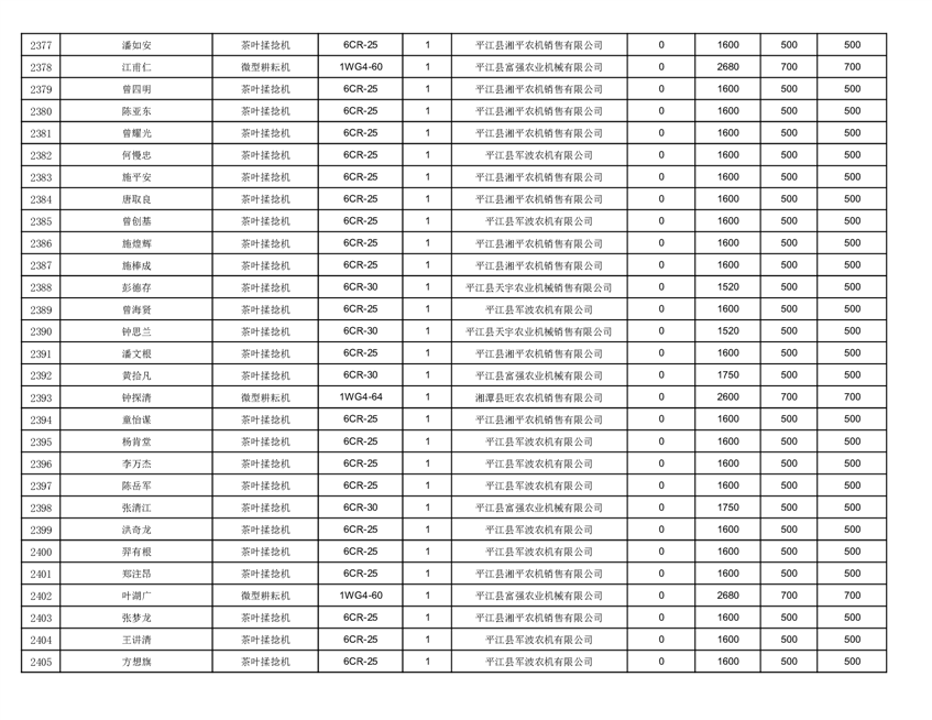 2022年平江县享受农机购置补贴的农户信息表