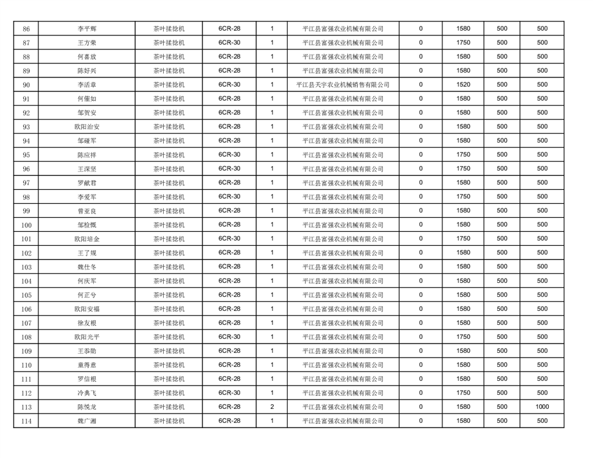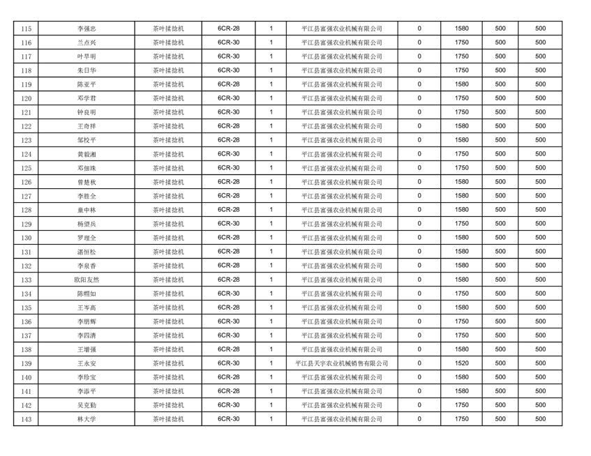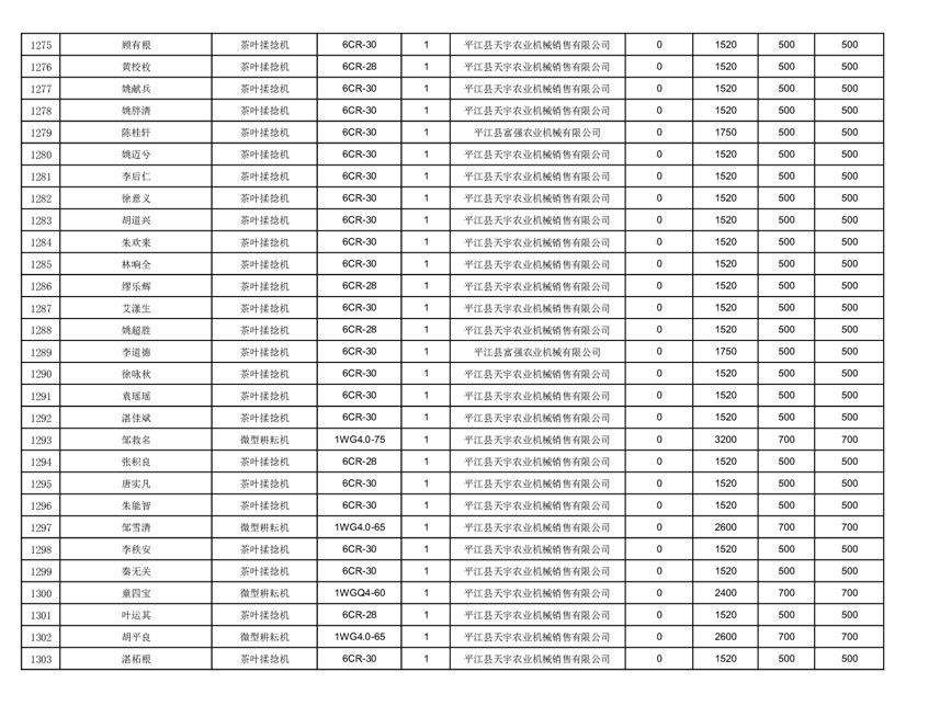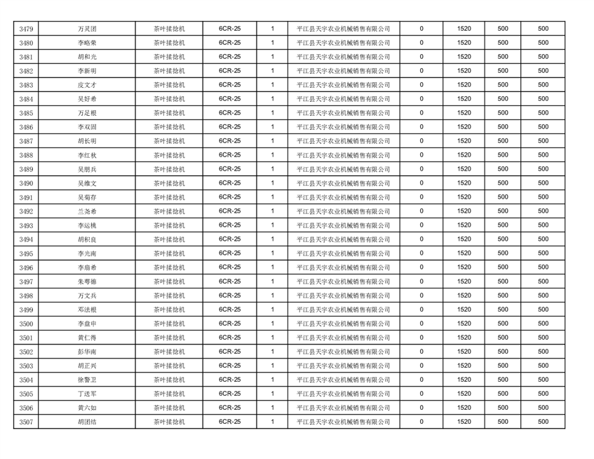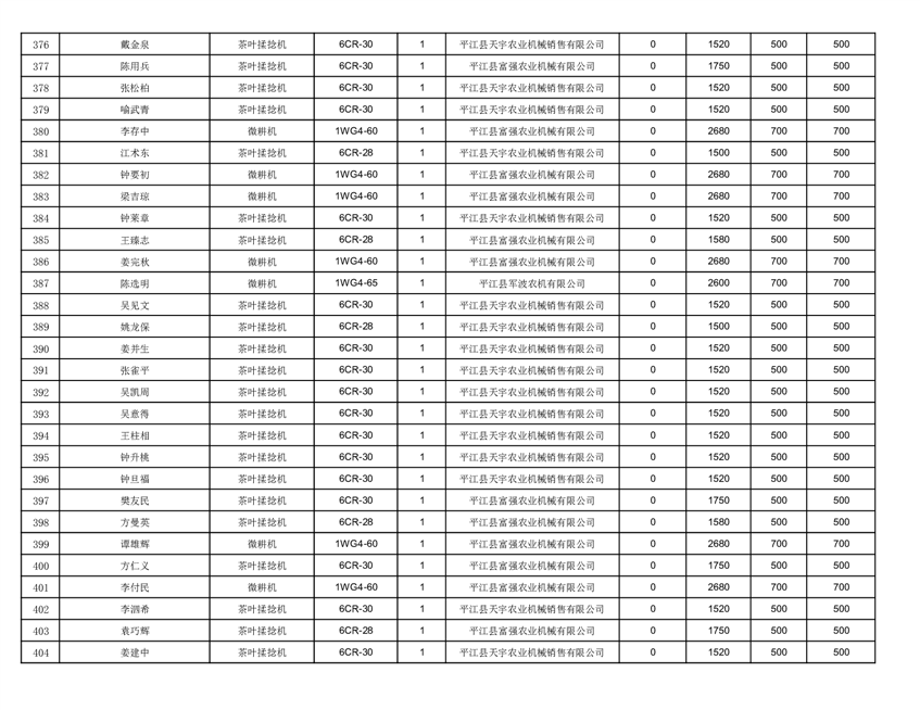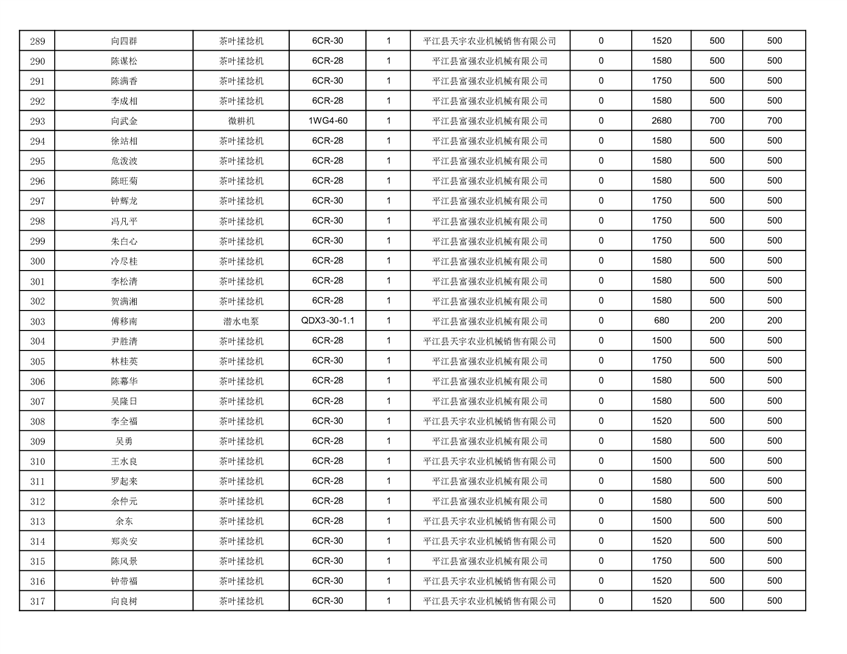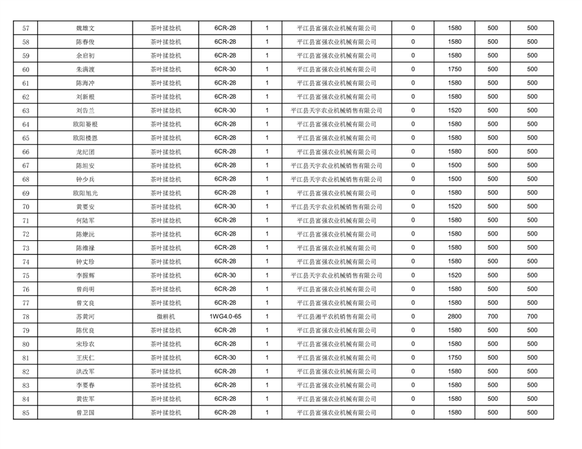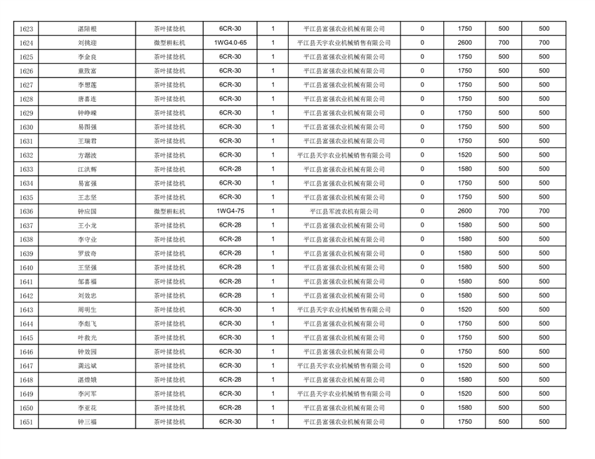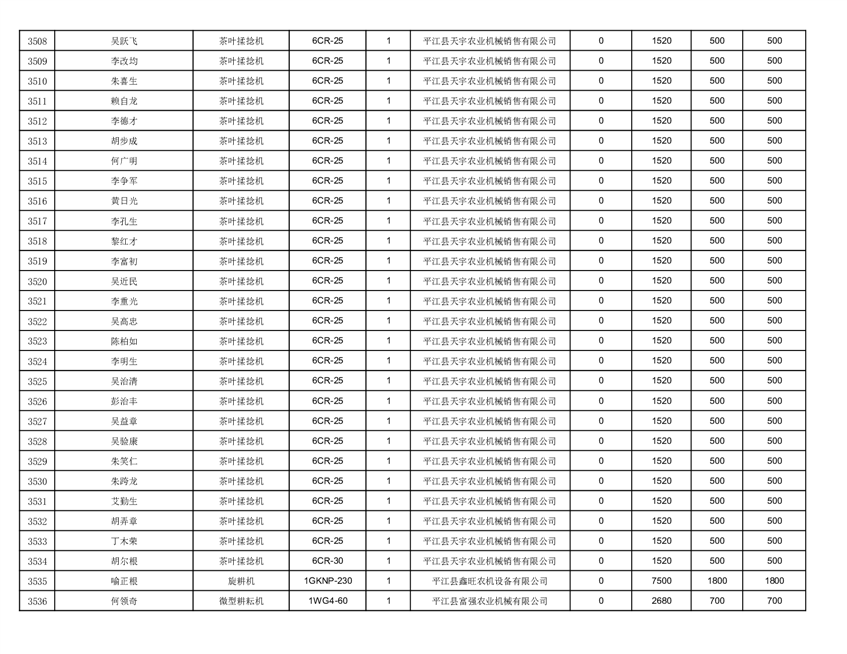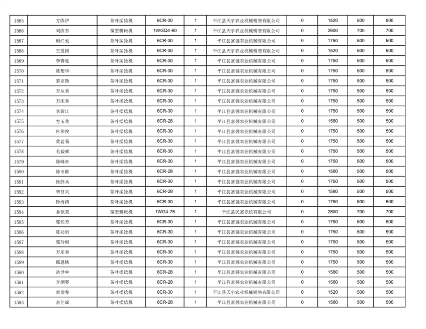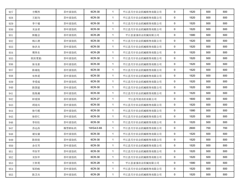2022年平江县享受农机购置补贴的农户信息表