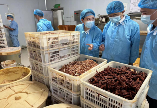 在平江县永和食品有限公司,检查组深入生产车间,仔细查看了现场卫生管理、生产流程、产品储运以及落实质量管控措施的情况,就企业加强食品安全管理等方面提出了指导性意见。李俊杰指出,食品安全问题是关系千家万户的民生大工程,食品生产经营企业要切实履行食品安全主体责任,以对社会负责、对人民负责的态度,造放心食品,做良心企业;市场监管部门要强化使命担当,压实责任举措,持续强化日常监督检查,筑牢食品安全防线,全力守护群众“舌尖上的安全”。