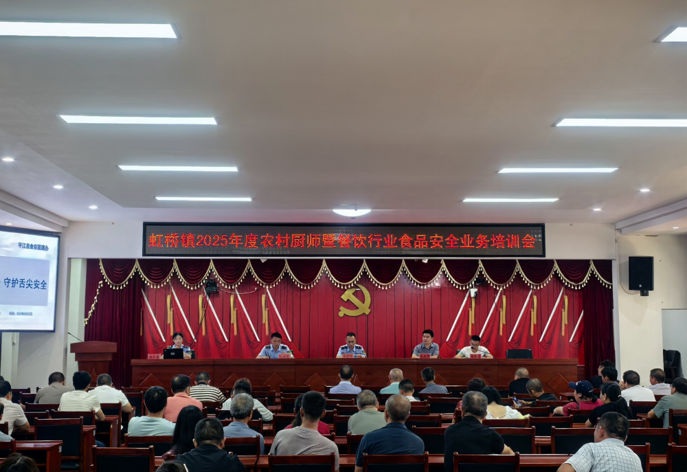 民以食为天,食以安为先。近年来,虹桥镇坚持以人民为中心的发展思想,将食品安全工作摆在重要位置,遵循“四个最严”要求,全面压实食品安全主体责任和监管责任,全力以赴守护群众“舌尖上的安全”。 抓统筹促责任落实,织密安全监管网络 今年以来,先后3次在全镇重点工作推进会上部署推进食品安全工作,持续释放“严抓严管、长管长严”的鲜明信号。通过完善“镇、村(社区)、经营主体”三级管理机制,逐级压实责任、细化任务分工,推动形成层层传导压力、环环紧扣落实的闭环责任体系,确保食品安全工作部署到位、执行到位、监督到位。 抓整治促隐患清零,筑牢全域安全防线