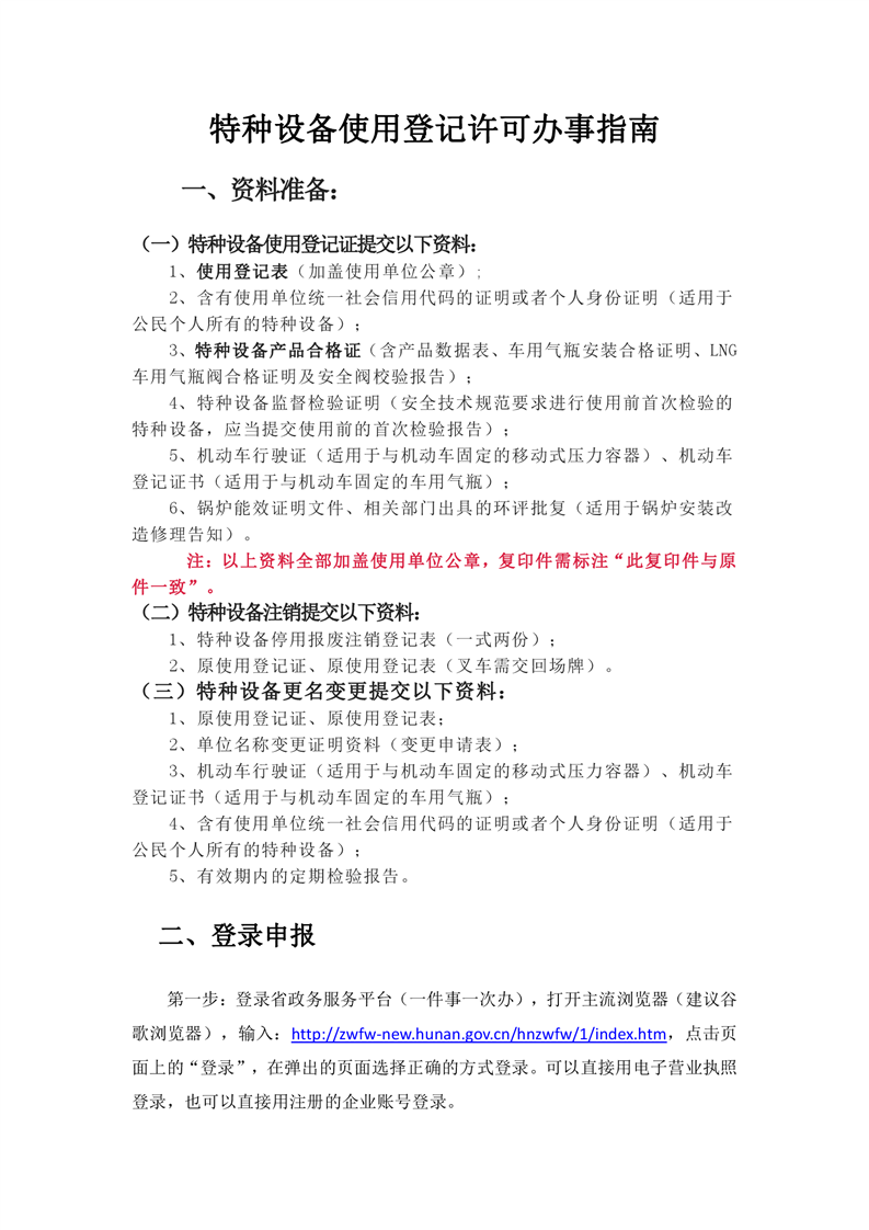 办事指南:特种设备使用登记许可(含系统操作指引)