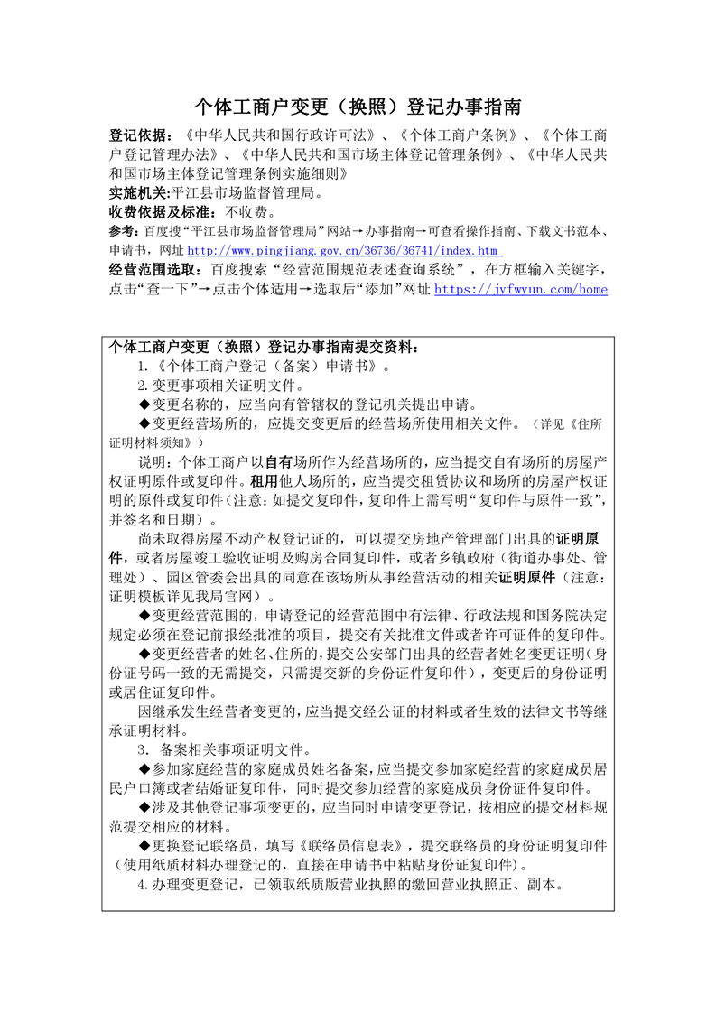 办事指南:个体工商户变更登记