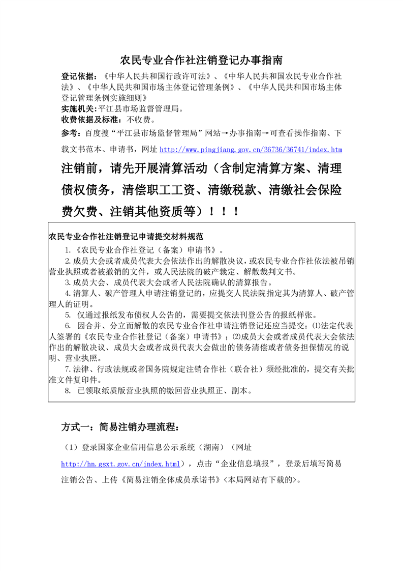 办事指南:农民专业合作社注销登记