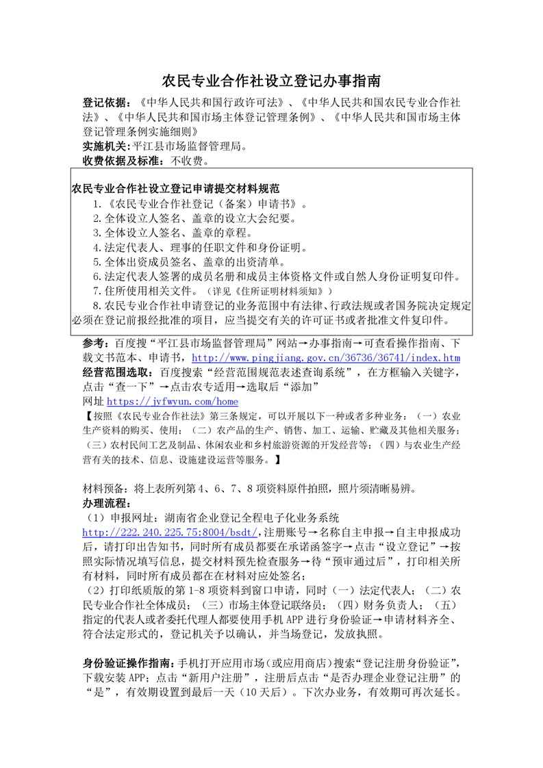 办事指南:农民专业合作社设立登记
