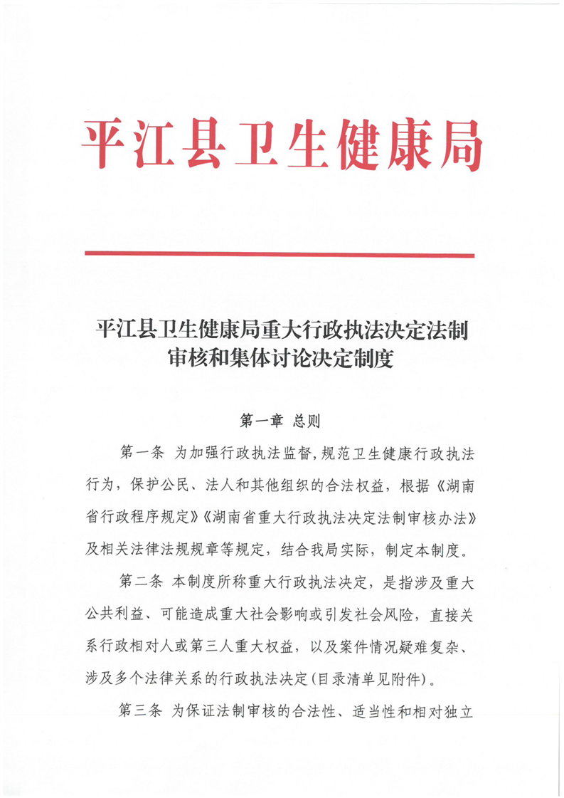 平江县卫生健康局重大行政执法决定法制审核和集体讨论决定制度