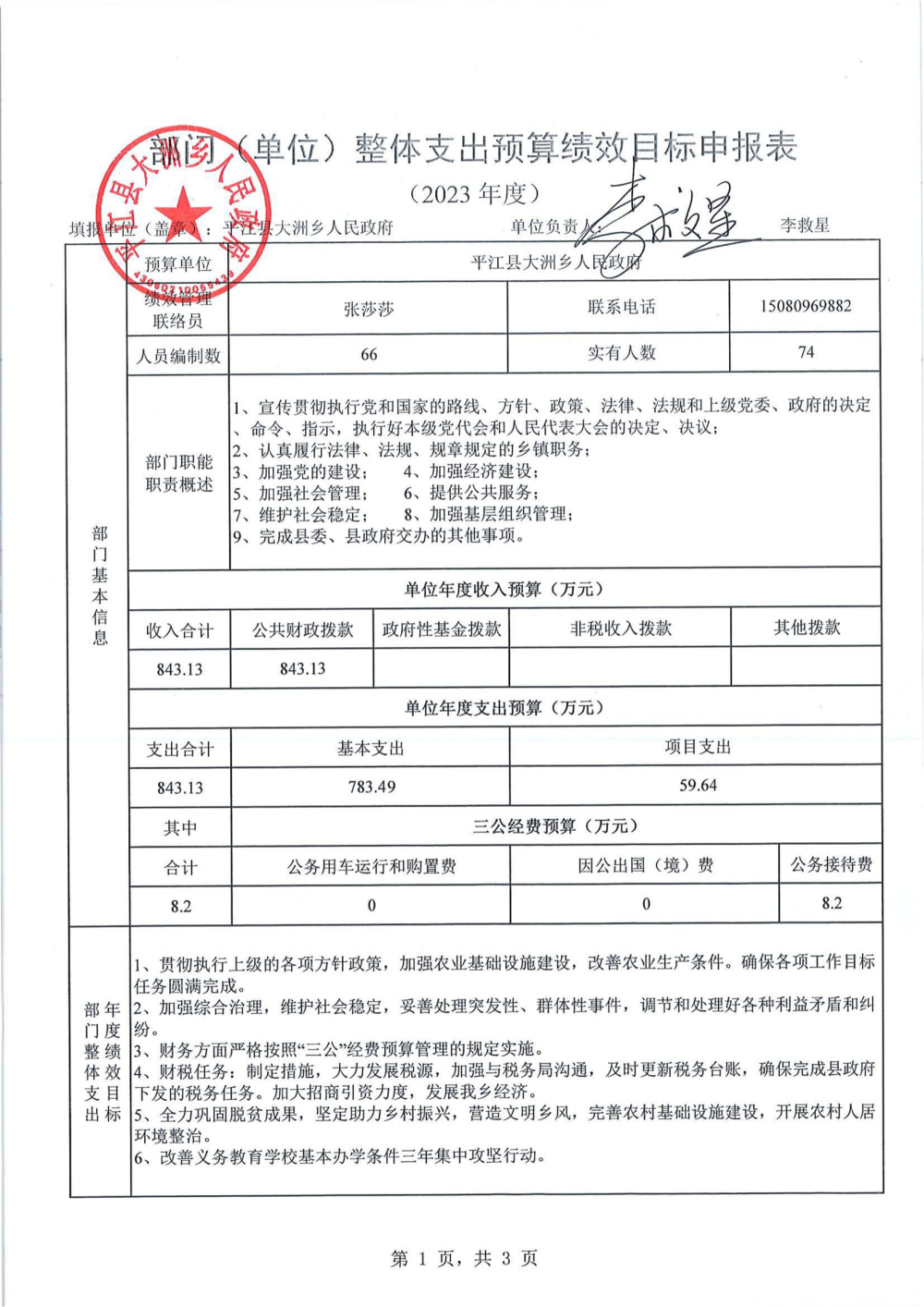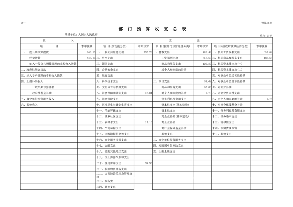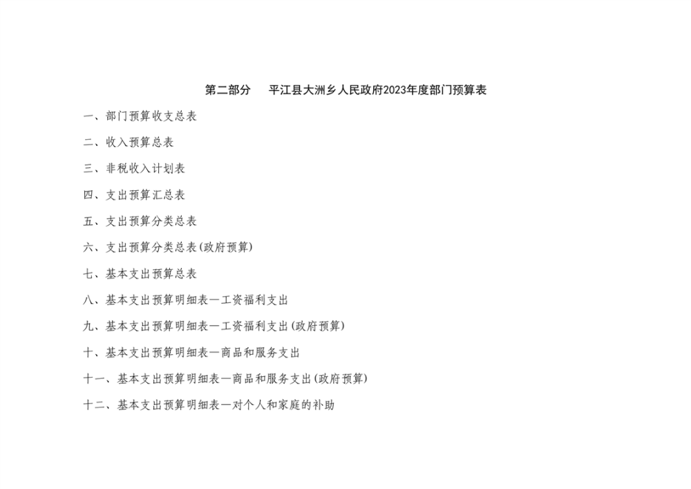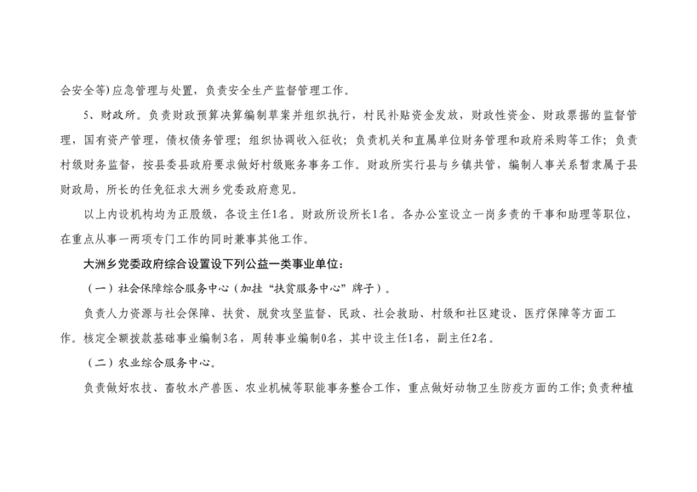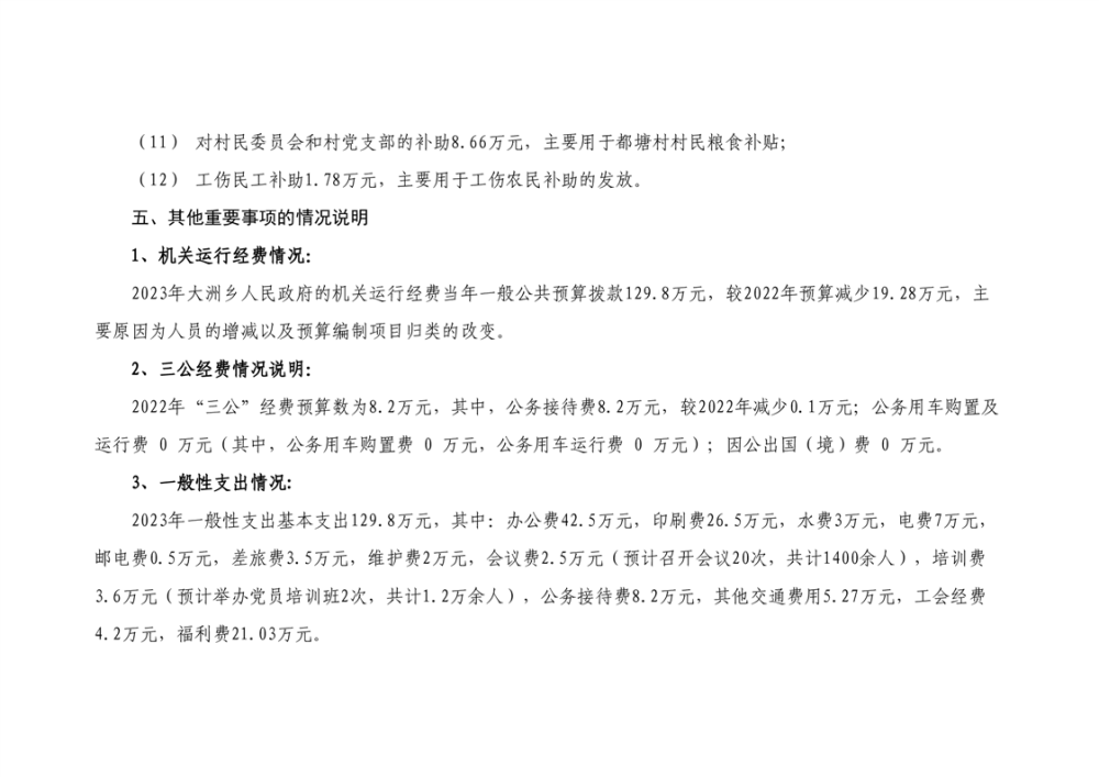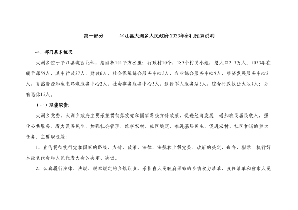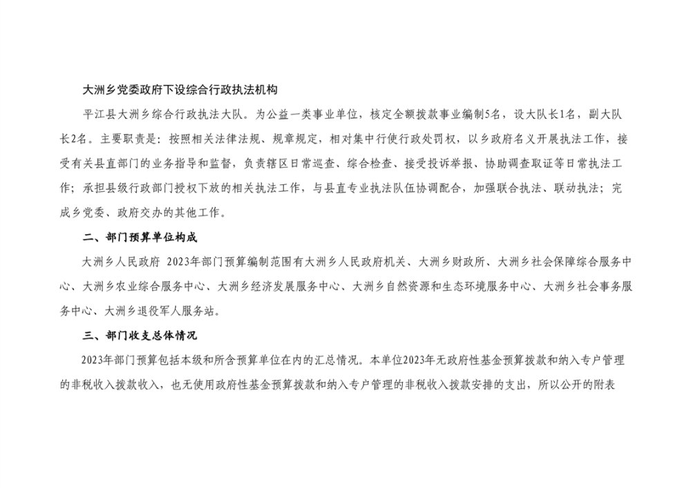 大洲乡人民政府2023年部门预算编报说明