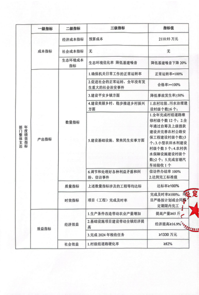 三十九、安定镇整体支出预算绩效目标申报表