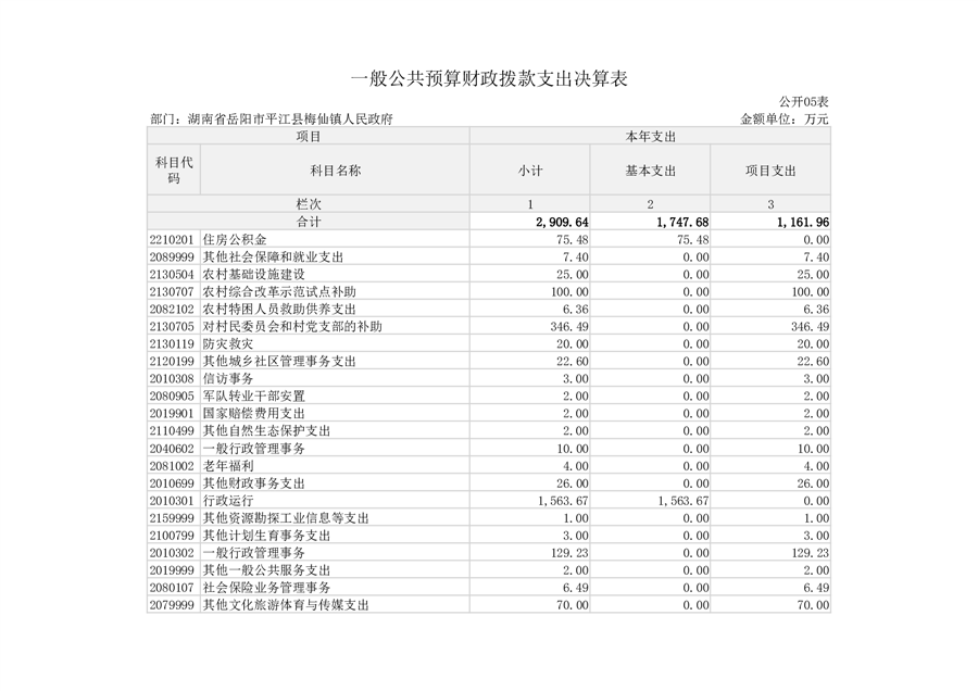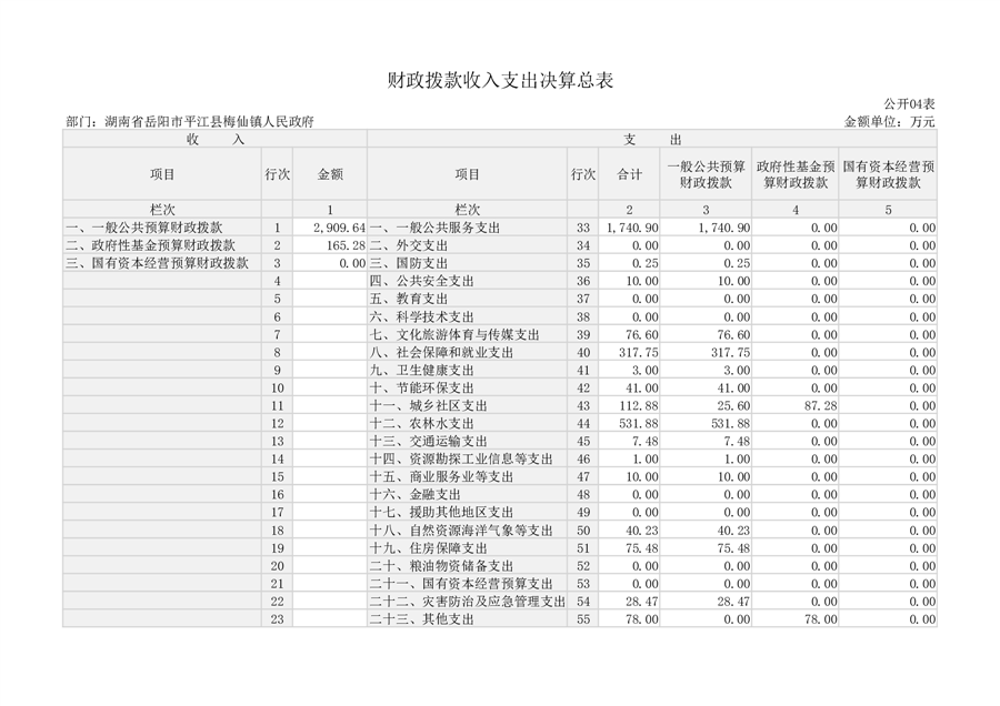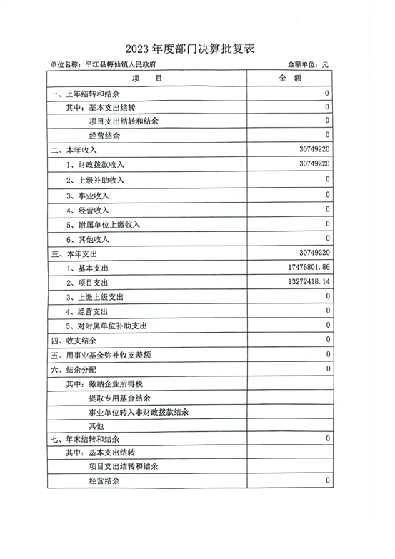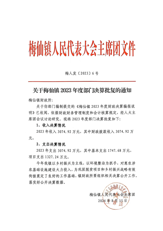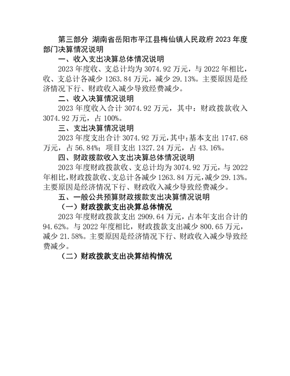 2023年度梅仙镇人民政府部门决算