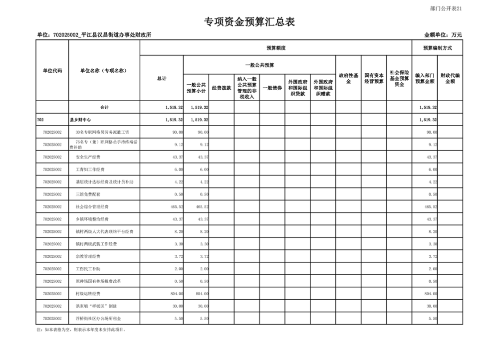 | 公开依据 | 《预算法》、《政府信息公开条例》、《财政部关于印发<地方预决算公开操作规程的通知>》、《财政部关于印发<地方政府债务信息公开办法(试行)>的通知》等法律法规和文件规定《预算法》、《政府信息公开条例》、《财政部关于印发<地方预决算公开操作规程的通知>》、《财政部关于印发<地方政府债务信息公开办法(试行)>的通知》等法律法规和文件规定 《预算法》、《政府信息公开条例》、《财政部关于印发<地方预决算公开操作规程的通知>》、《财政部关于印发<地方政府债务信息公开办法(试行)>的通知》等法律法规和文件规定 | ||