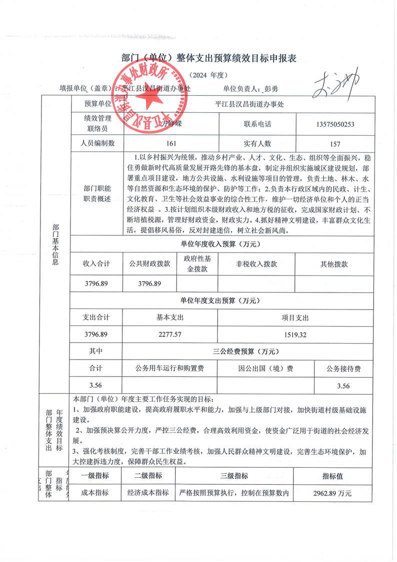 平江县汉昌街道办事处2024年部门预算公开