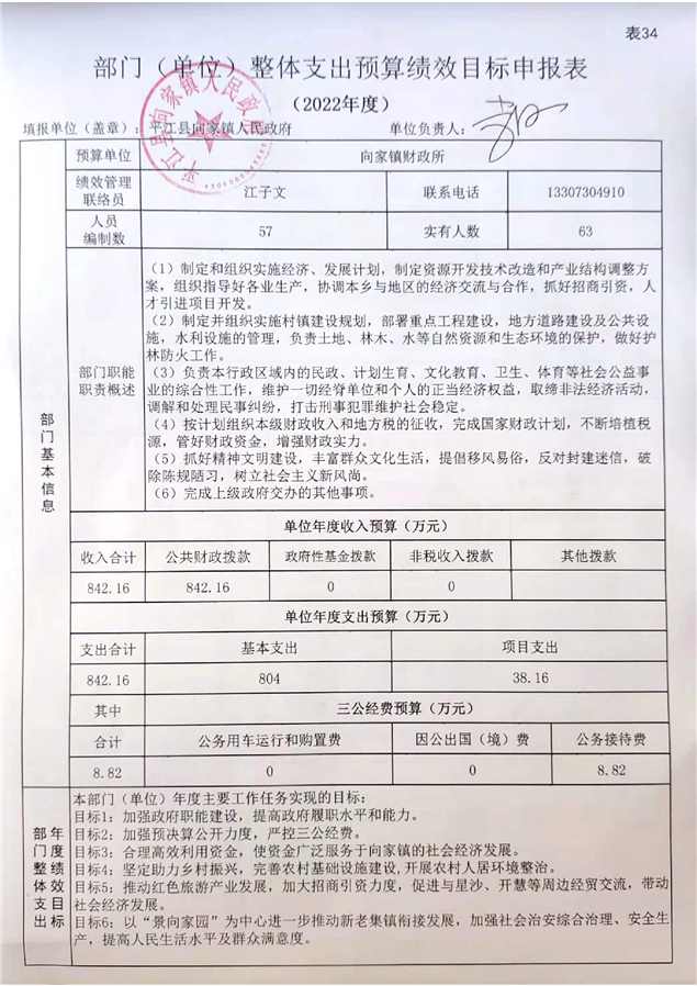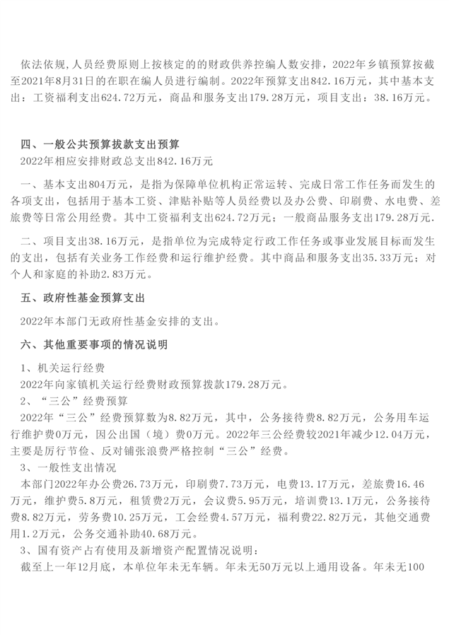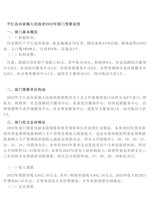 向家镇人民政府2022年度部门预算