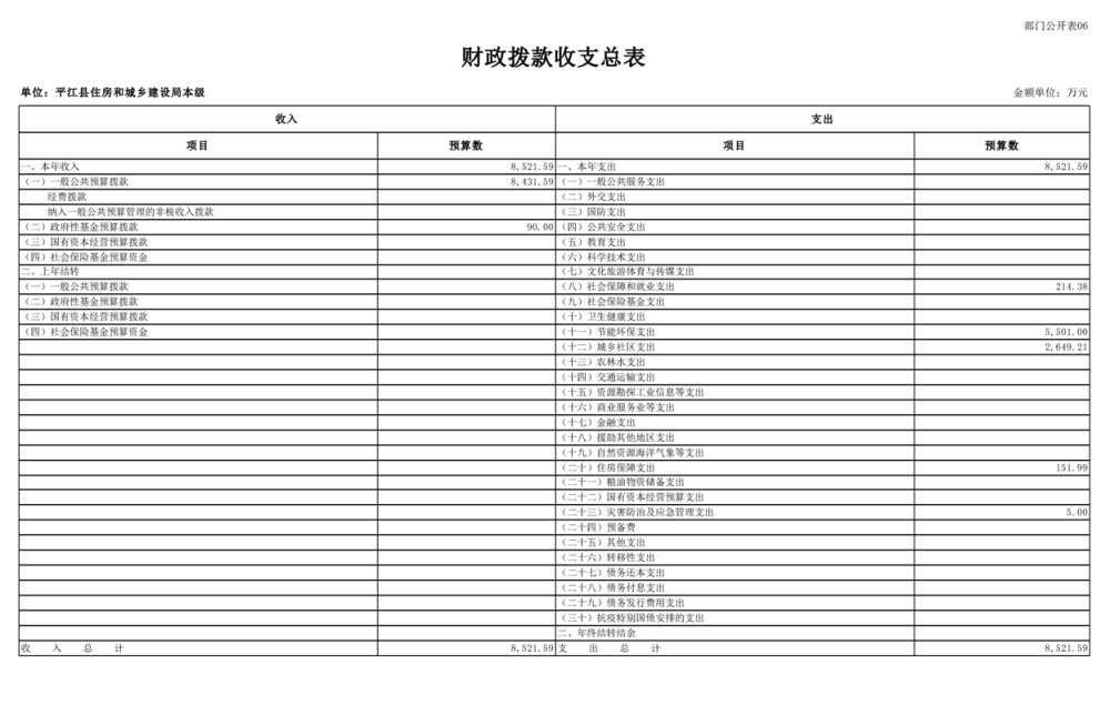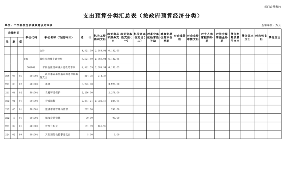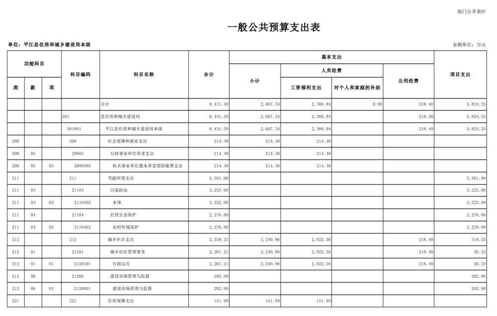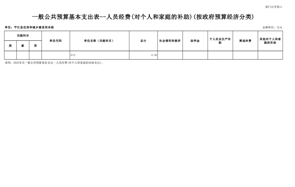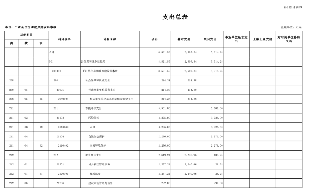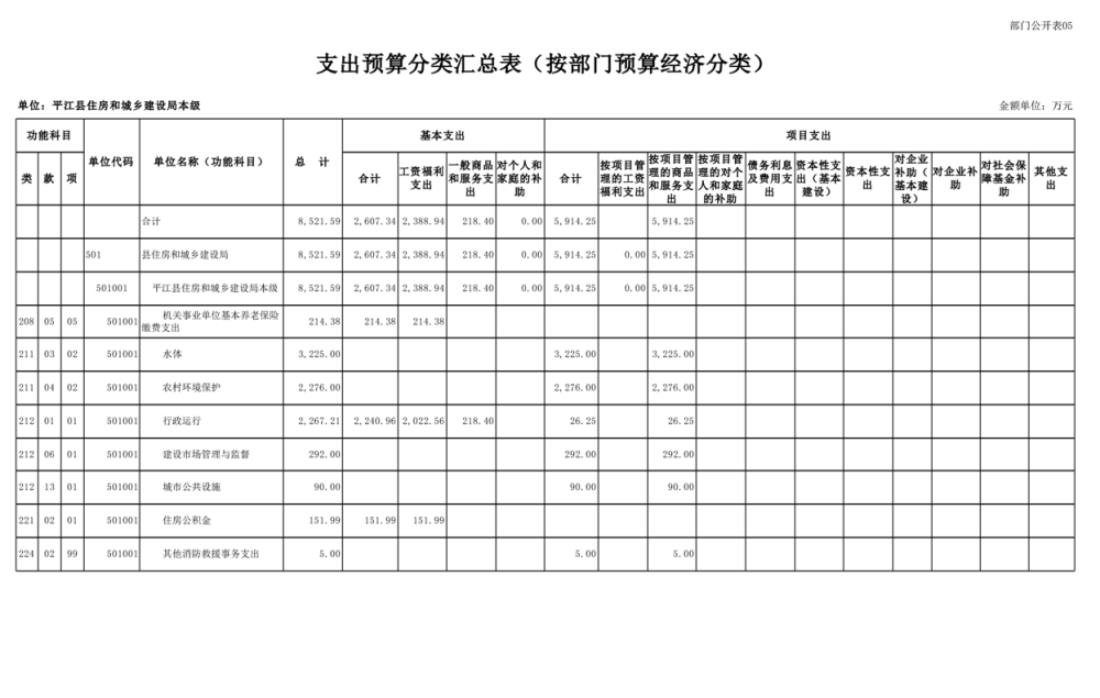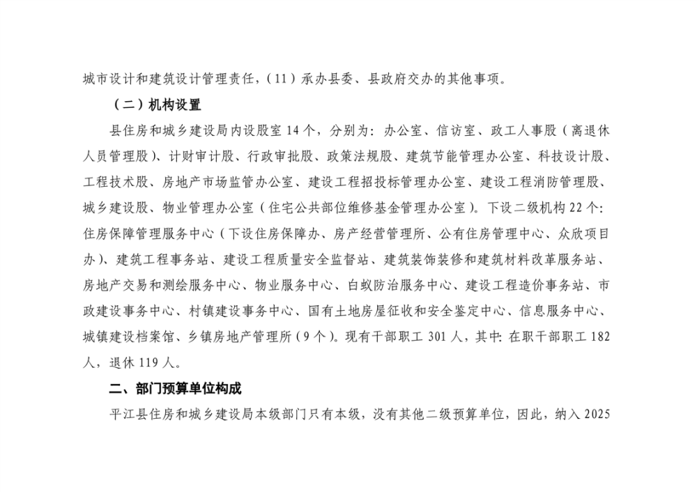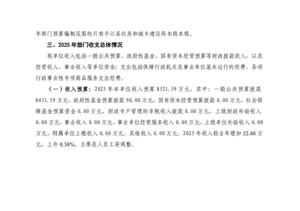 平江县住房和城乡建设局2025年部门预算