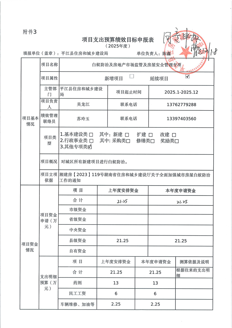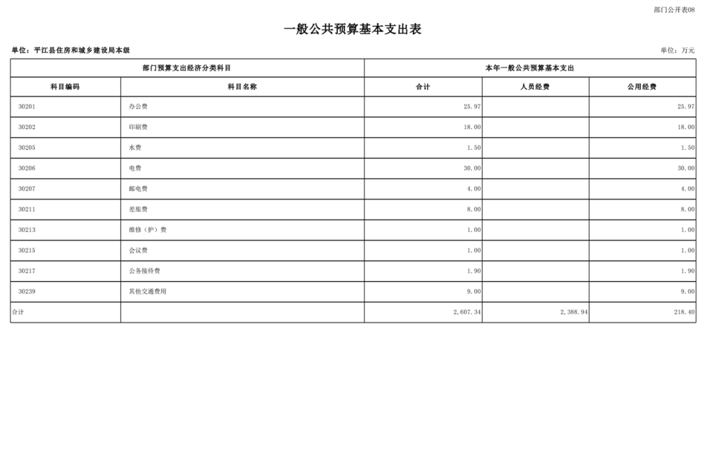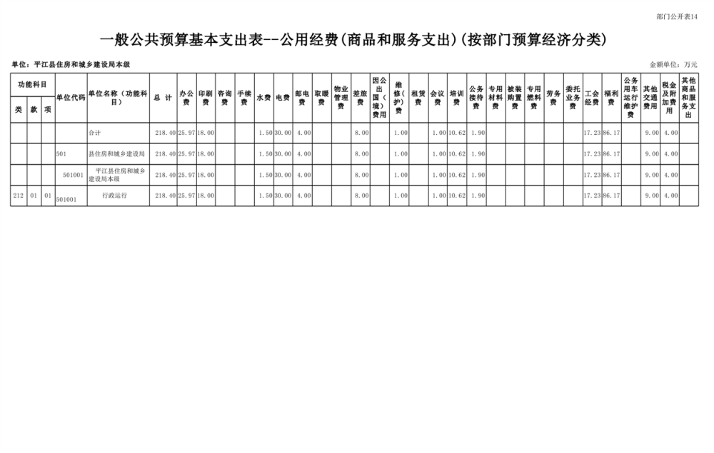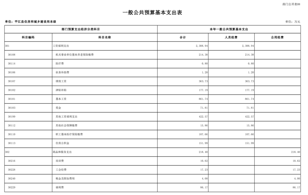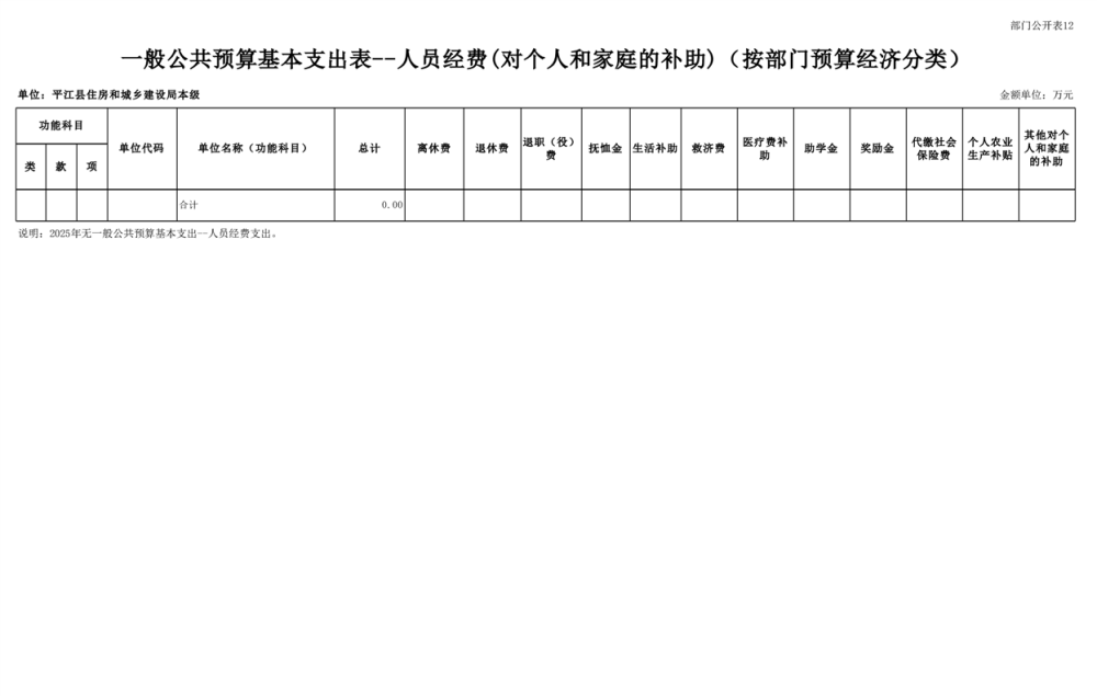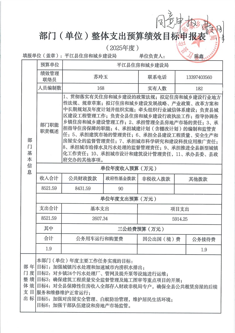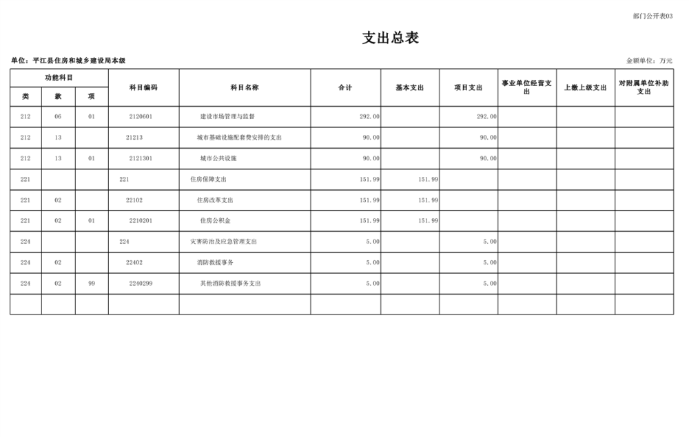 平江县住房和城乡建设局2025年部门预算