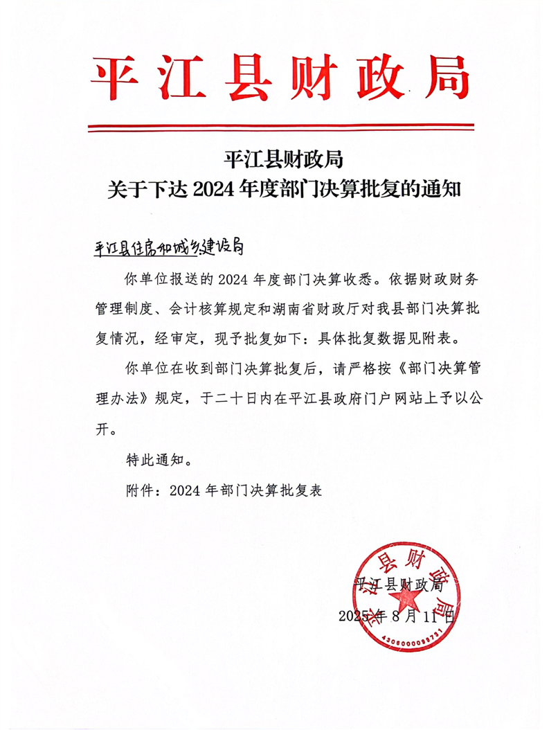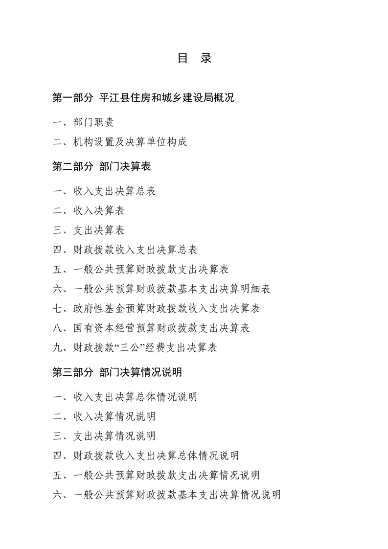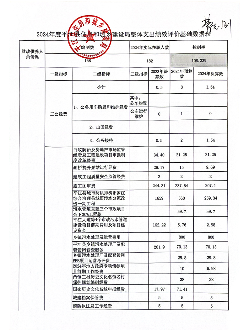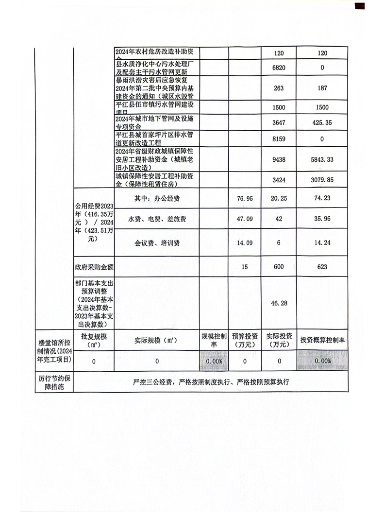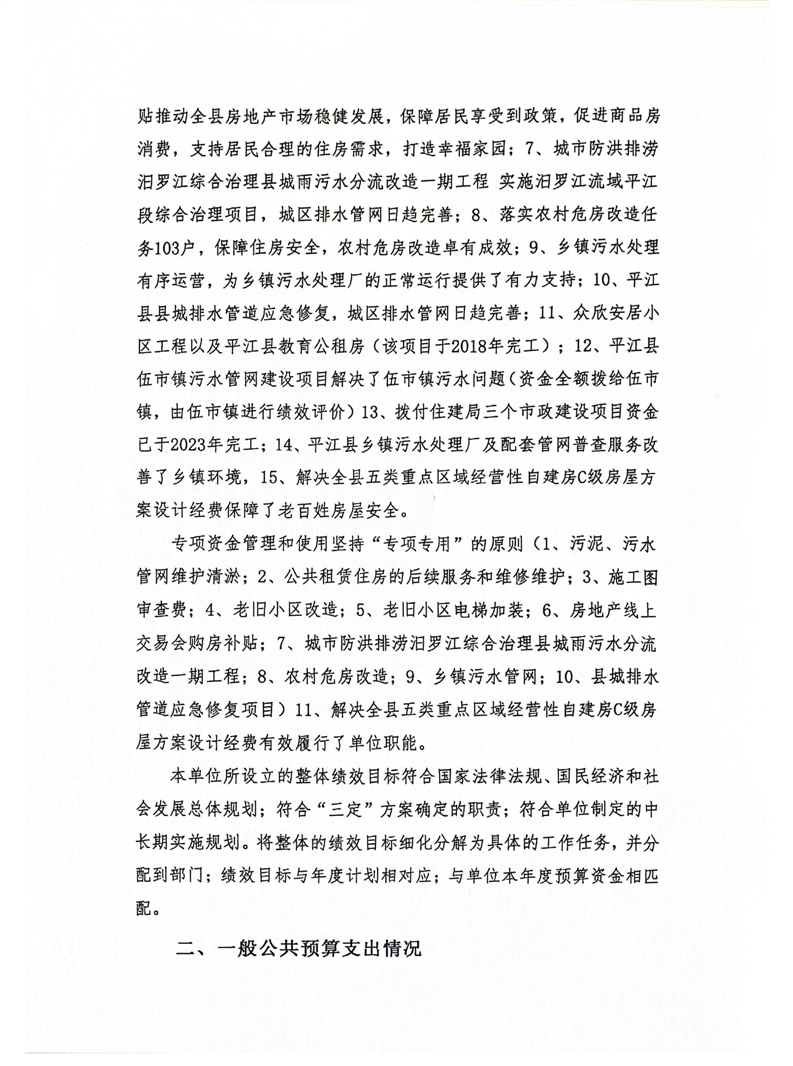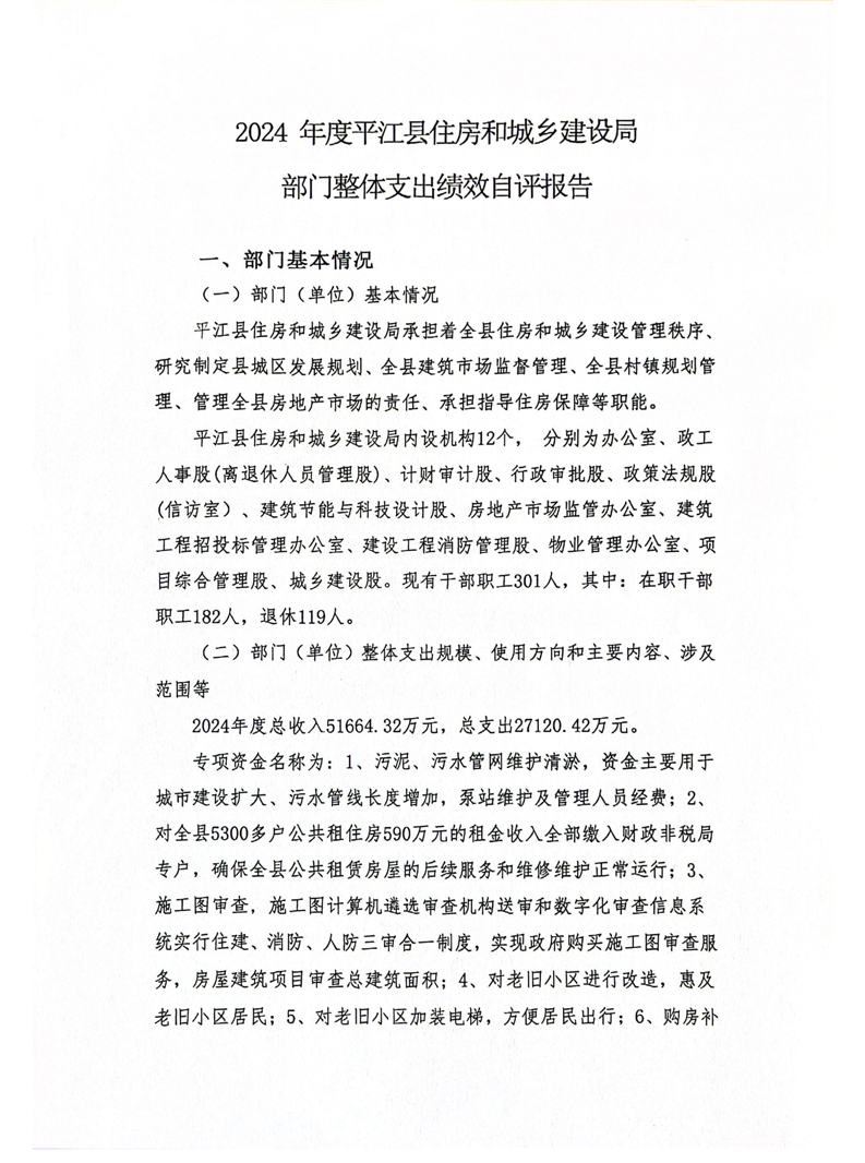 平江县住房和城乡建设局2024年度本级部门决算