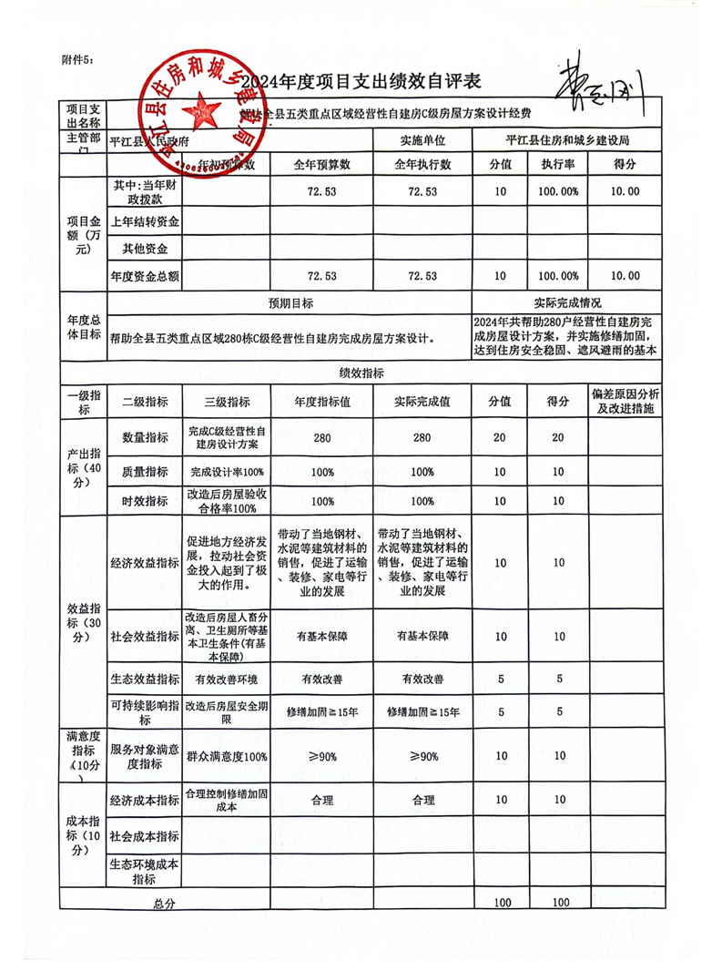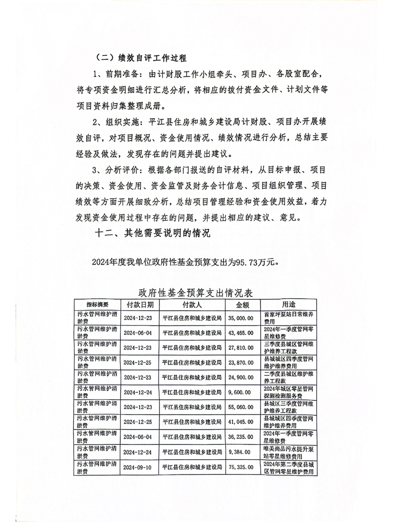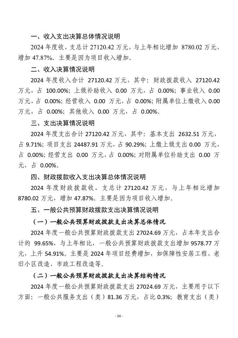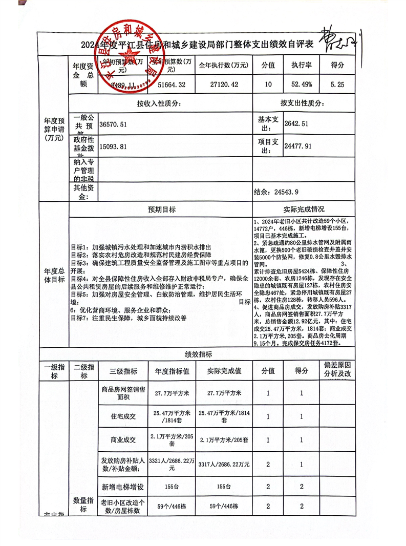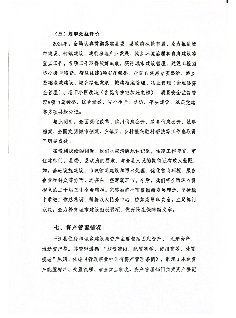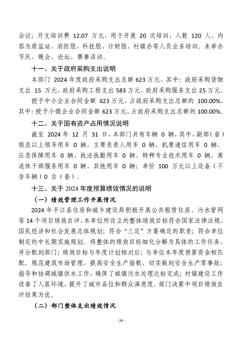 平江县住房和城乡建设局2024年度本级部门决算