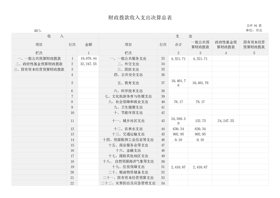 | 公开依据 | 《预算法》、《政府信息公开条例》、《财政部关于印发<地方预决算公开操作规程的通知>》等法律法规和文件规定 | ||