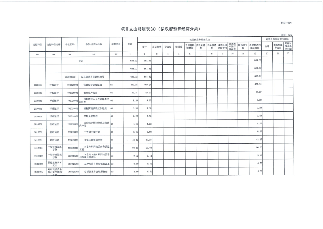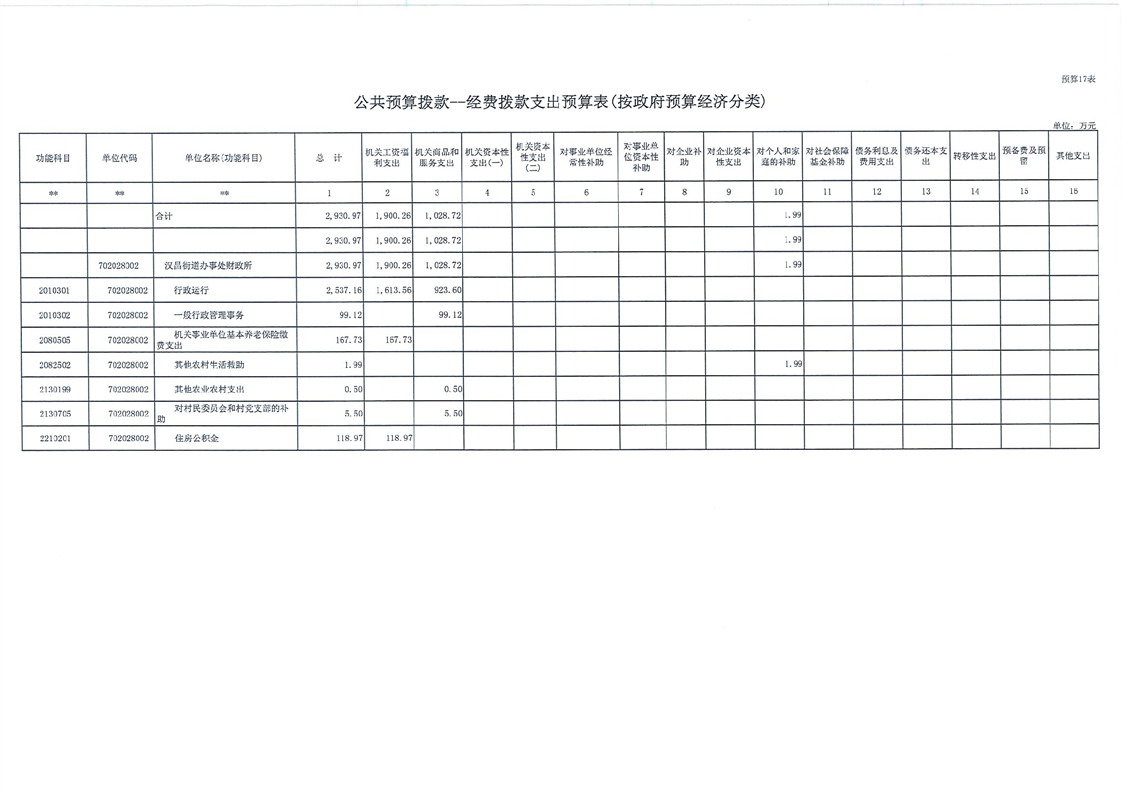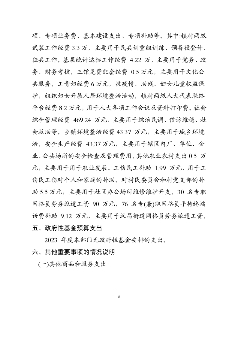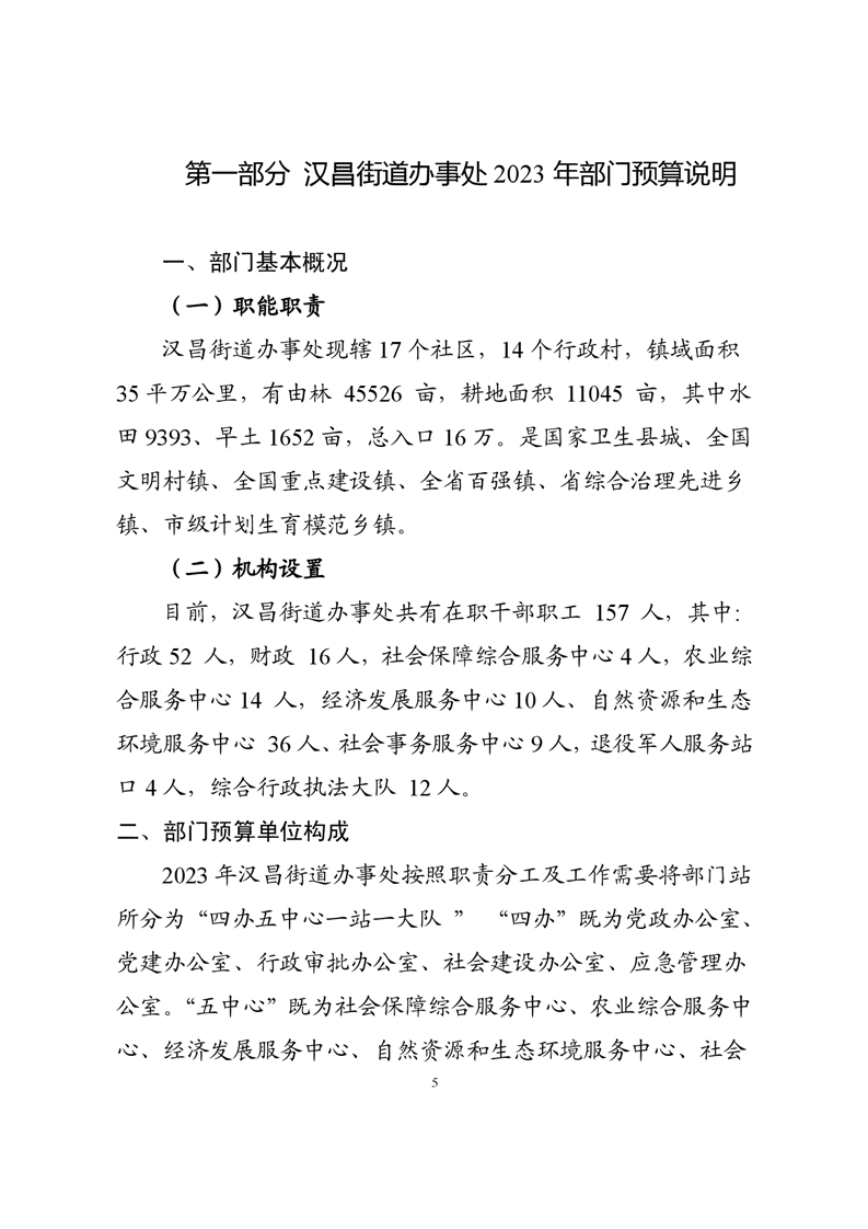 汉昌街道办事处2023年部门预算