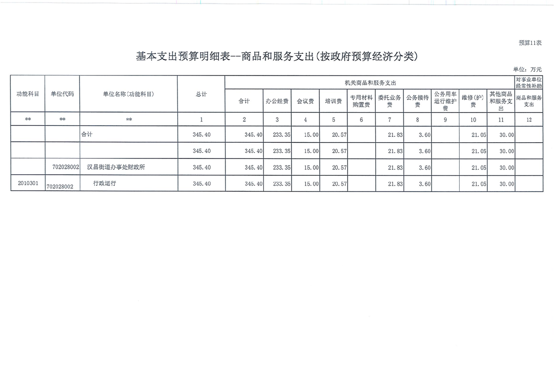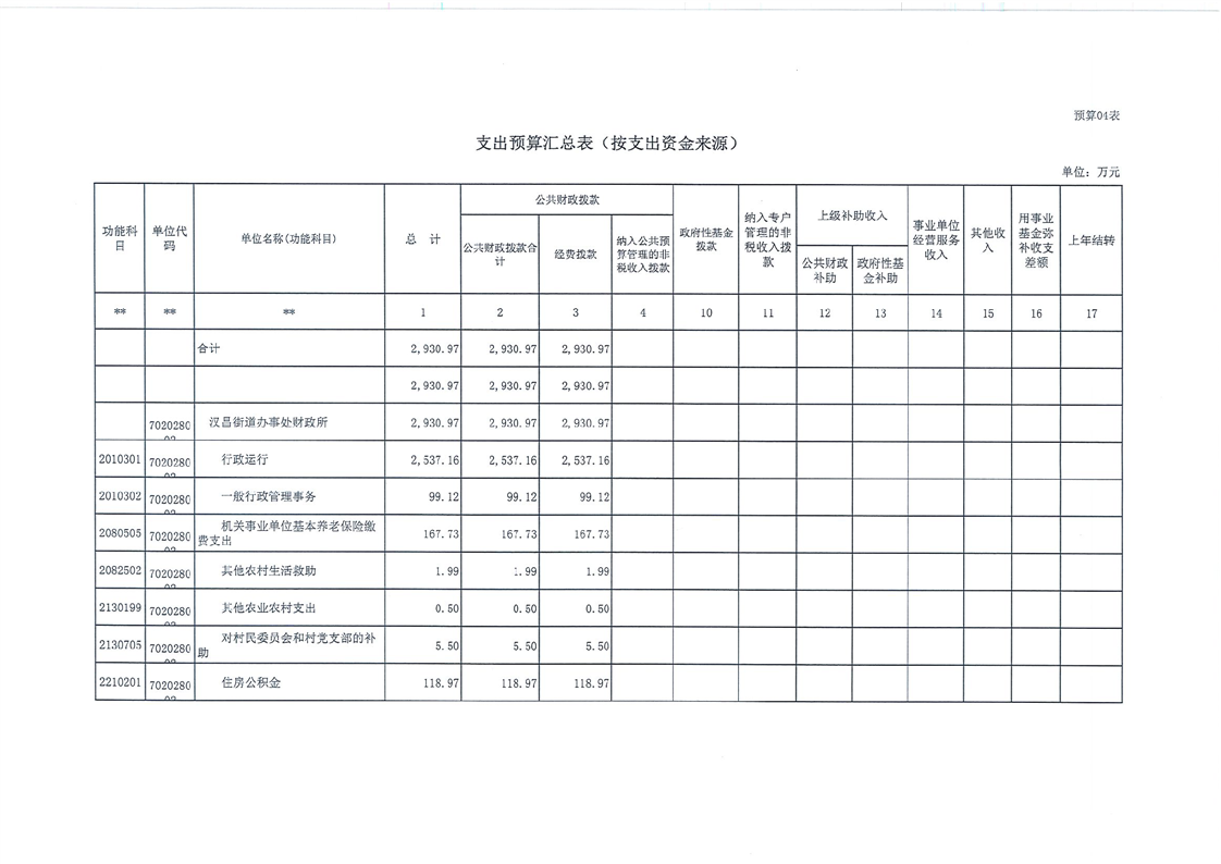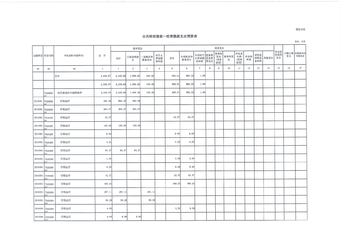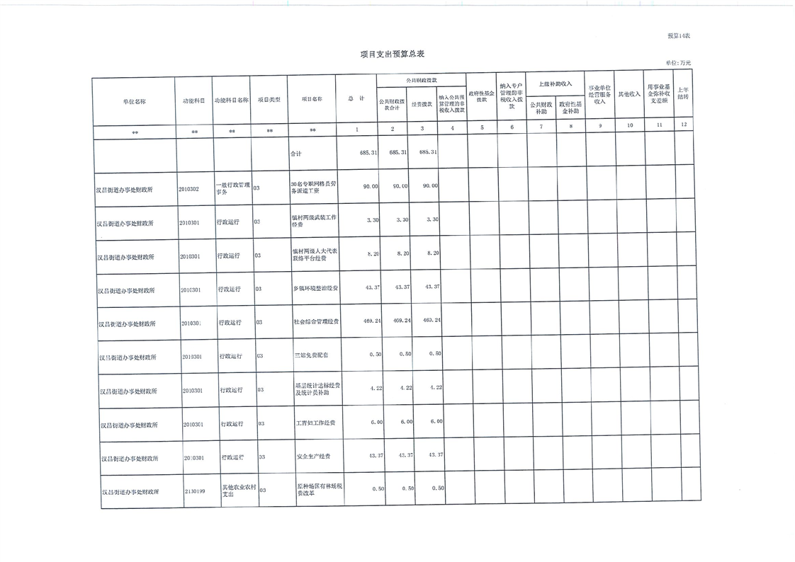 汉昌街道办事处2023年部门预算
