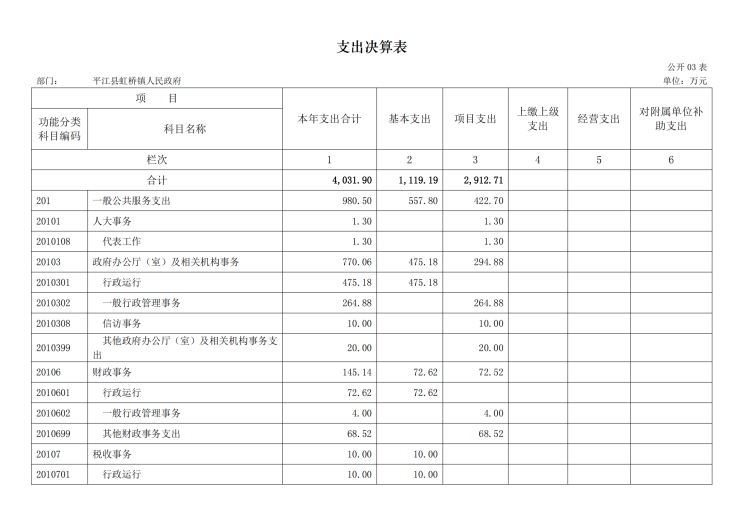 | 公开主体 | 虹桥镇财政所 | ||