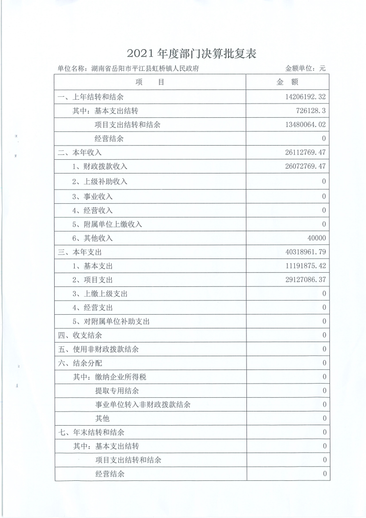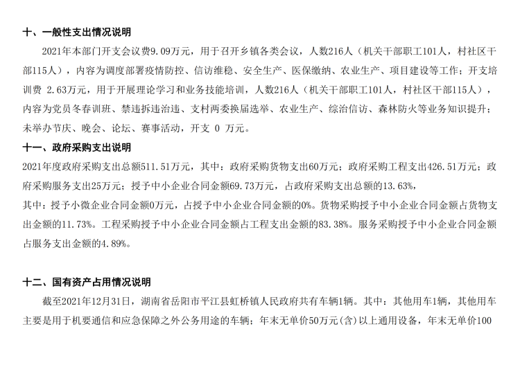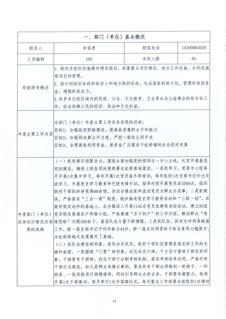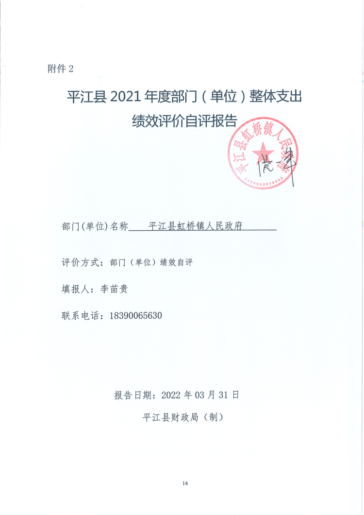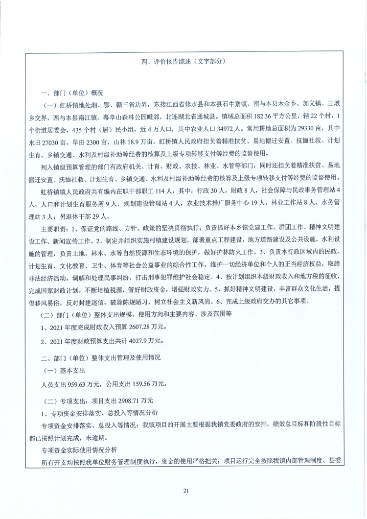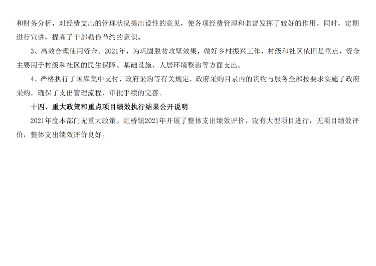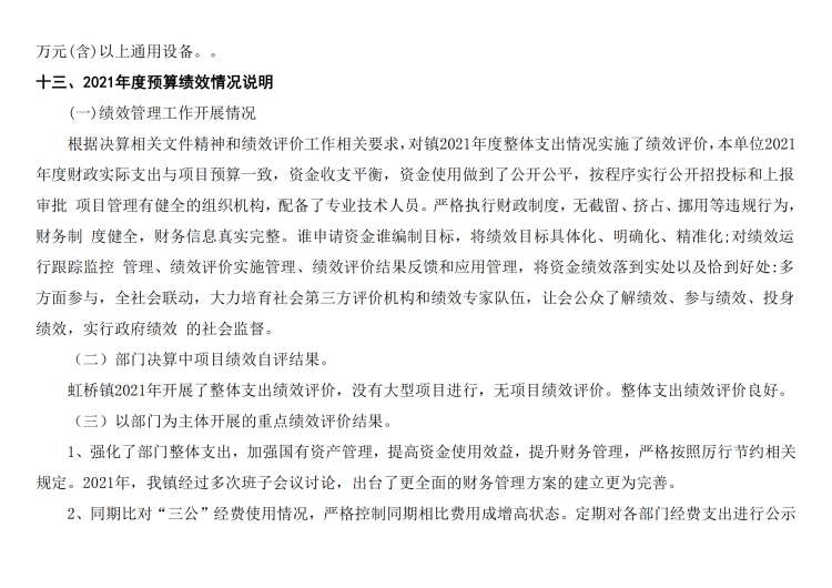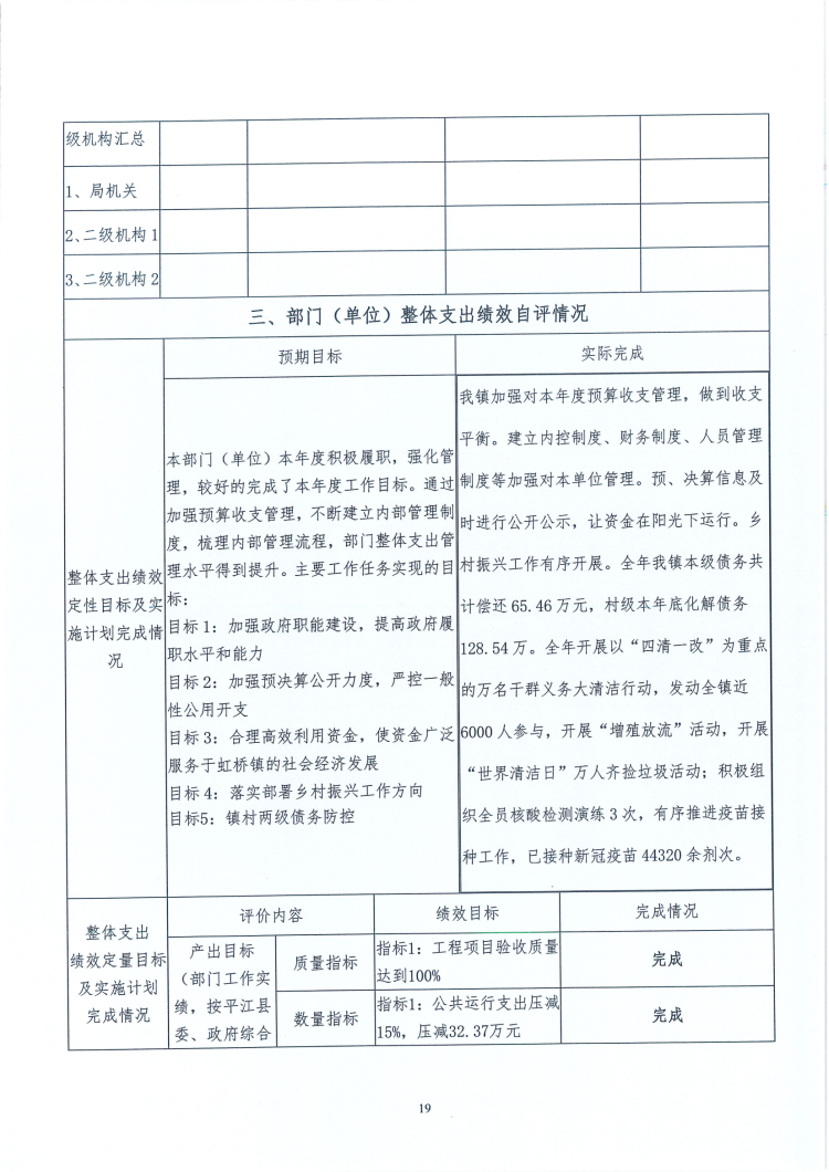 2021年度虹桥镇人民政府部门决算及整体绩效目标评价表
