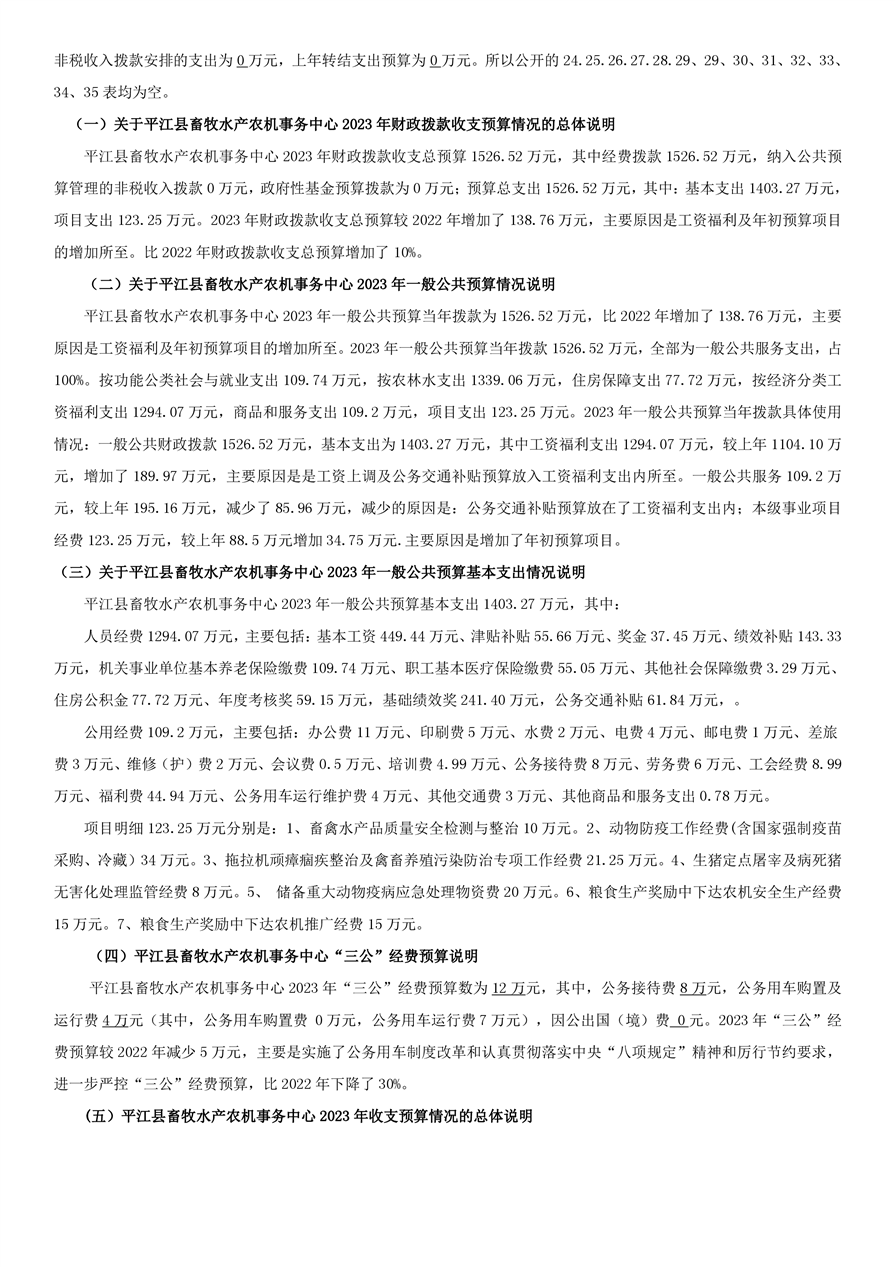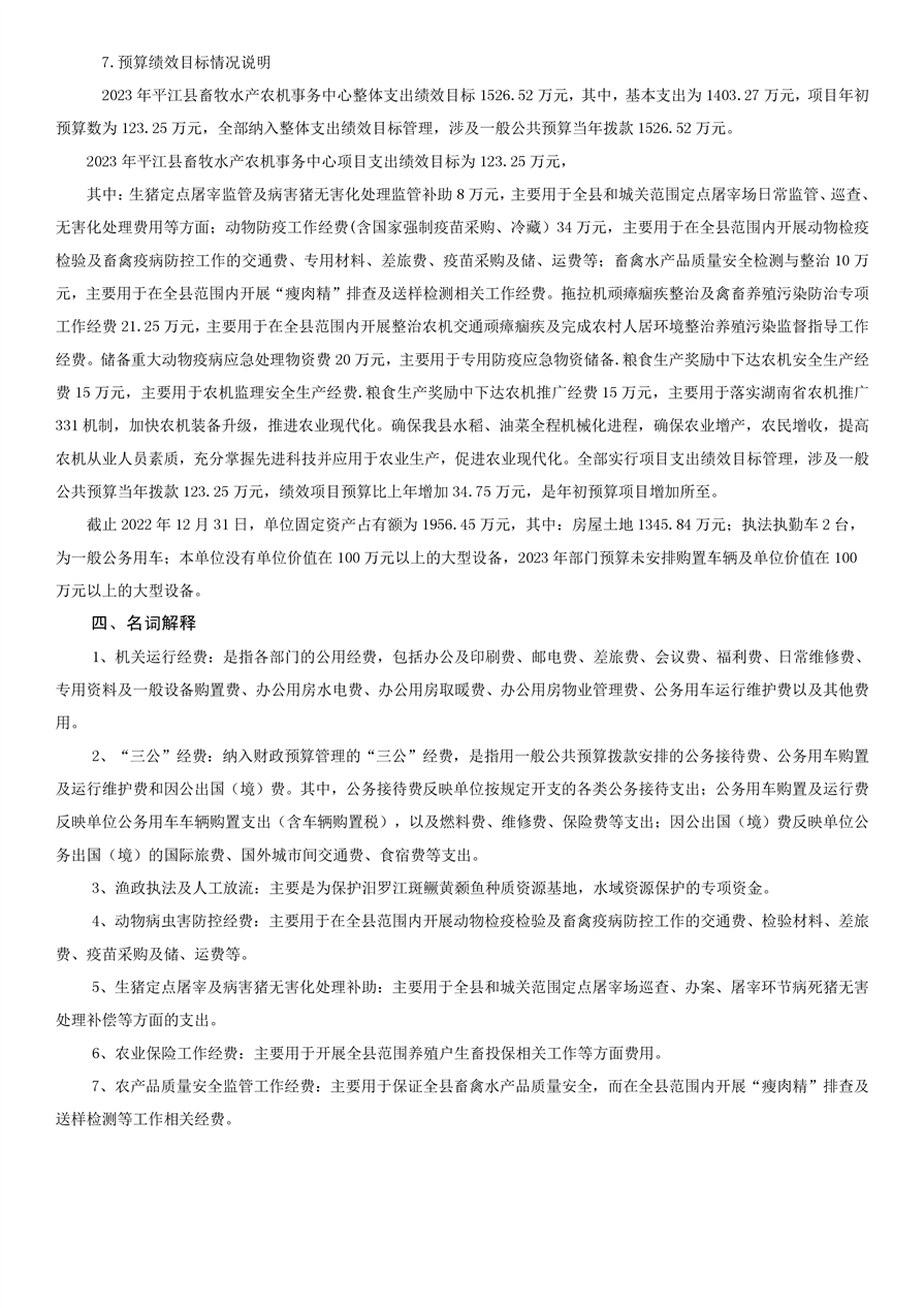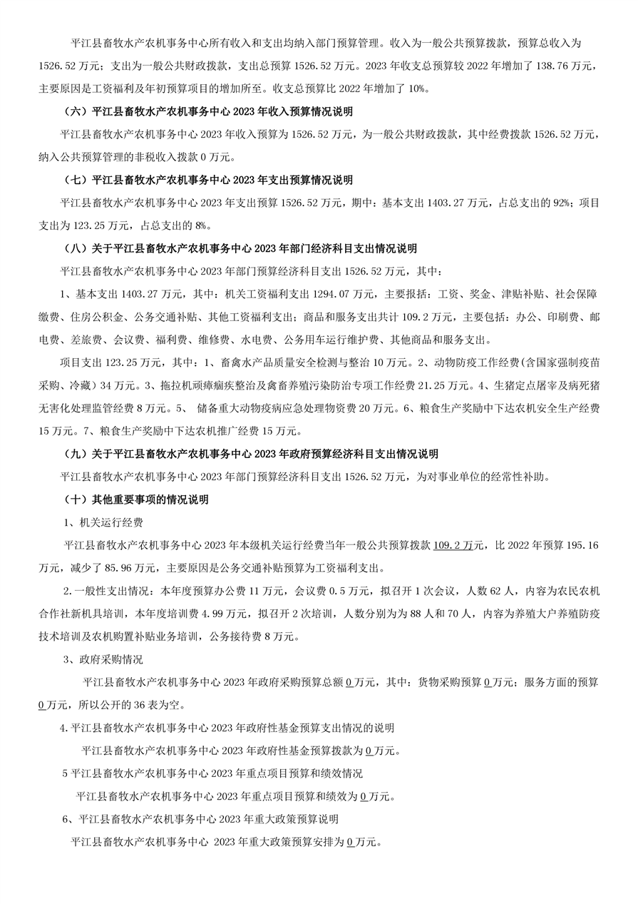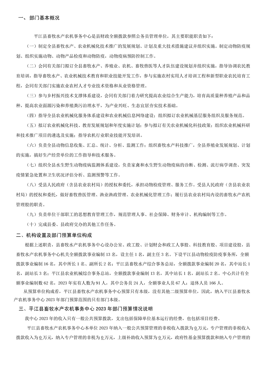 平江县畜牧水产农机事务中心2023年部门预算编报说明
