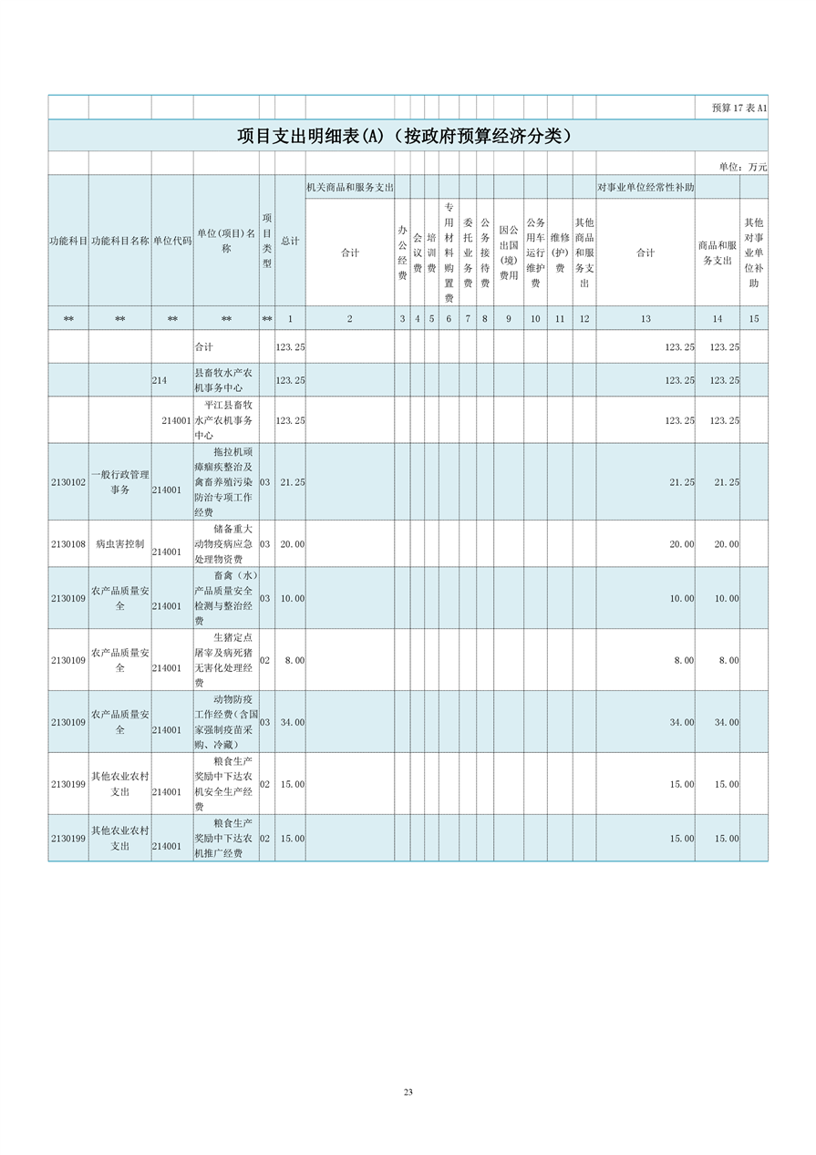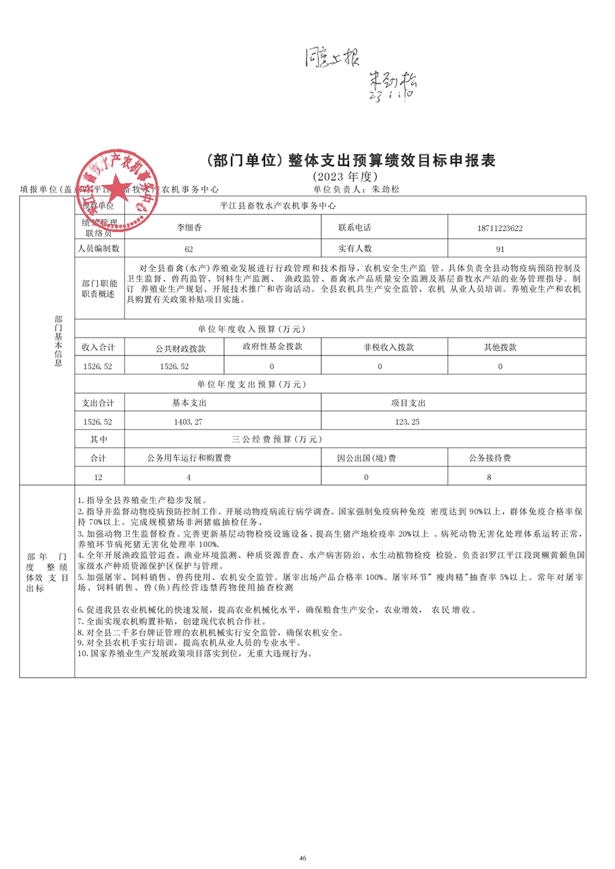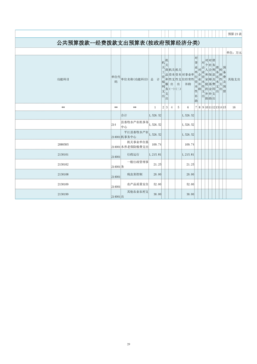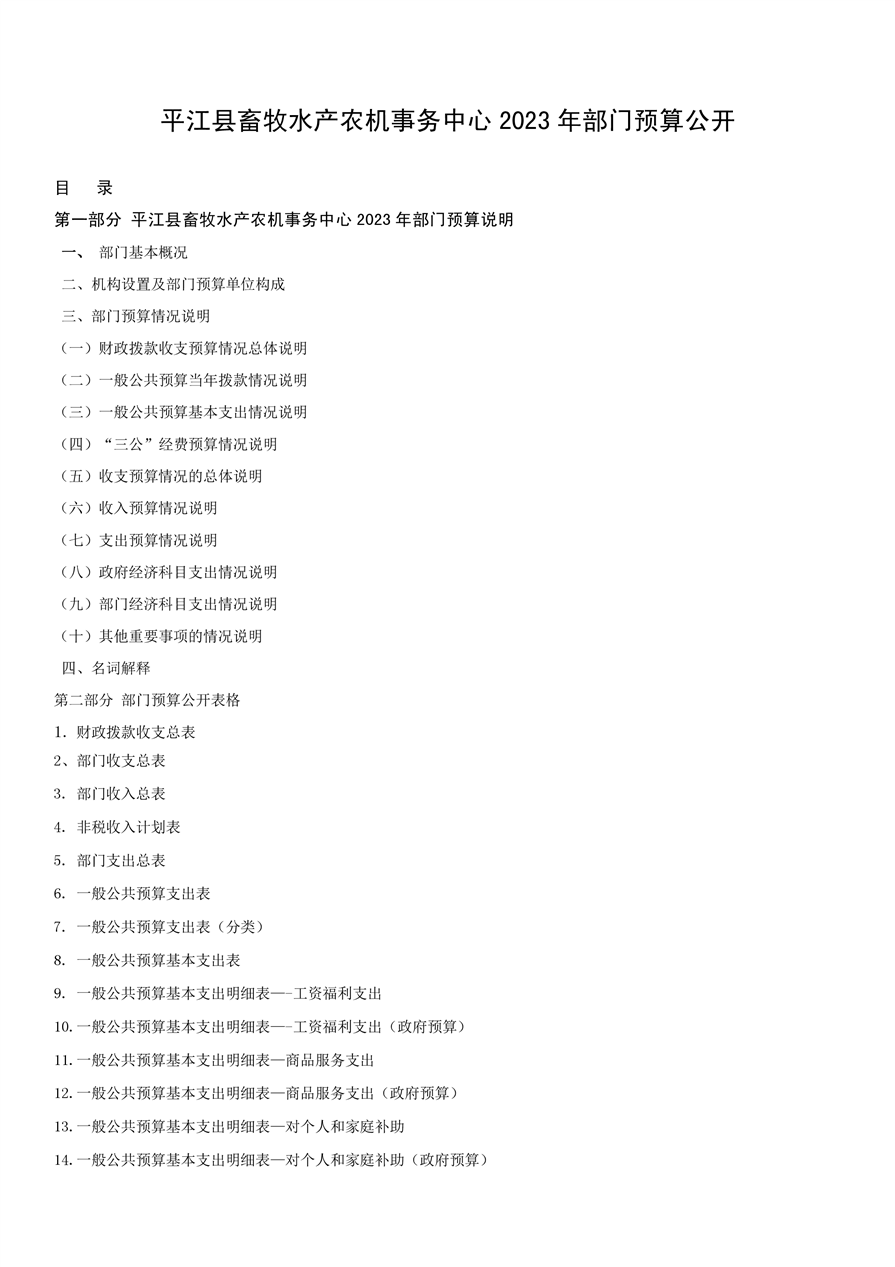 平江县畜牧水产农机事务中心2023年部门预算编报说明