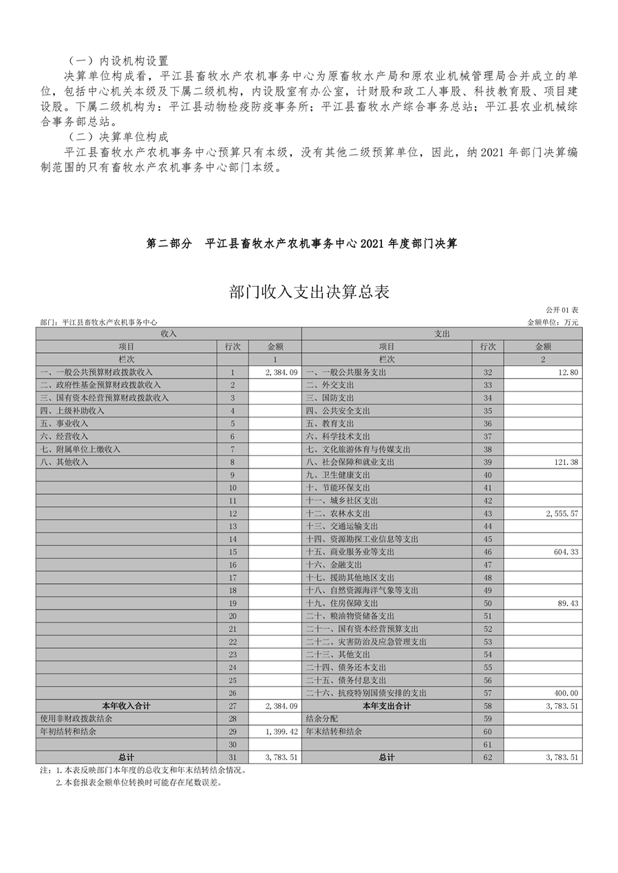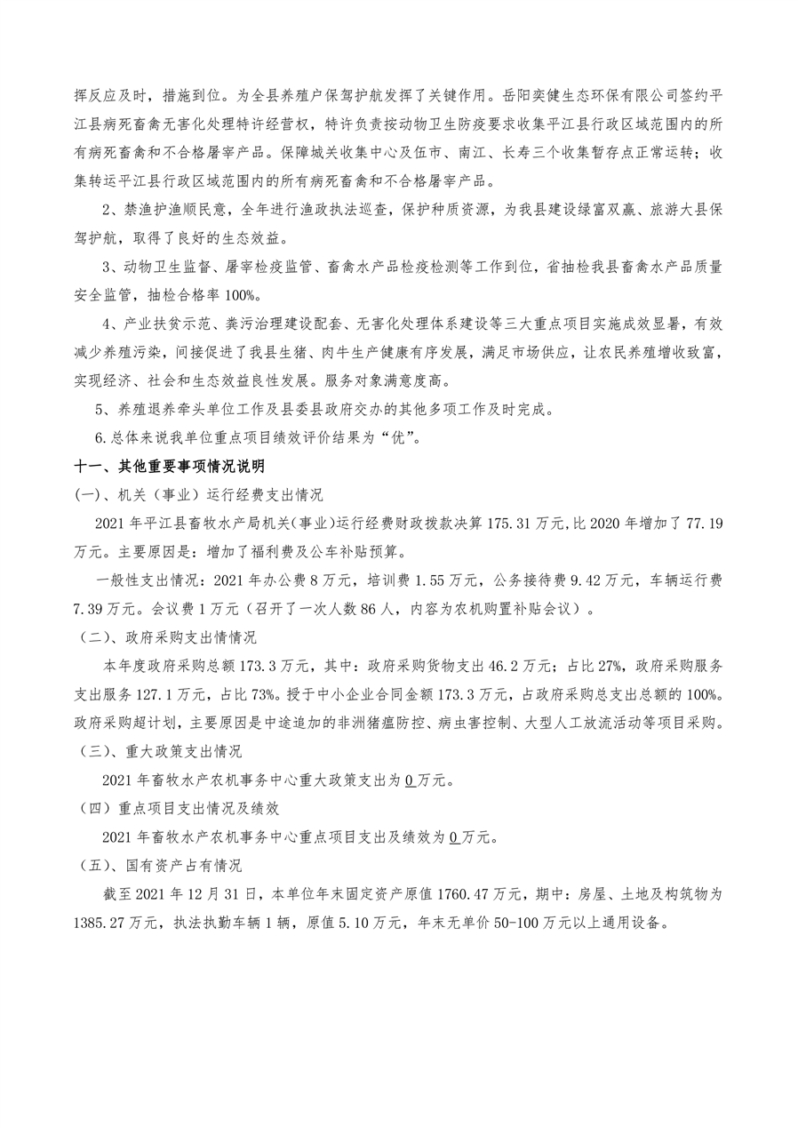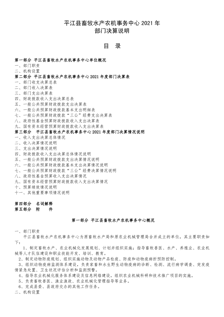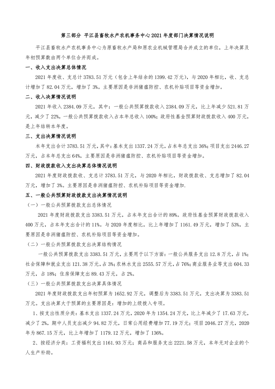 平江县畜牧水产农机事务中心2021年部门决算说明