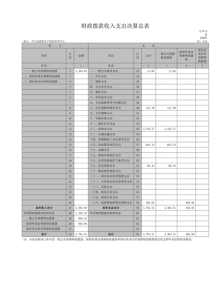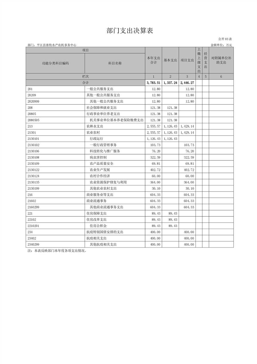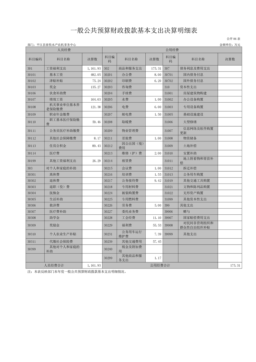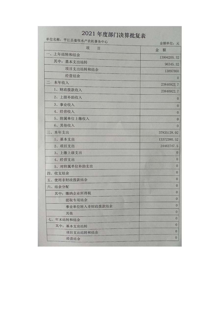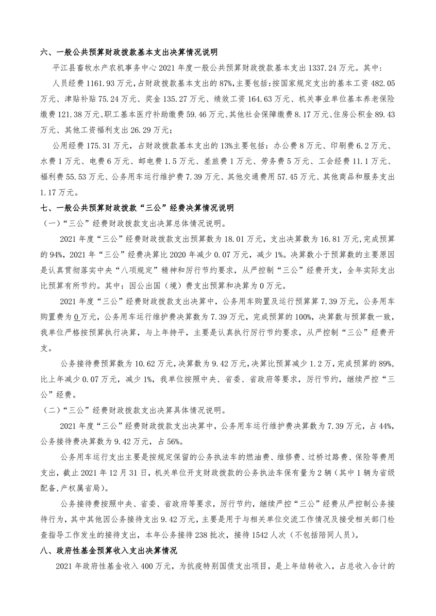 平江县畜牧水产农机事务中心2021年部门决算说明