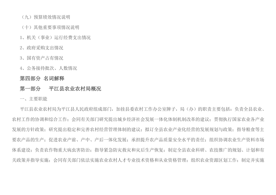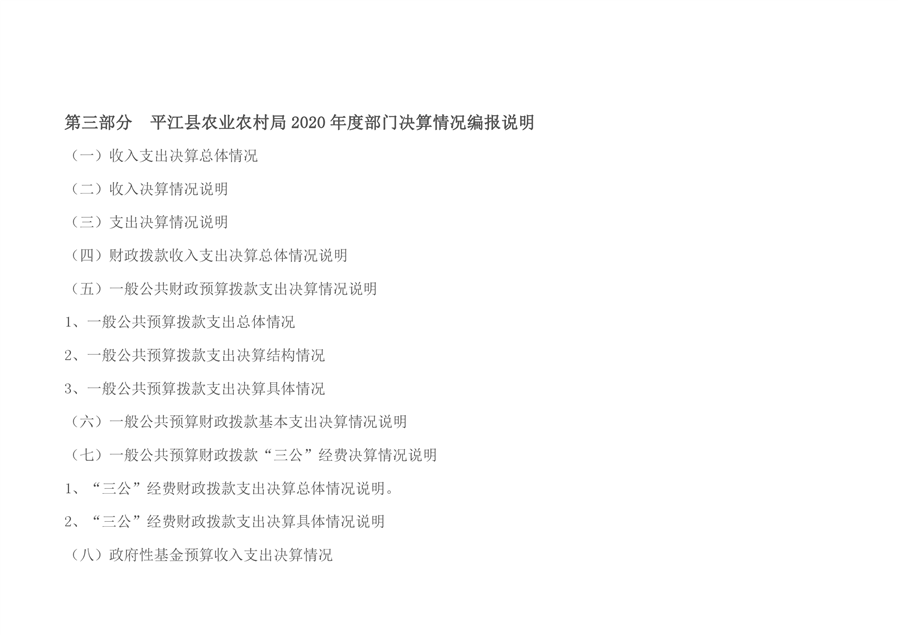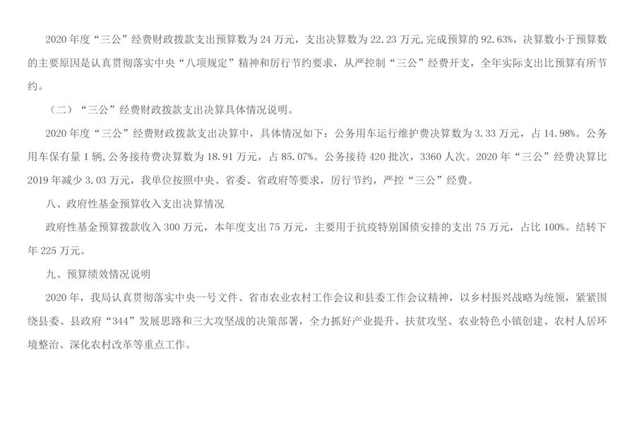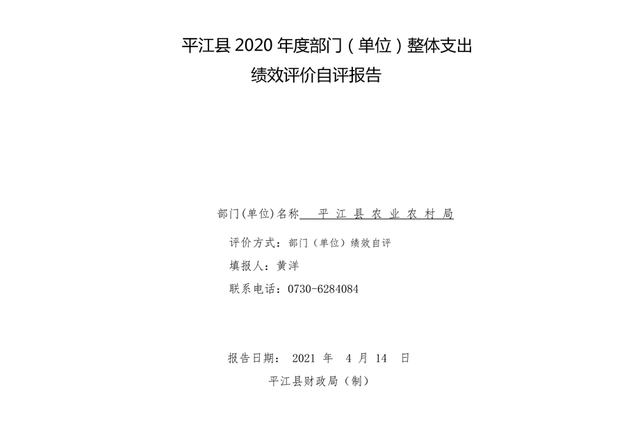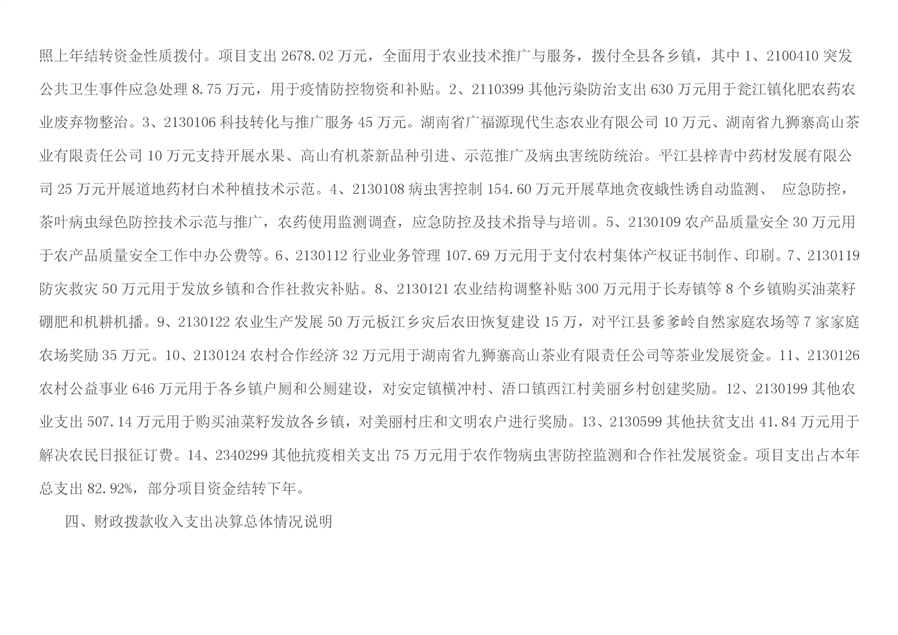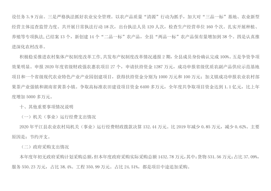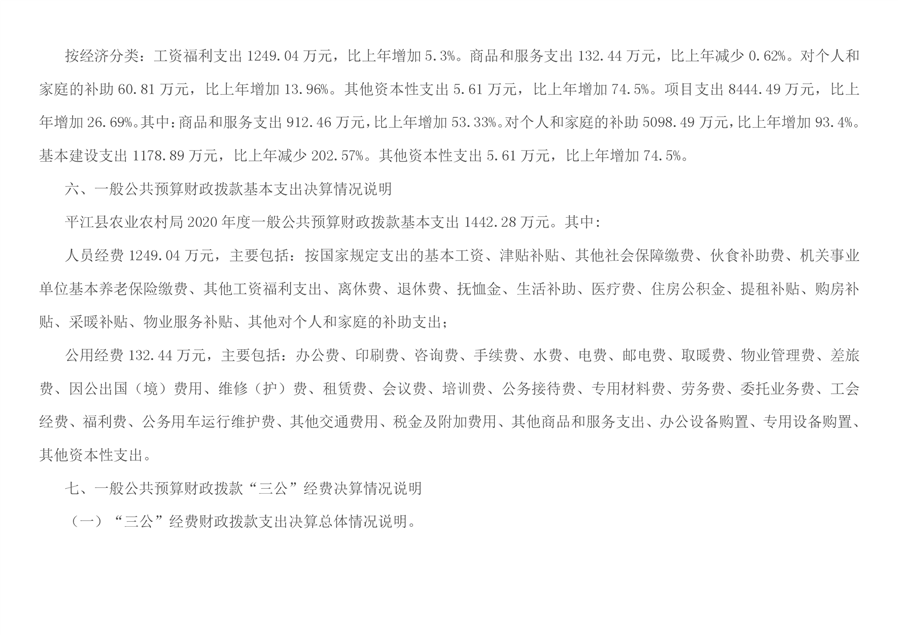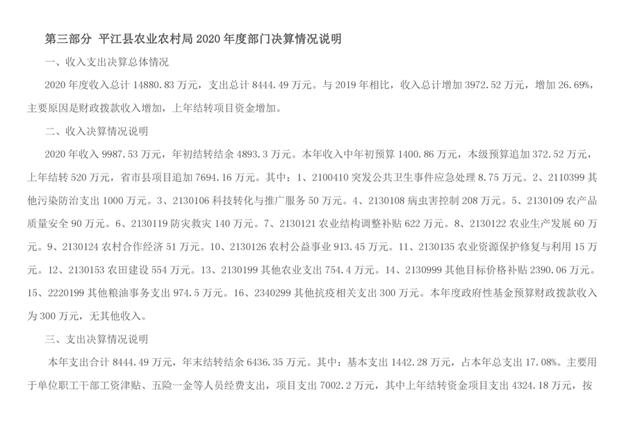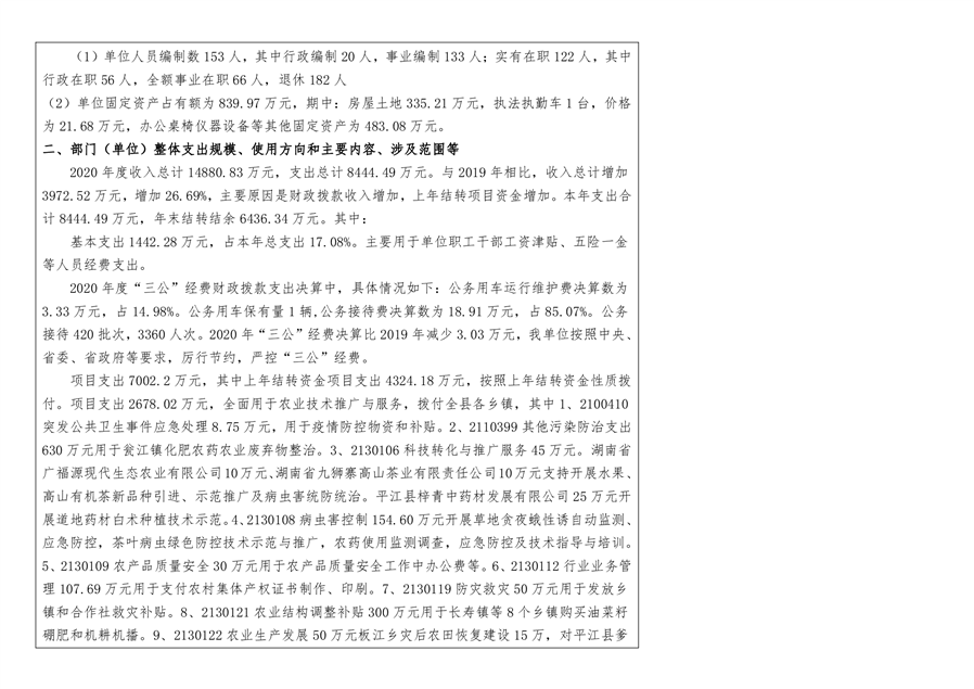 平江县农业农村局2020年部门决算编报说明